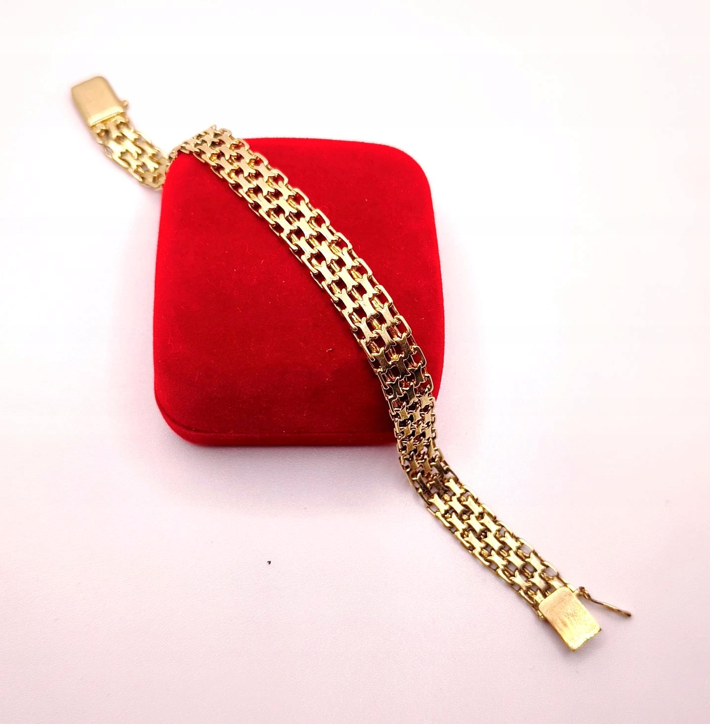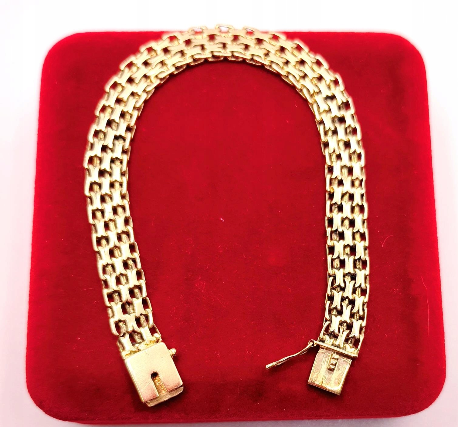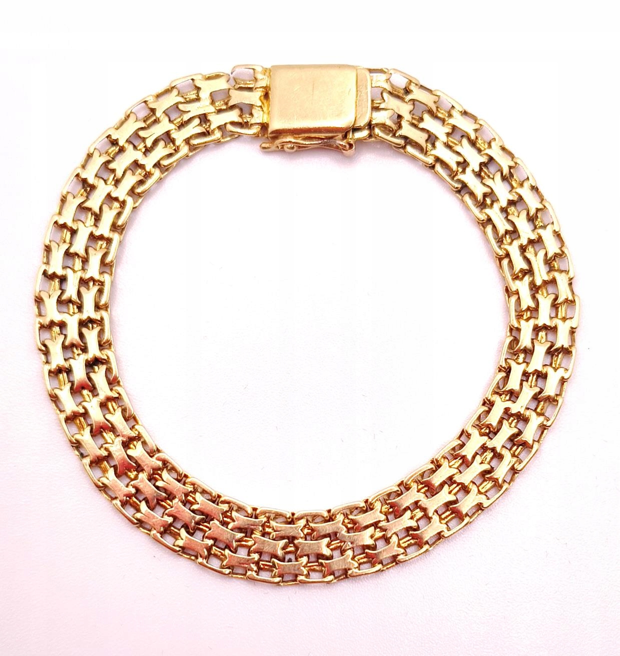 W ofercie sprzedaży posiadamy piękną, złotą bransoletkę, o splocie bismarck.