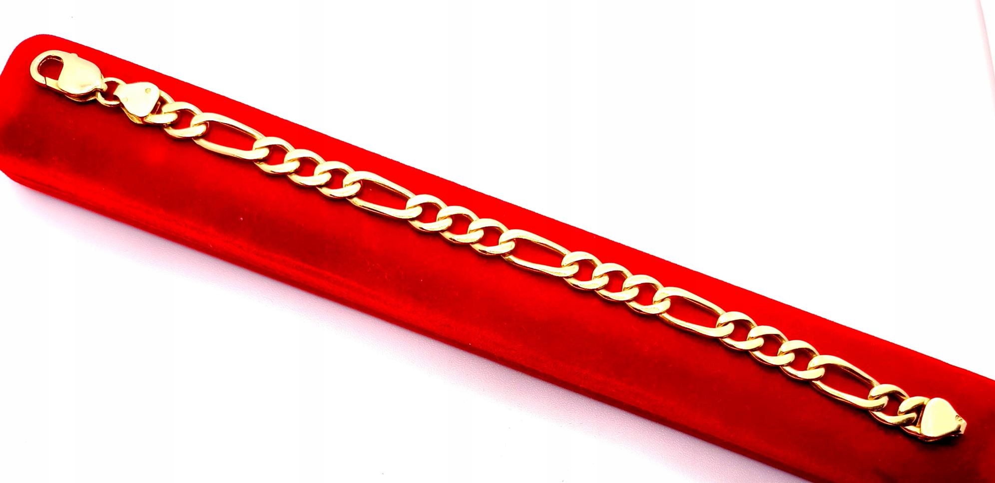 W ofercie sprzedaży posiadamy piękną, złotą bransoletkę, o splocie figaro.