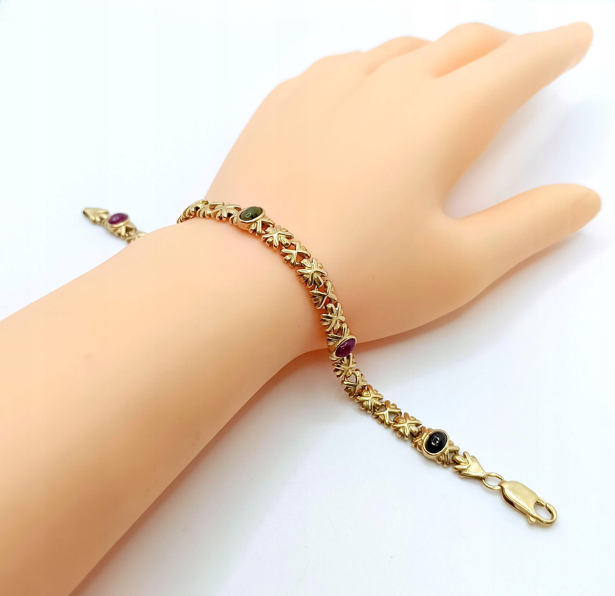 Złota bransoletka kolorowe kamienie PR.585 W:17,92 gr Dł.20 cm