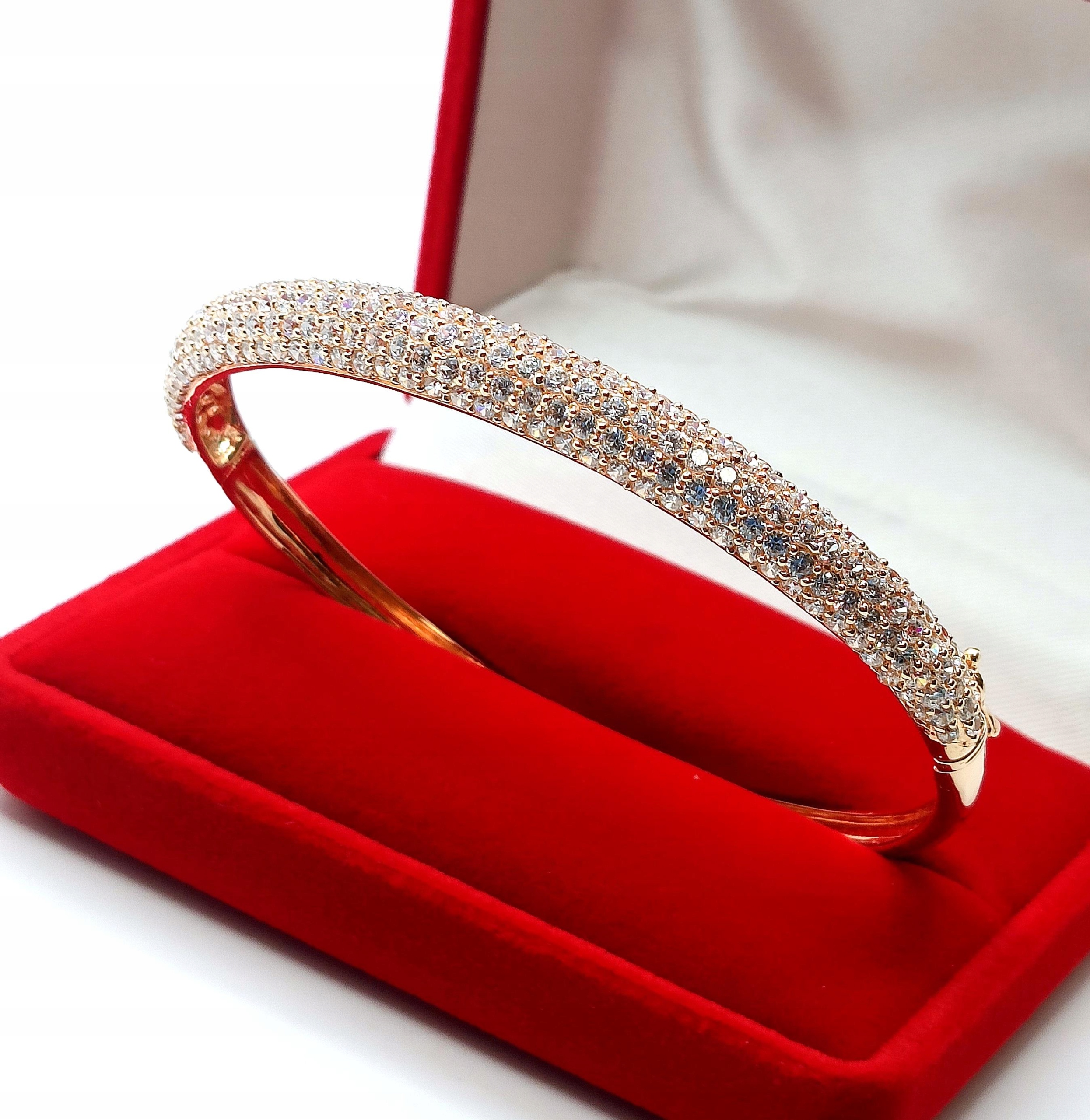 Złota bransoletka sztywna z diamentami 225szt 2,30ct Pr.750 W:14,04gr śred.6cm