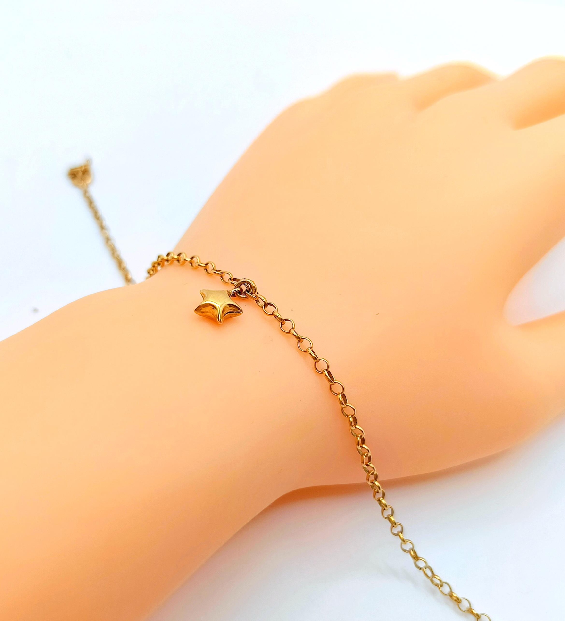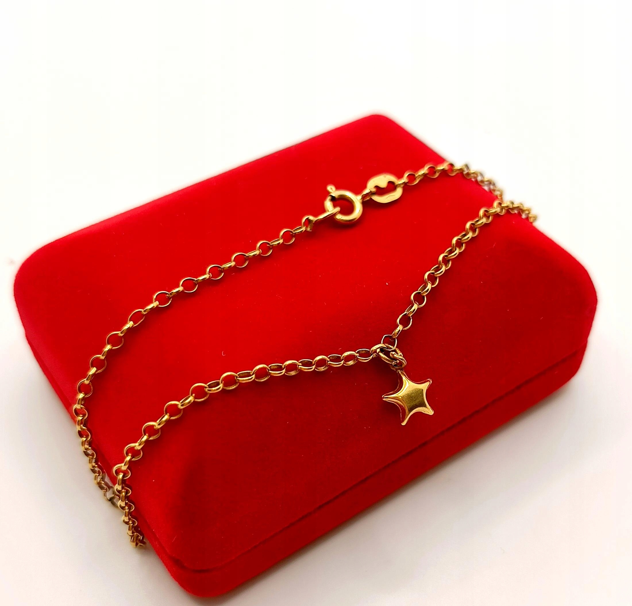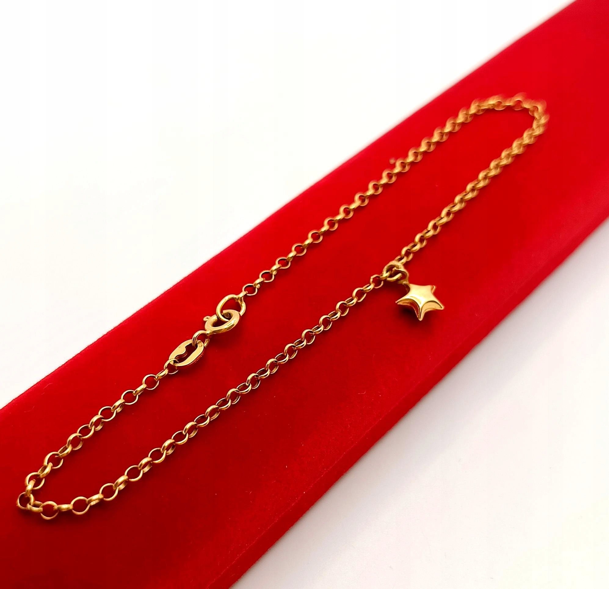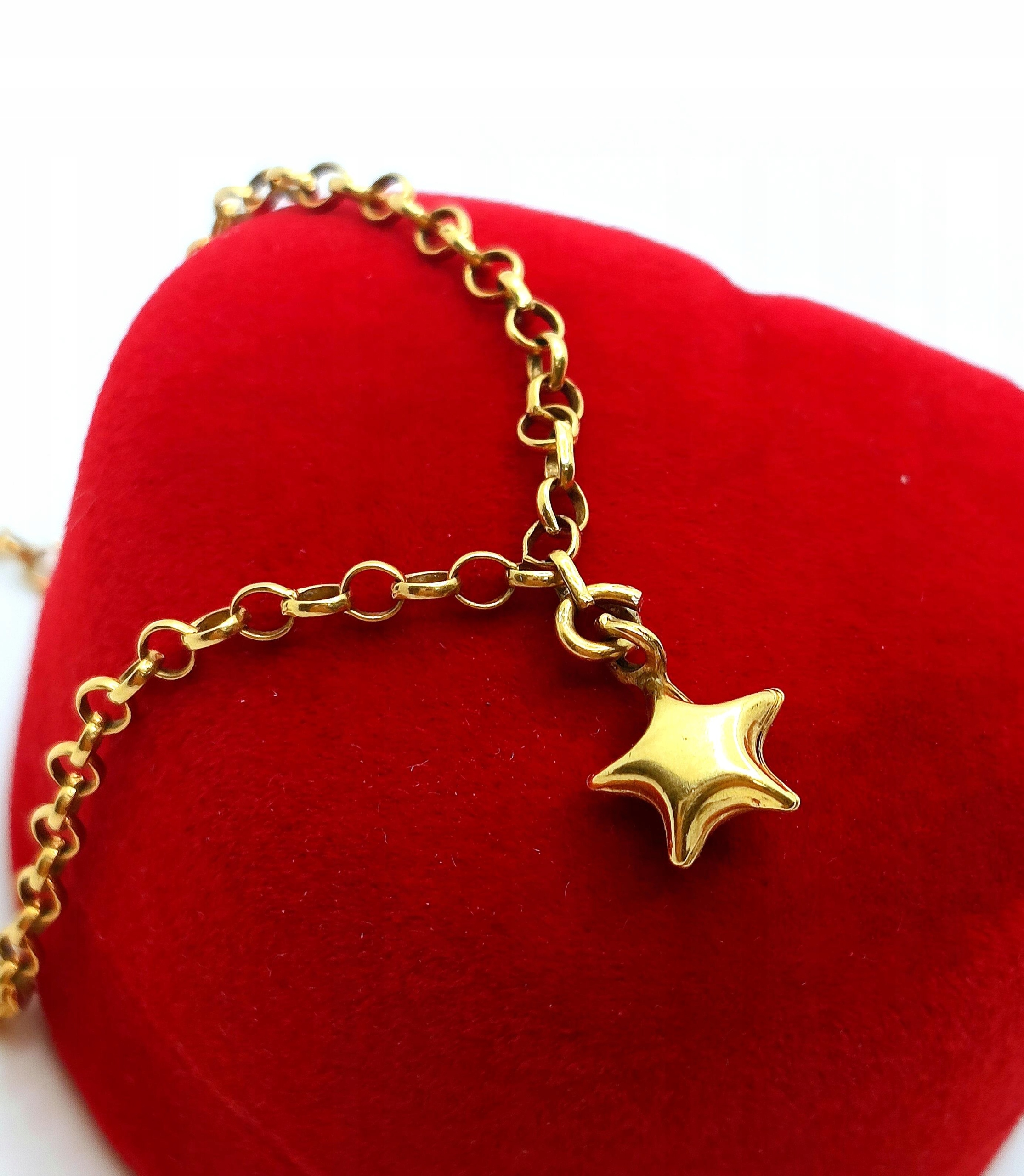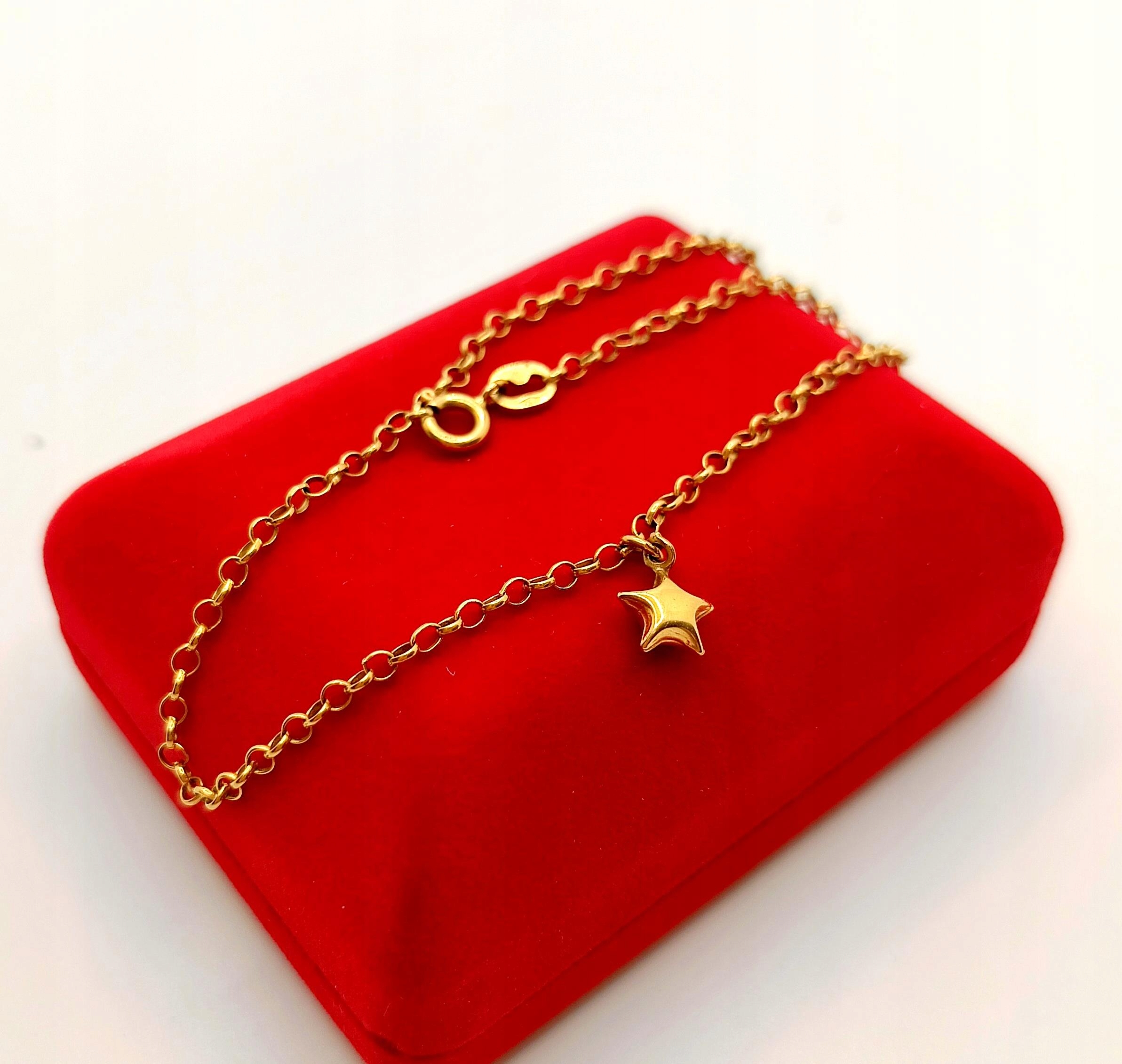 W ofercie na sprzedaż mamy dla Państwa piękną, złotą bransoletkę ozdobioną zawieszką w kształcie gwiazdki.