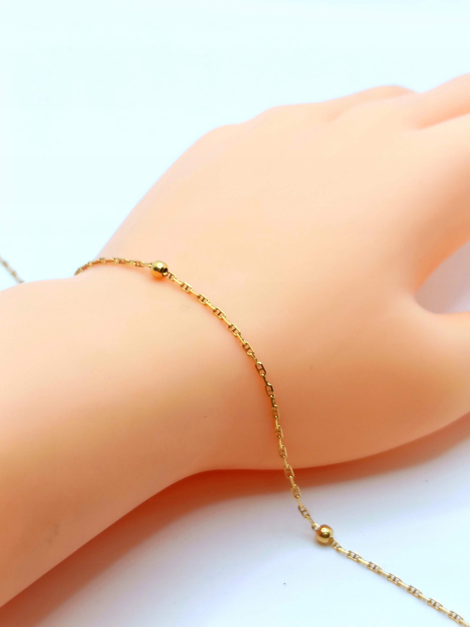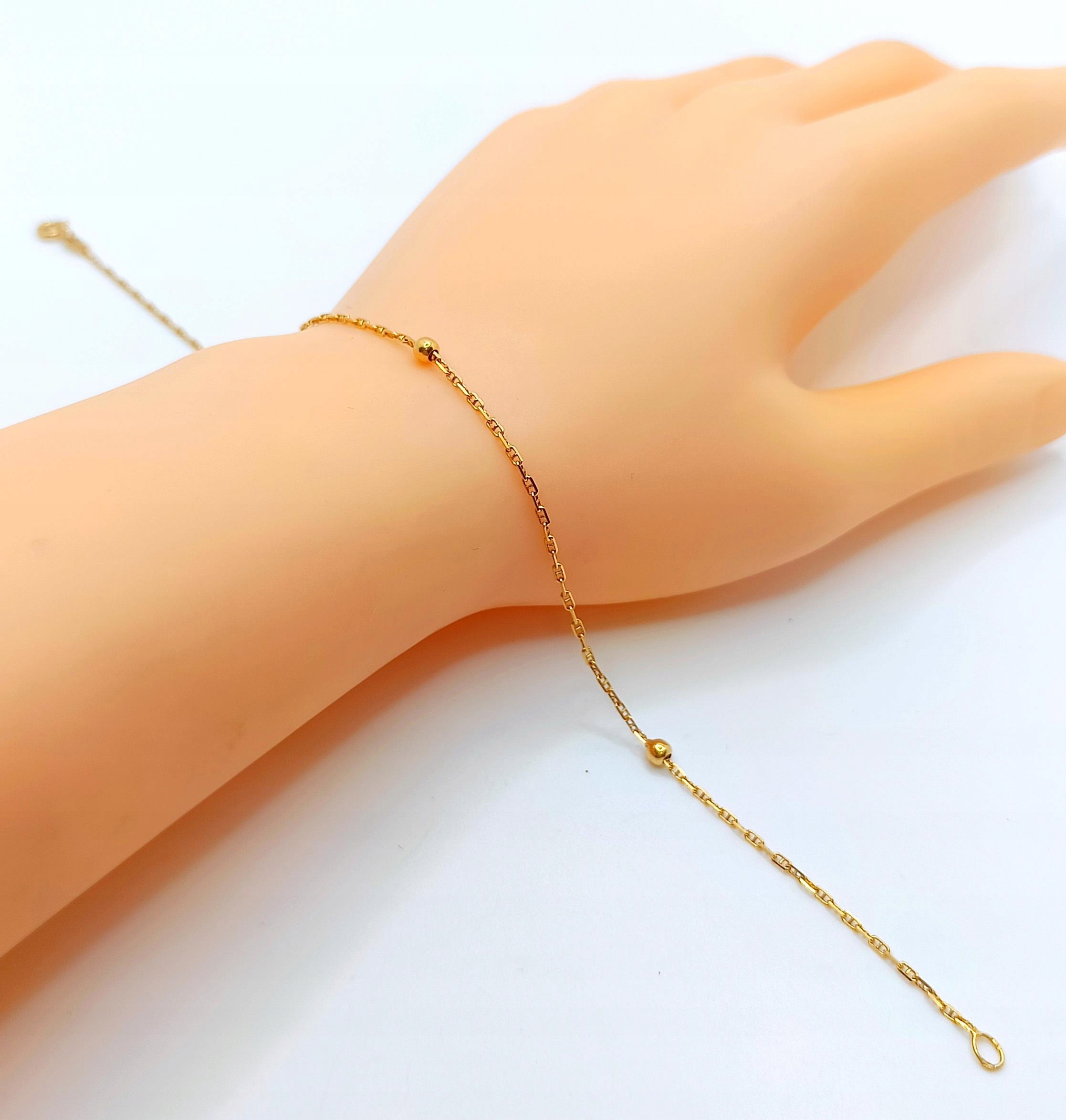 W ofercie na sprzedaż mamy dla Państwa piękną, złotą bransoletkę, ozdobioną kuleczkami.