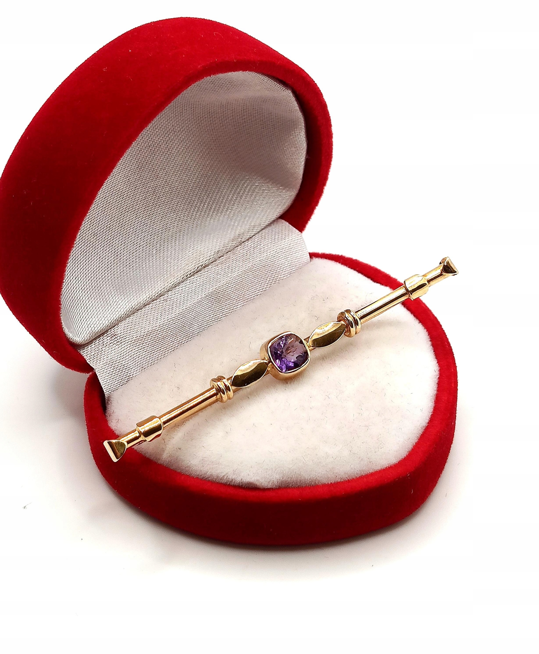 Złota broszka z Ametystem PR.585 W:2,77 gr
