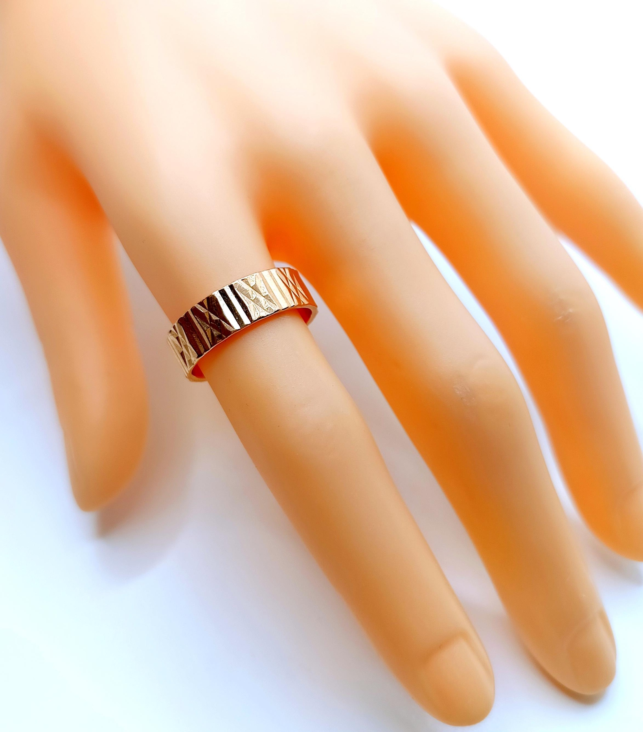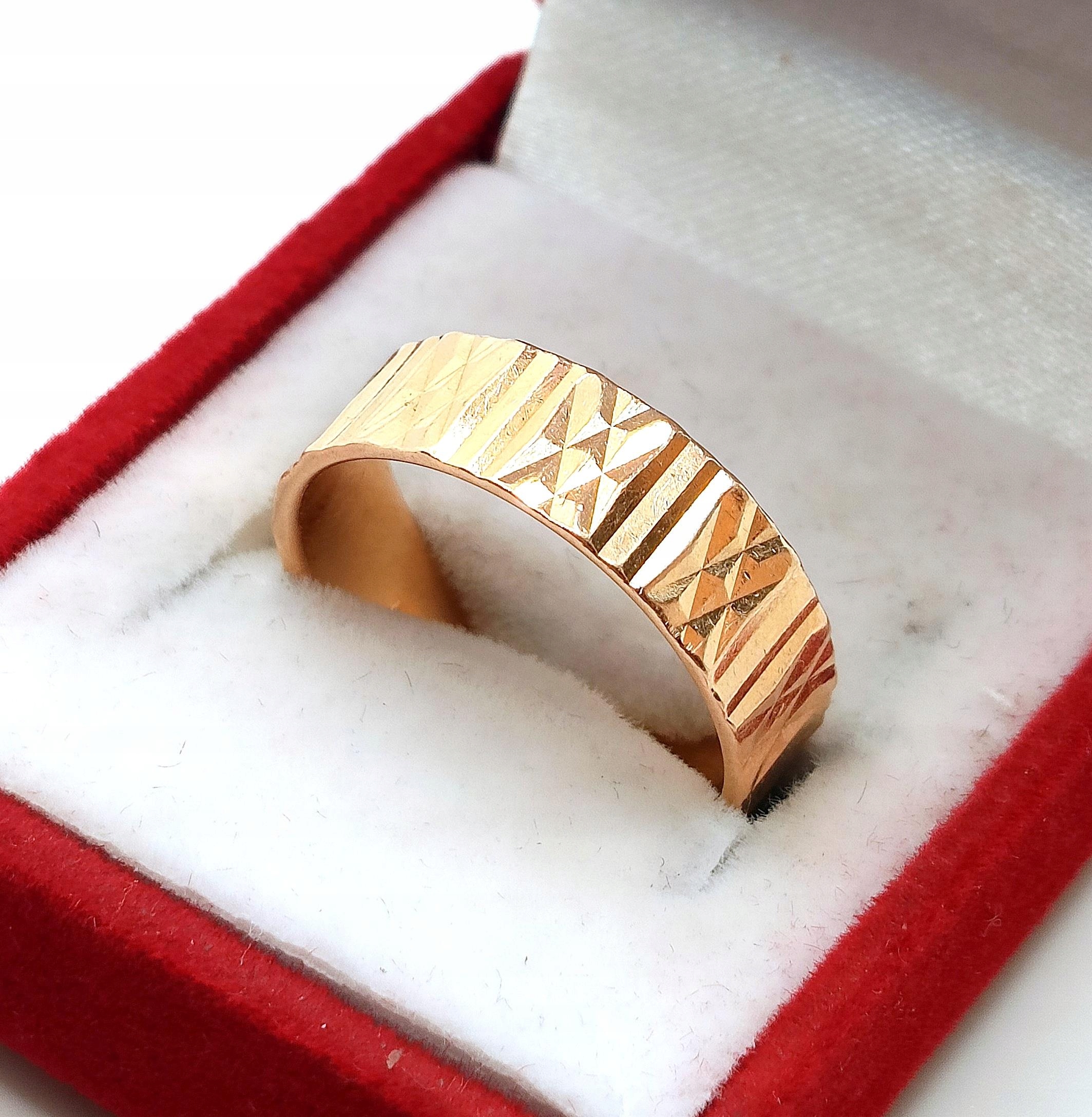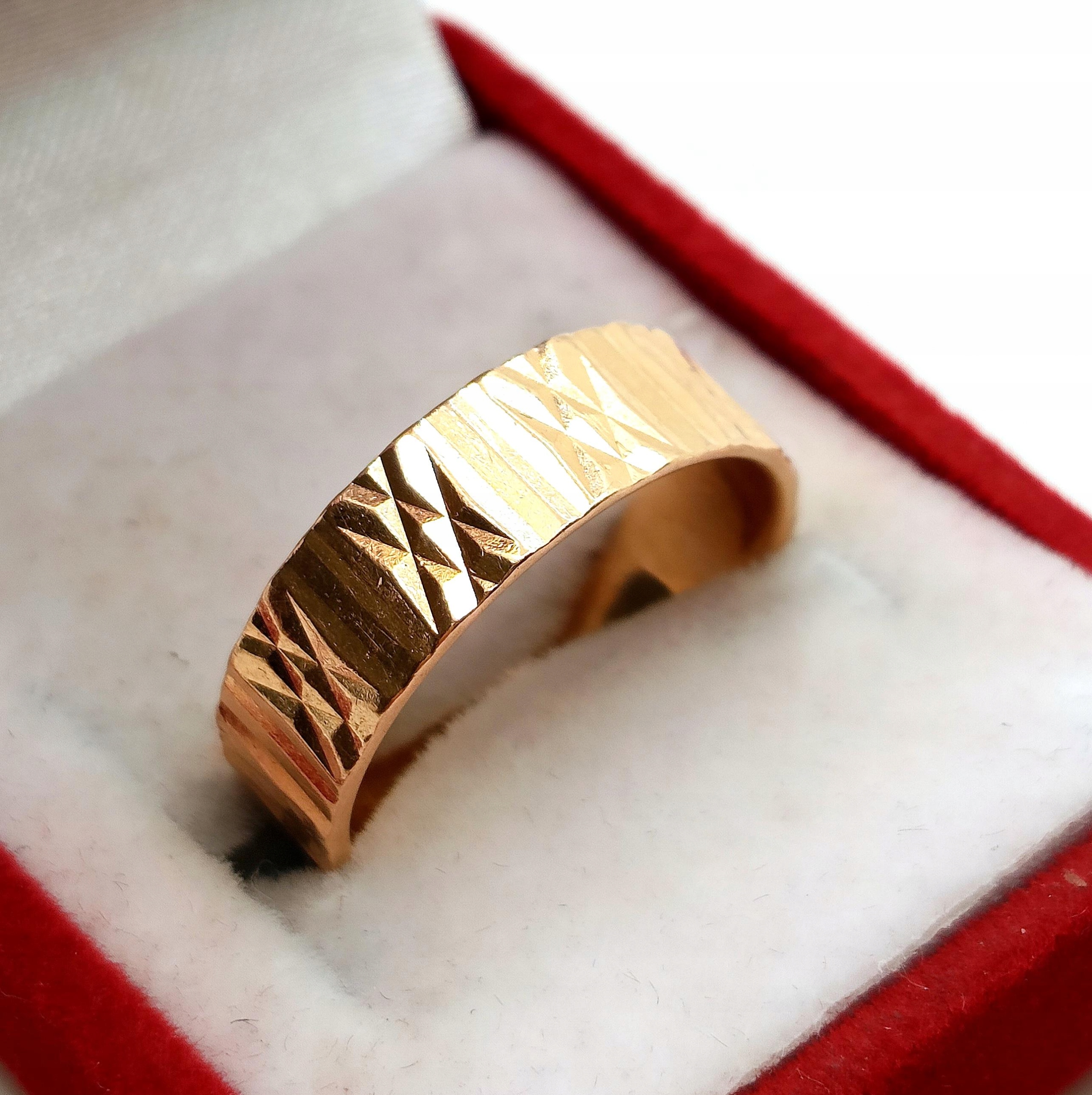 W ofercie na sprzedaż mamy dla Państwa złotą obrączkę zdobioną żłobieniami.