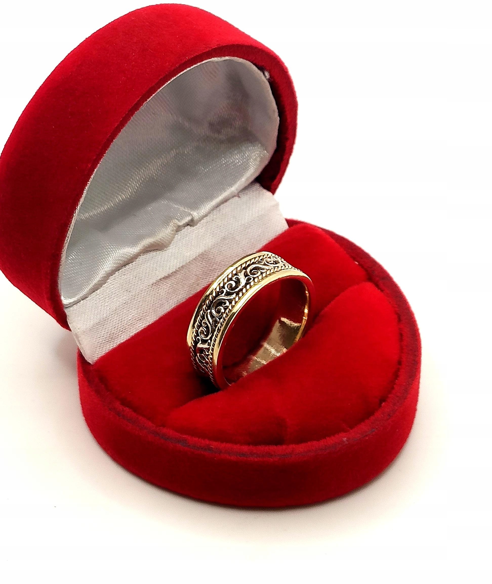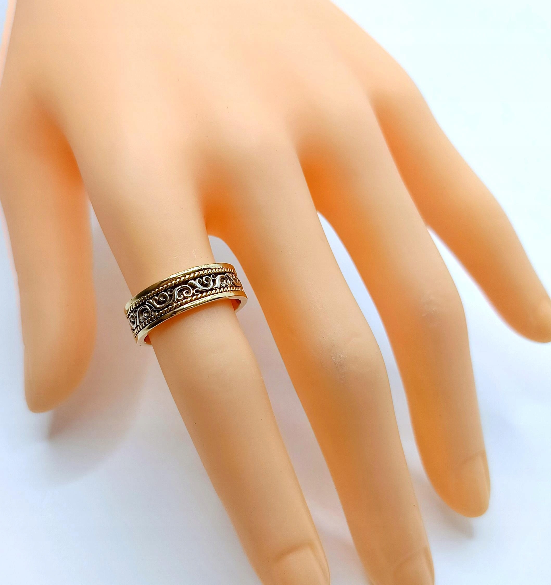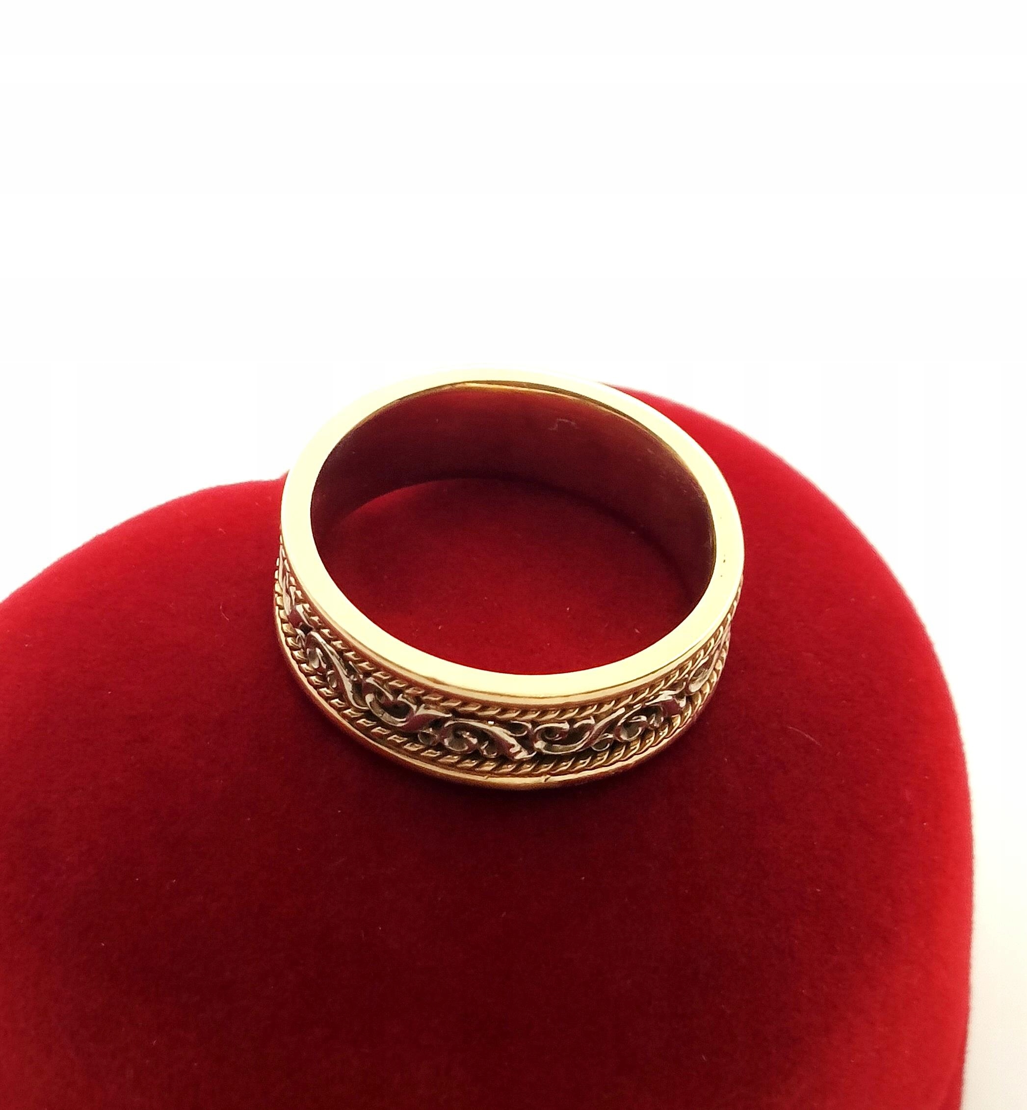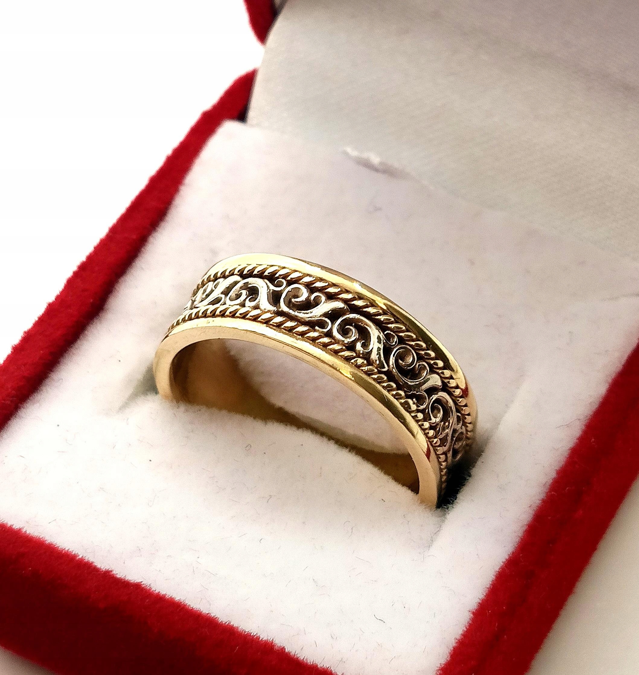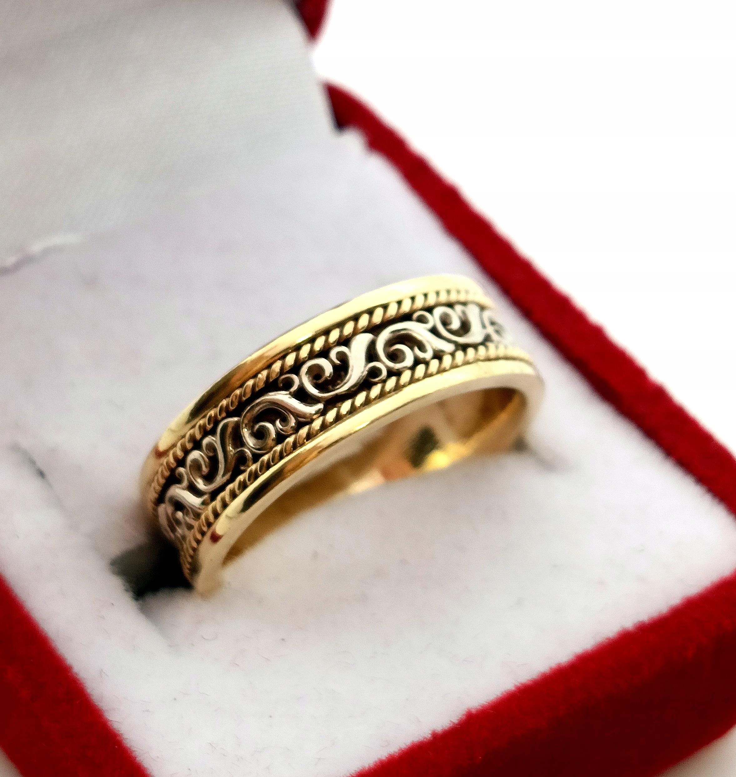 Złota obrączka zdobiona w dwóch kolorach Pr.585 W:5,74gr R.13
