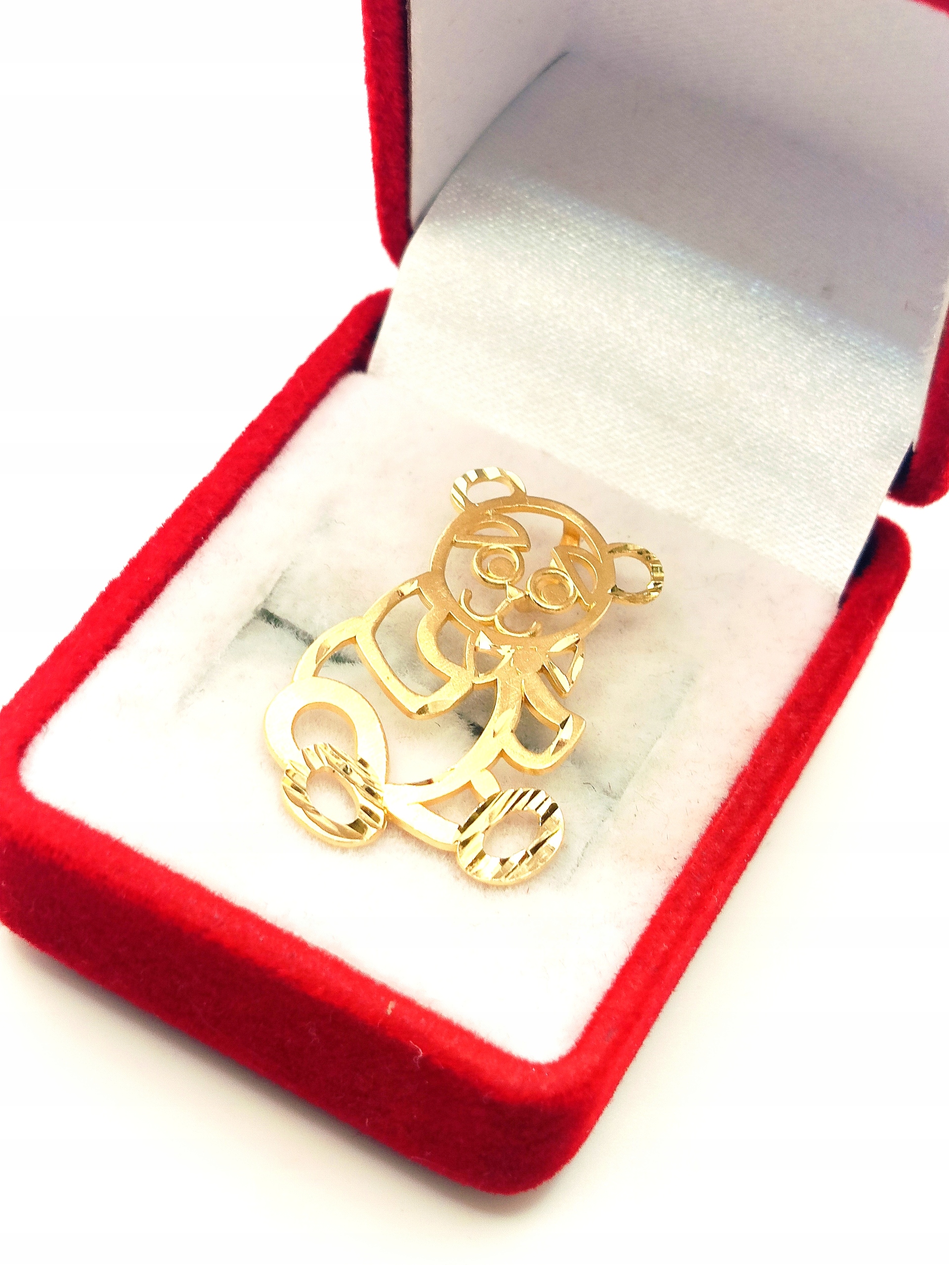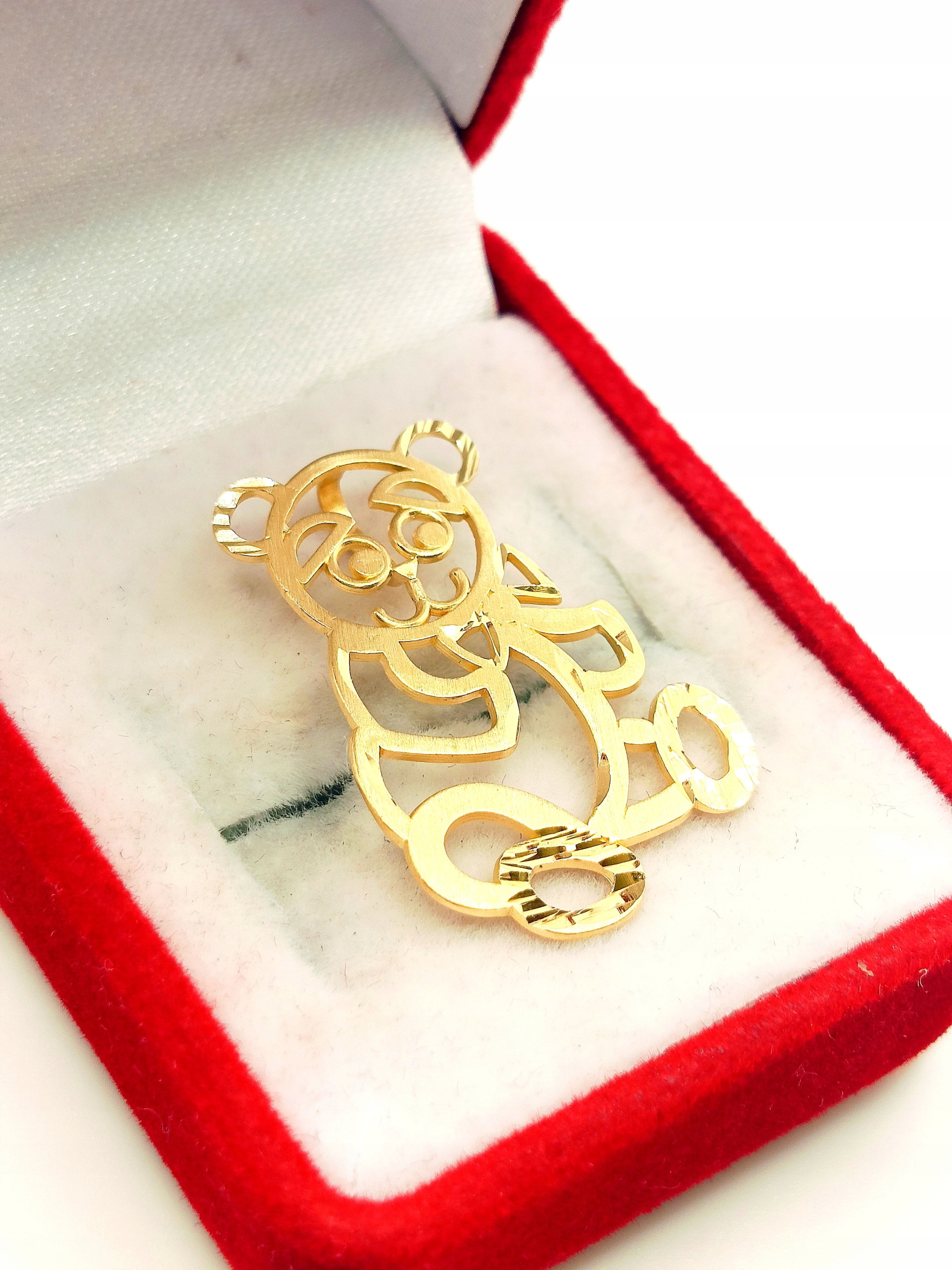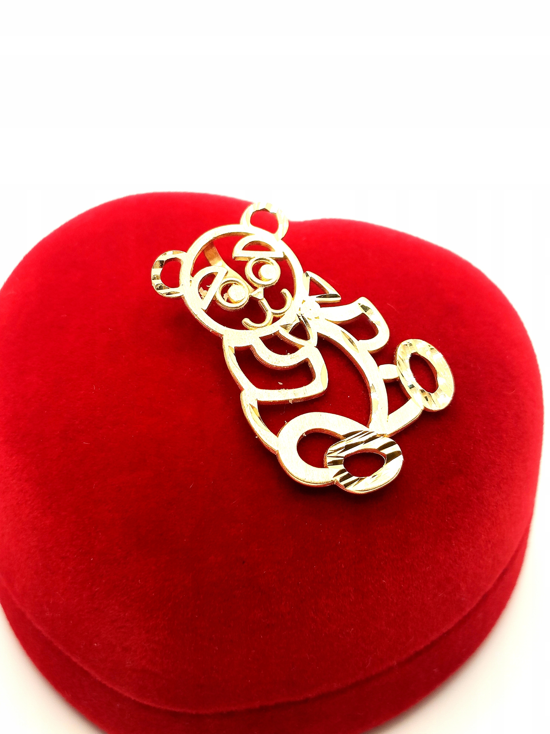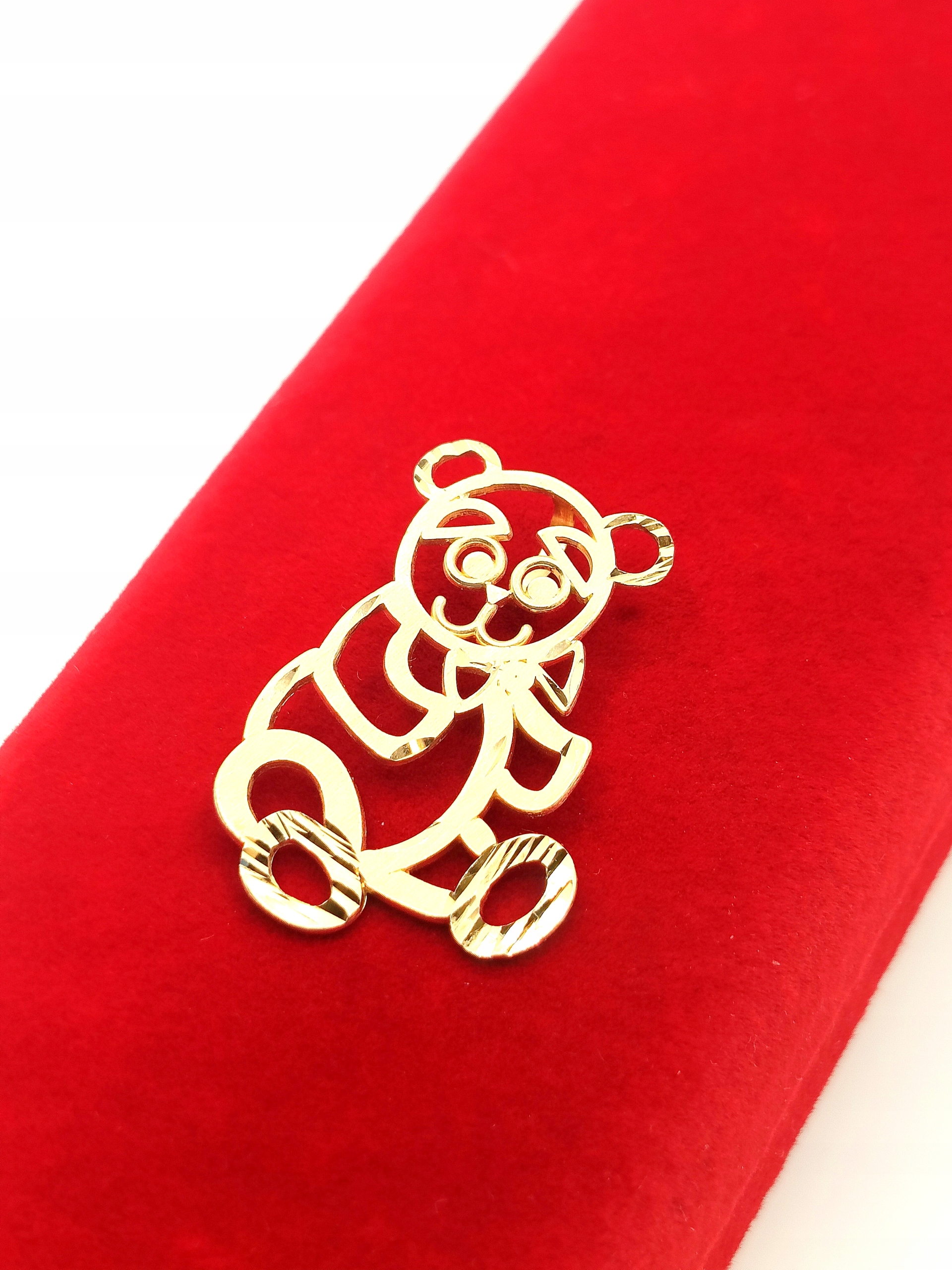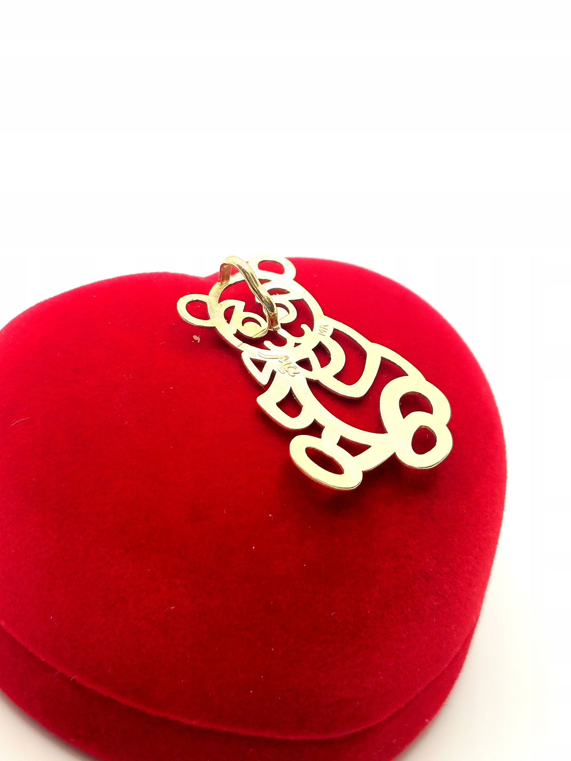 W ofercie na sprzedaż mamy dla Państwa złotą, ażurową zawieszkę w kształcie misia.