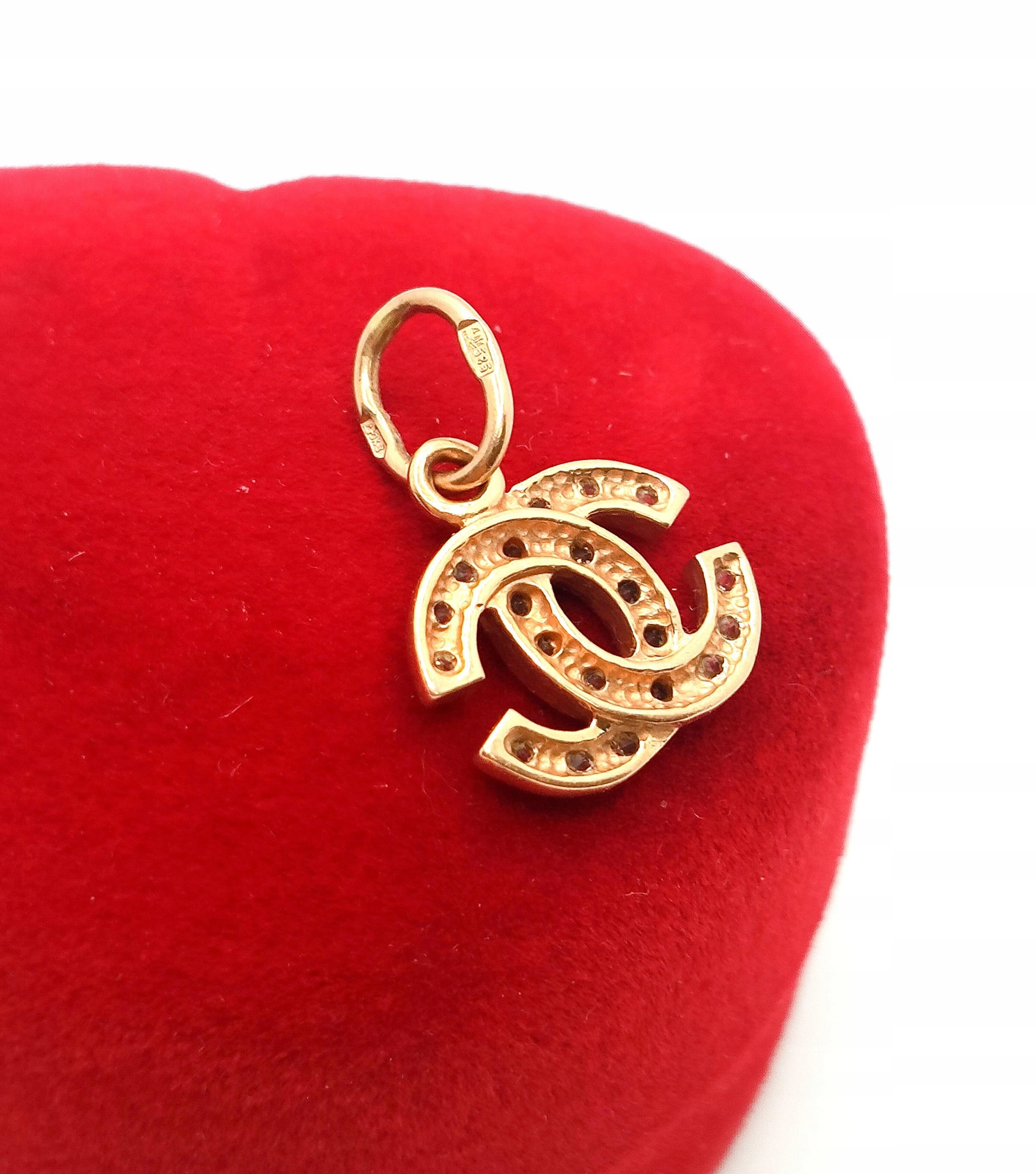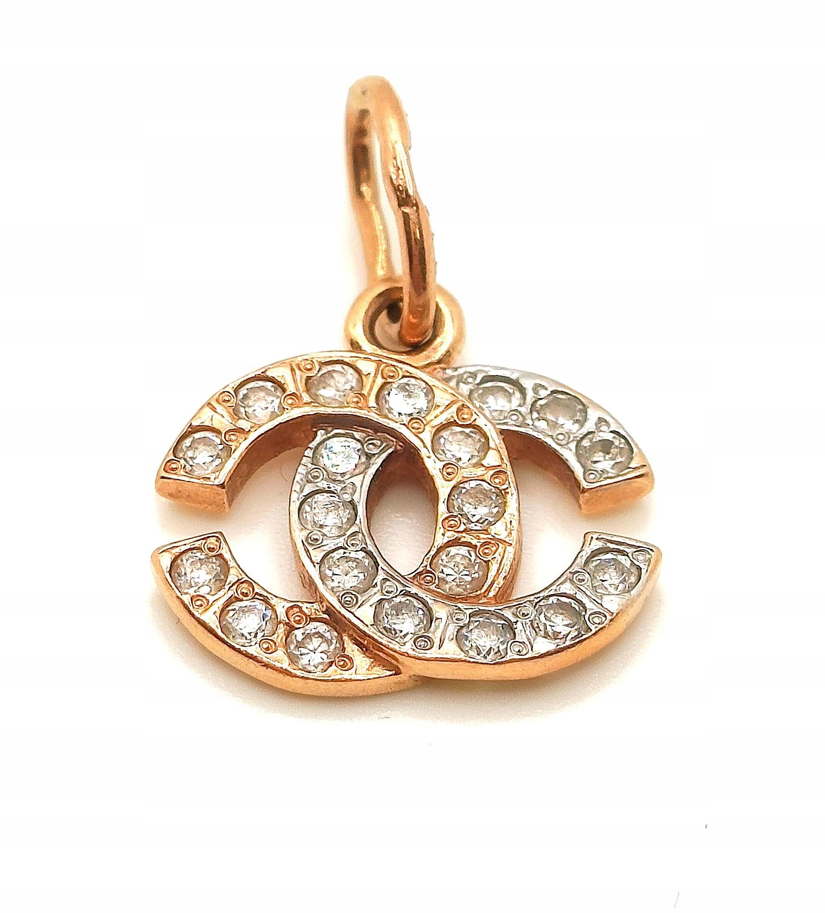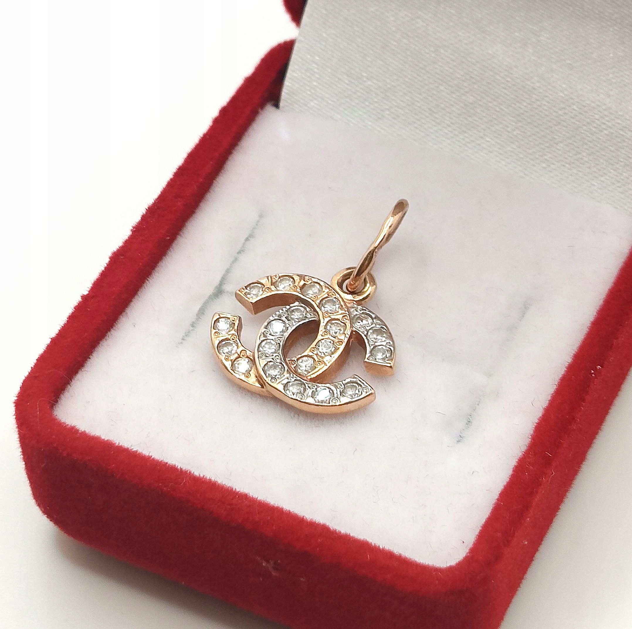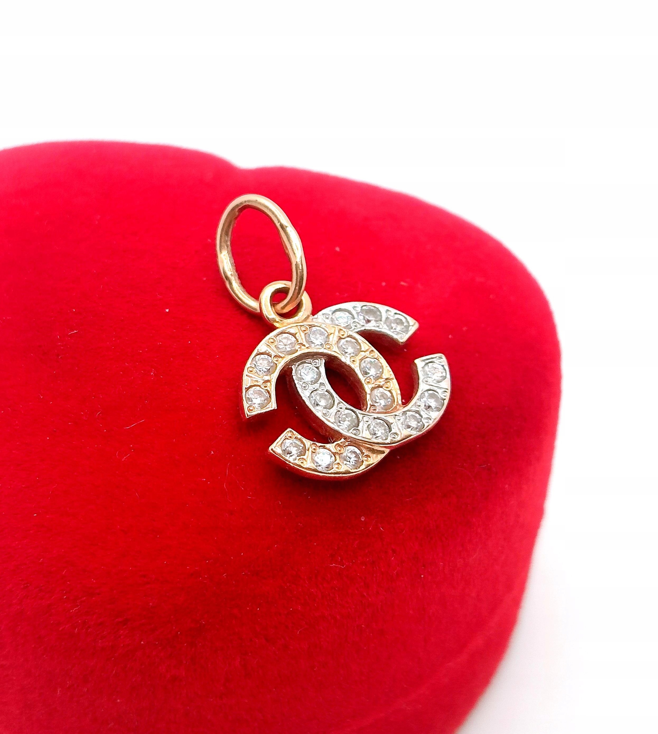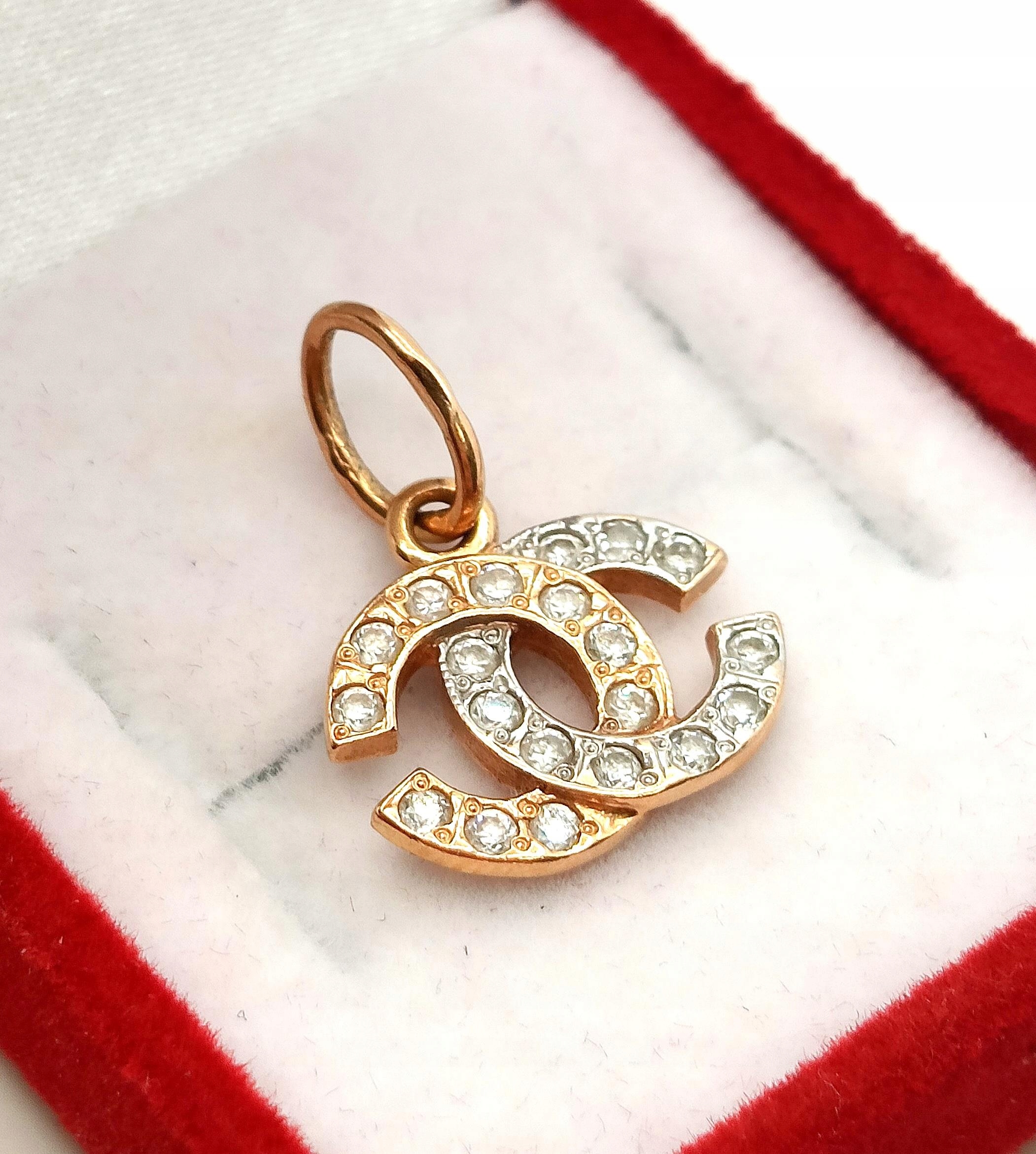 Oferujemy na sprzedaż piękną, złotą zawieszkę CC, ozdobioną cyrkoniami.