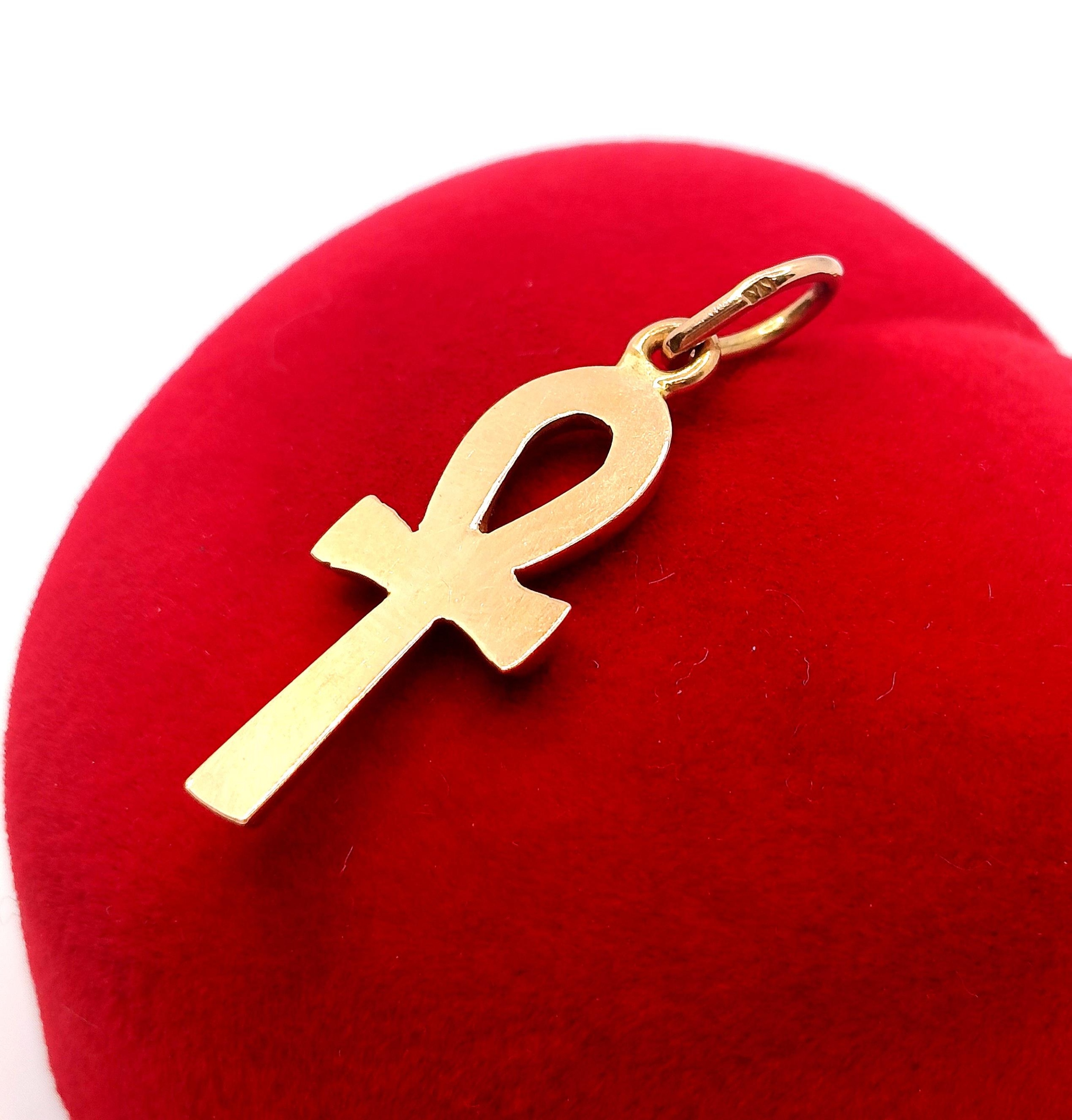 W ofercie na sprzedaż mamy dla Państwa złotą zawieszkę przedstawiającą egipski krzyż Ankh.