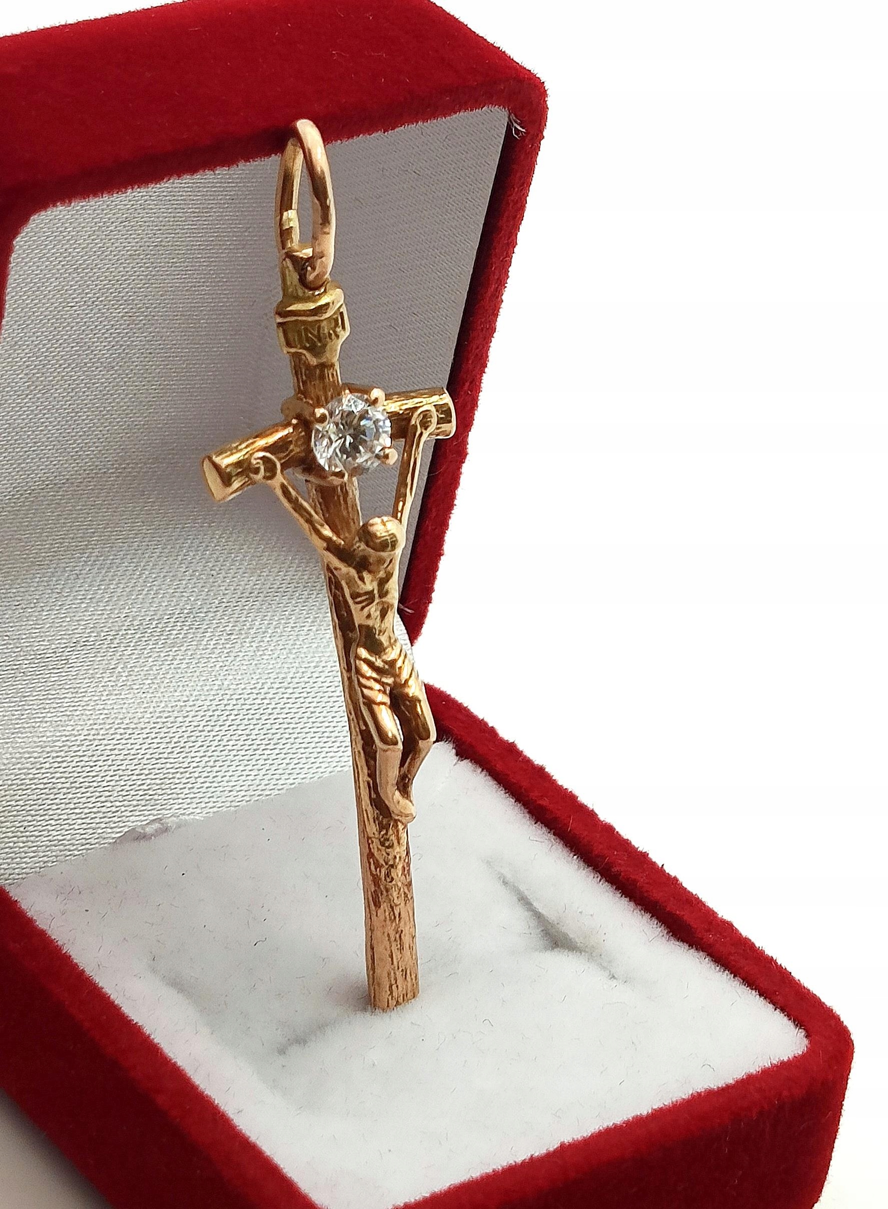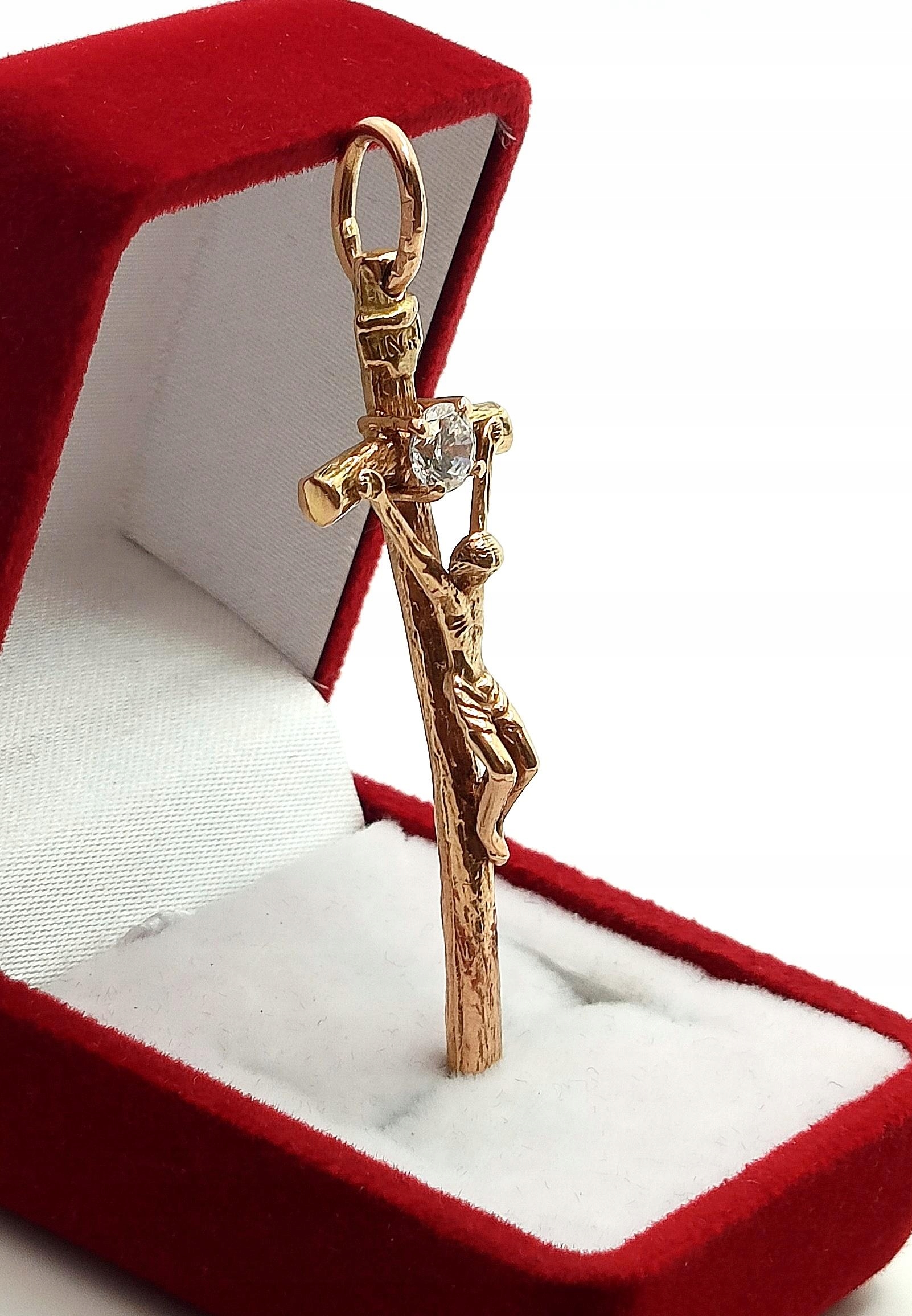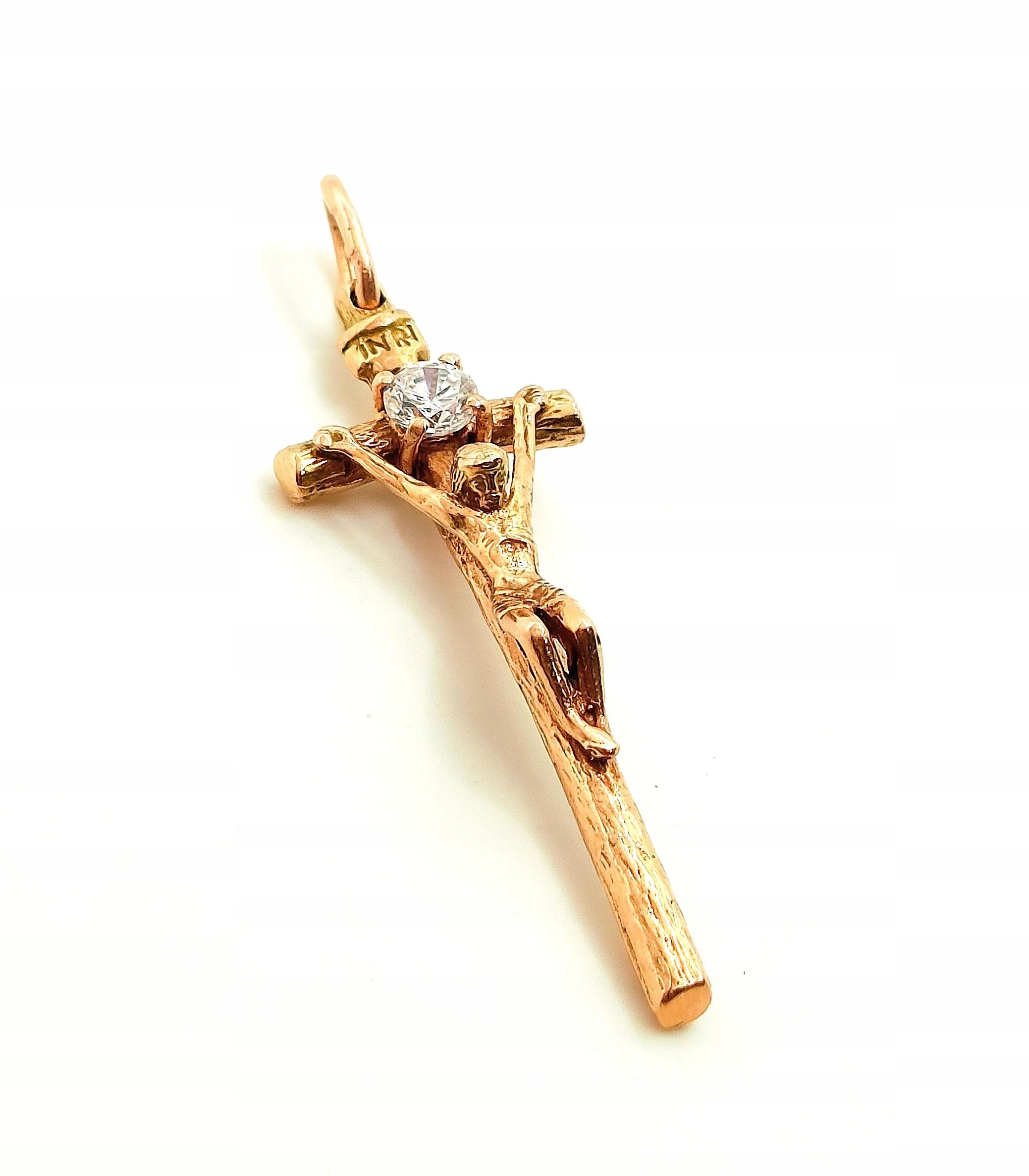 Złota zawieszka Krzyż papieski z Jezusem Pr.583 W:5,82gr