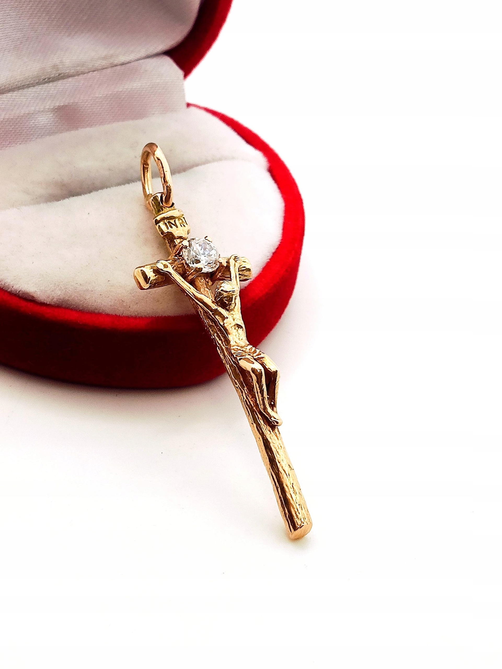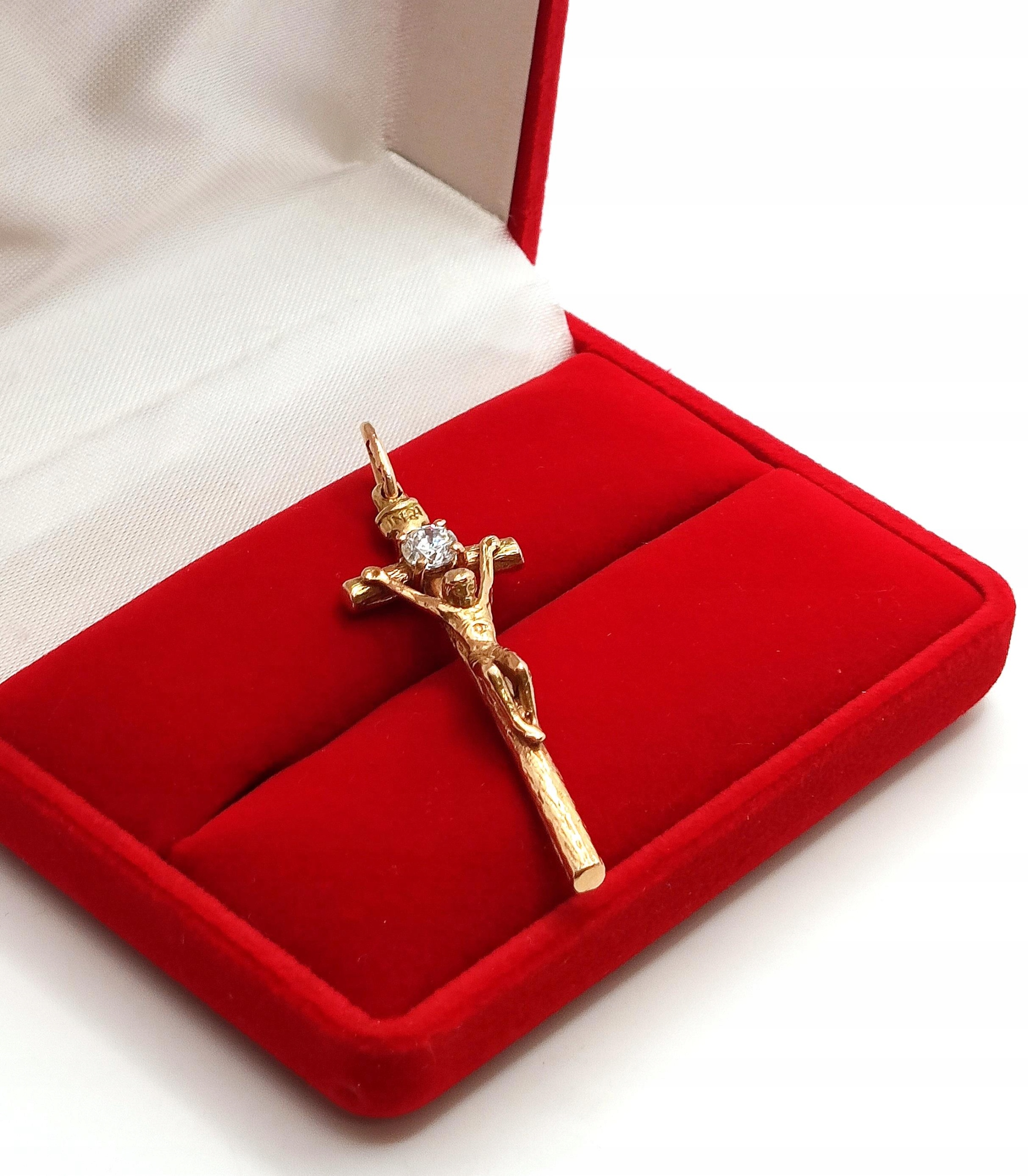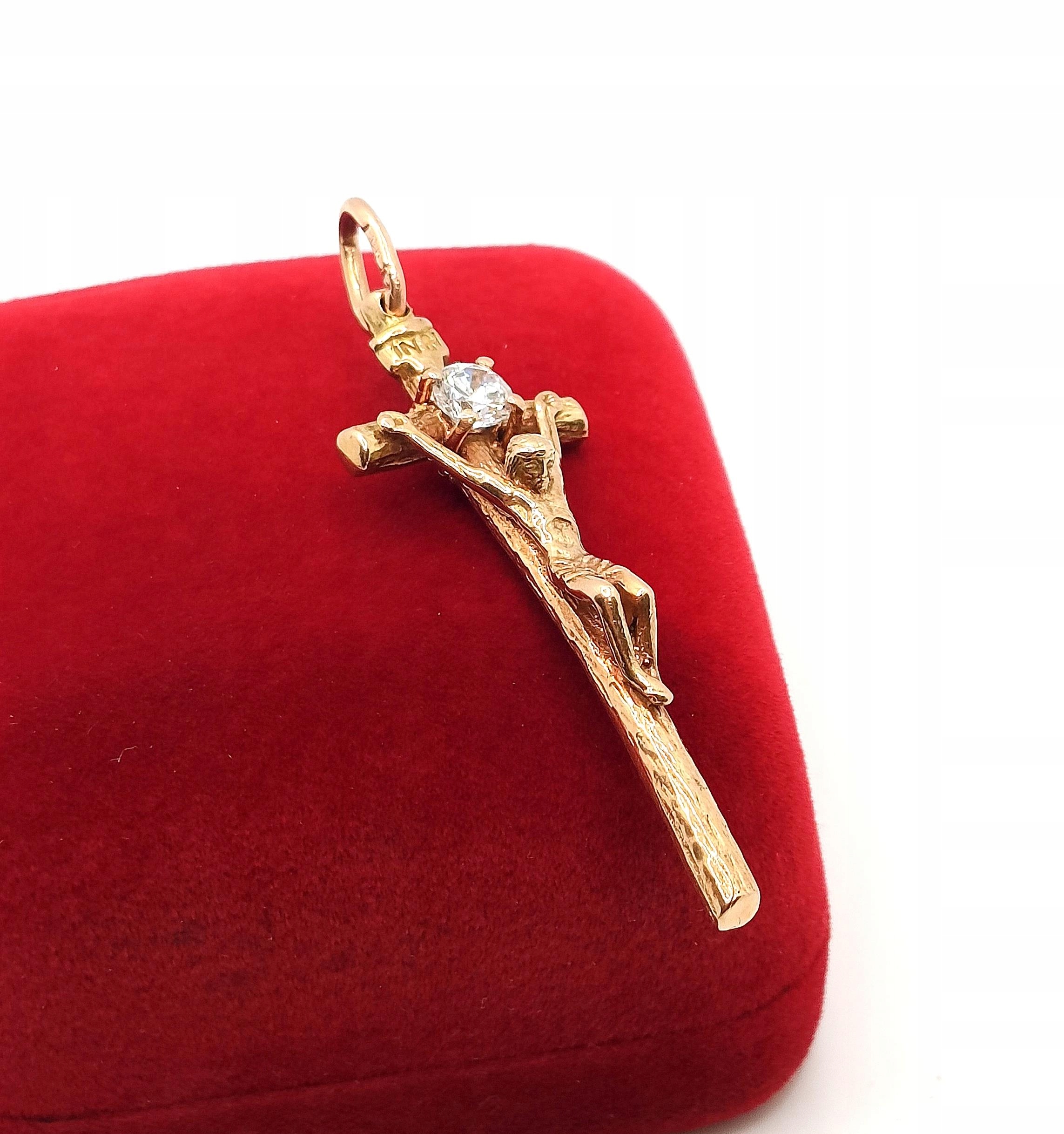 Złota zawieszka Krzyż papieski z Jezusem Pr.583 W:5,82gr