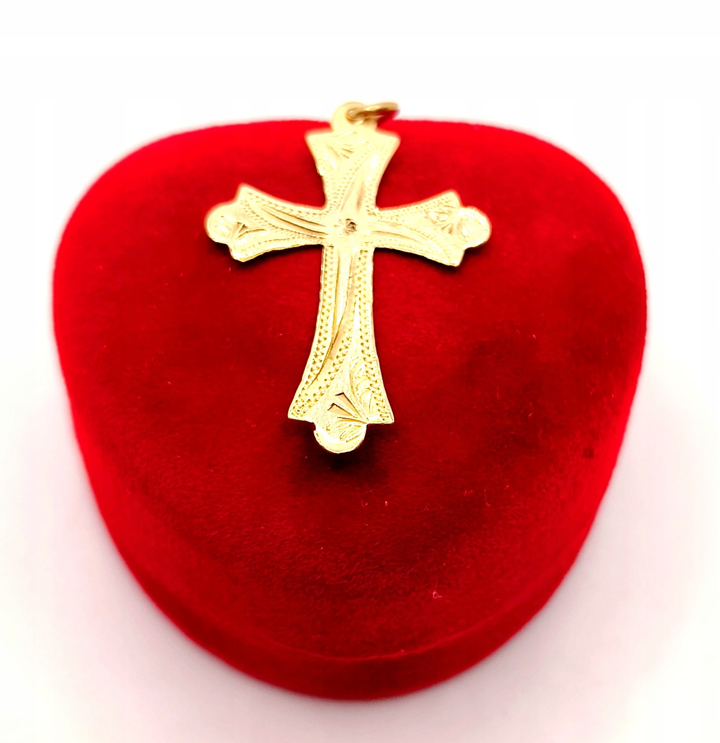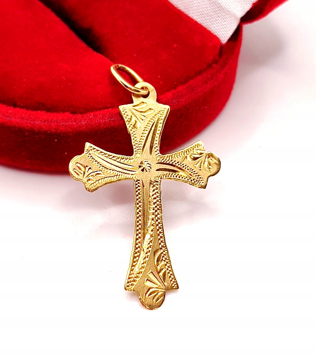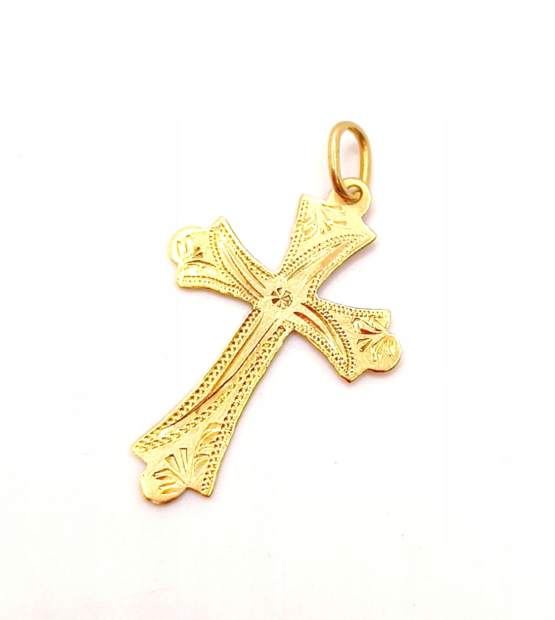 W ofercie na sprzedaż mamy dla Państwa piękną, złotą zawieszkę w kształcie zdobionego krzyża.