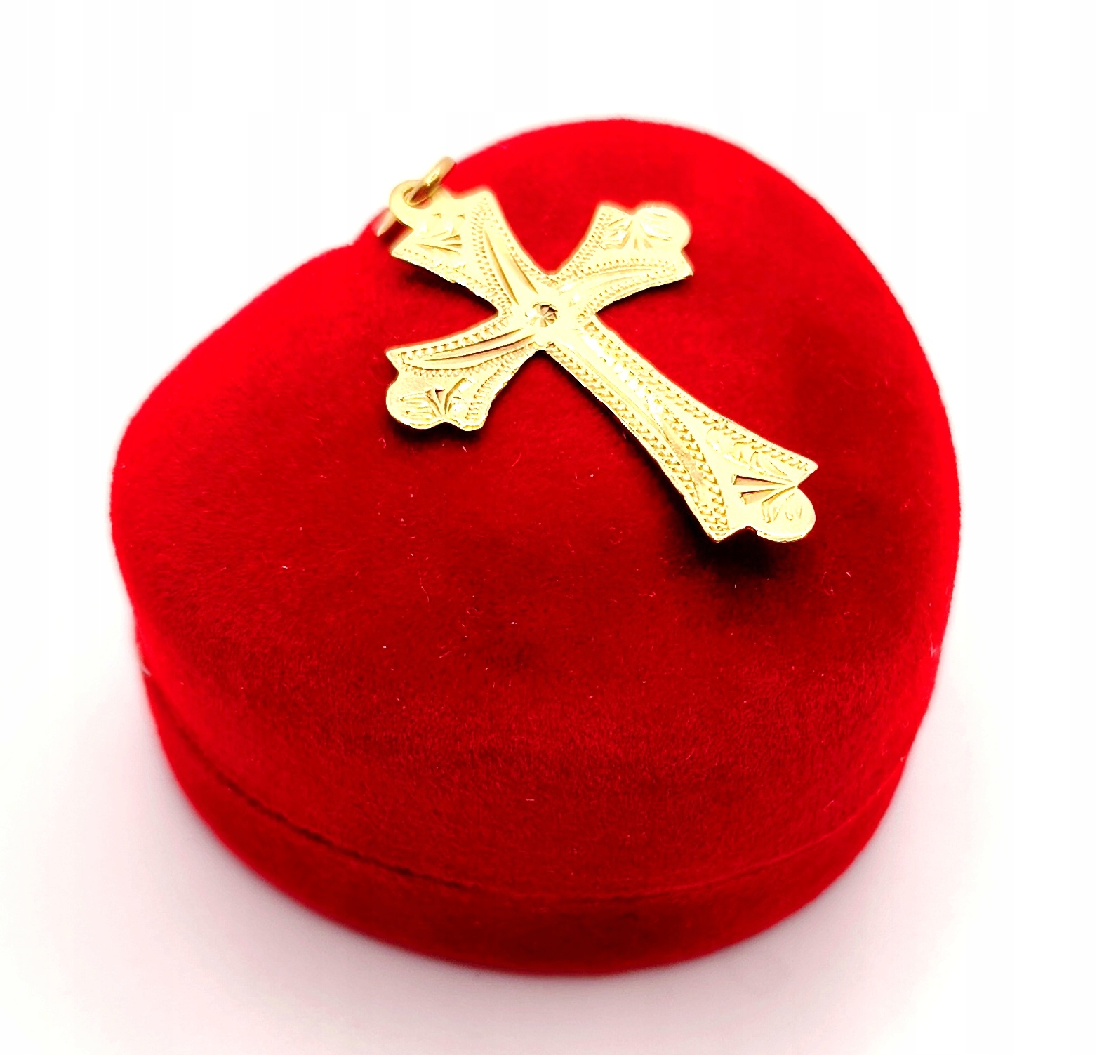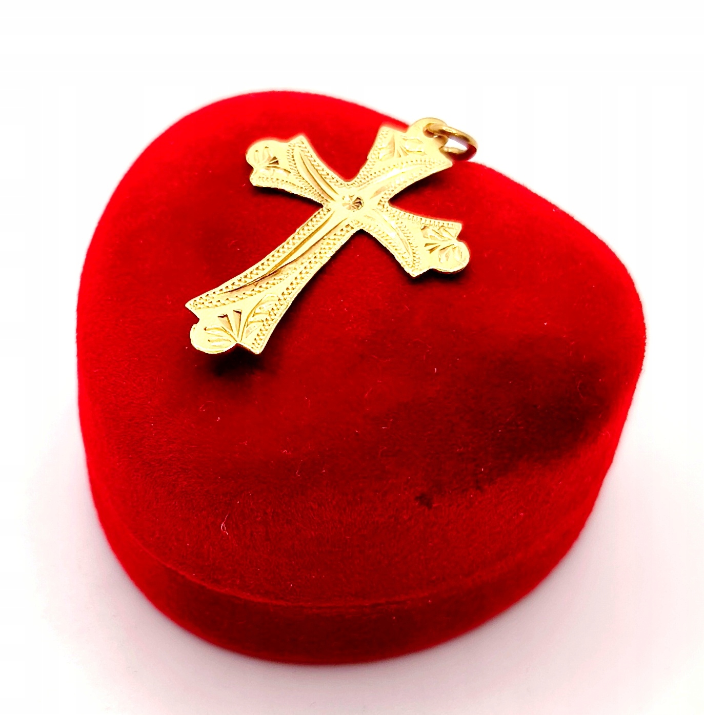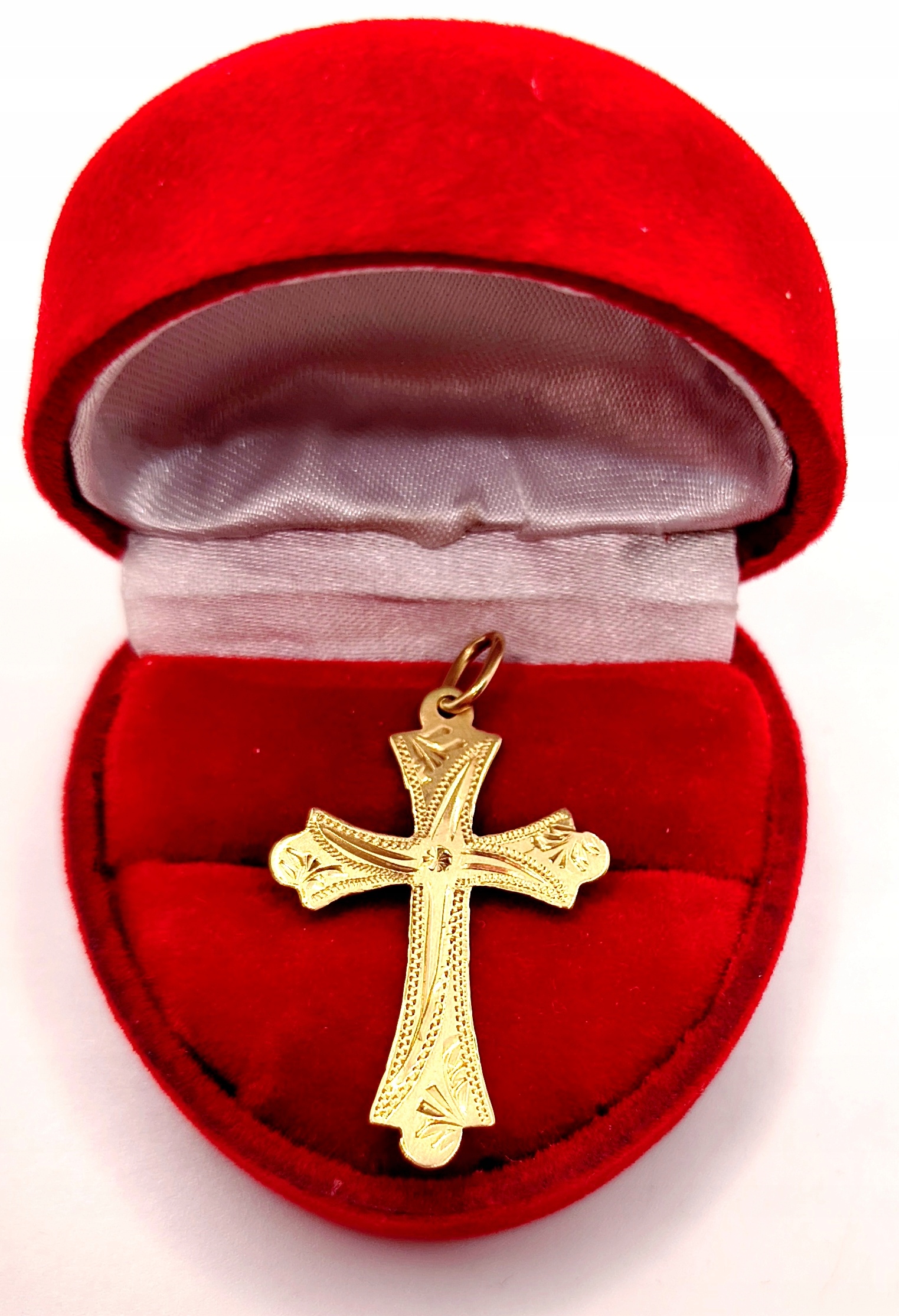 W ofercie na sprzedaż mamy dla Państwa piękną, złotą zawieszkę w kształcie zdobionego krzyża.