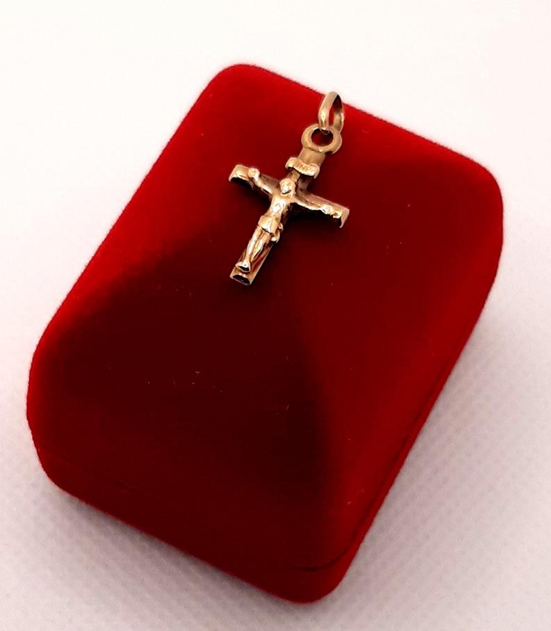 W ofercie sprzedaży posiadamy złotą zawieszkę, krzyż z Chrystusem.