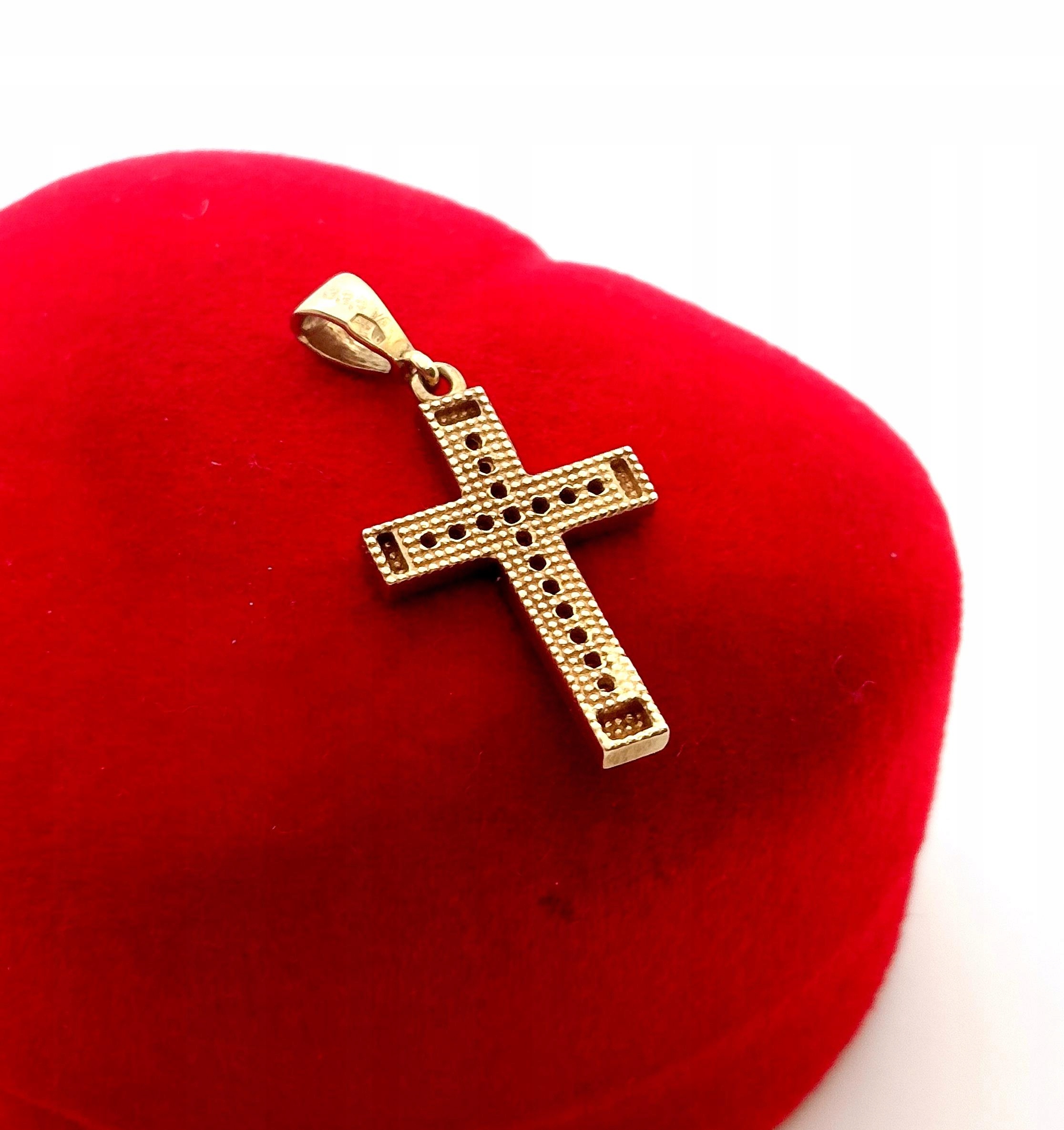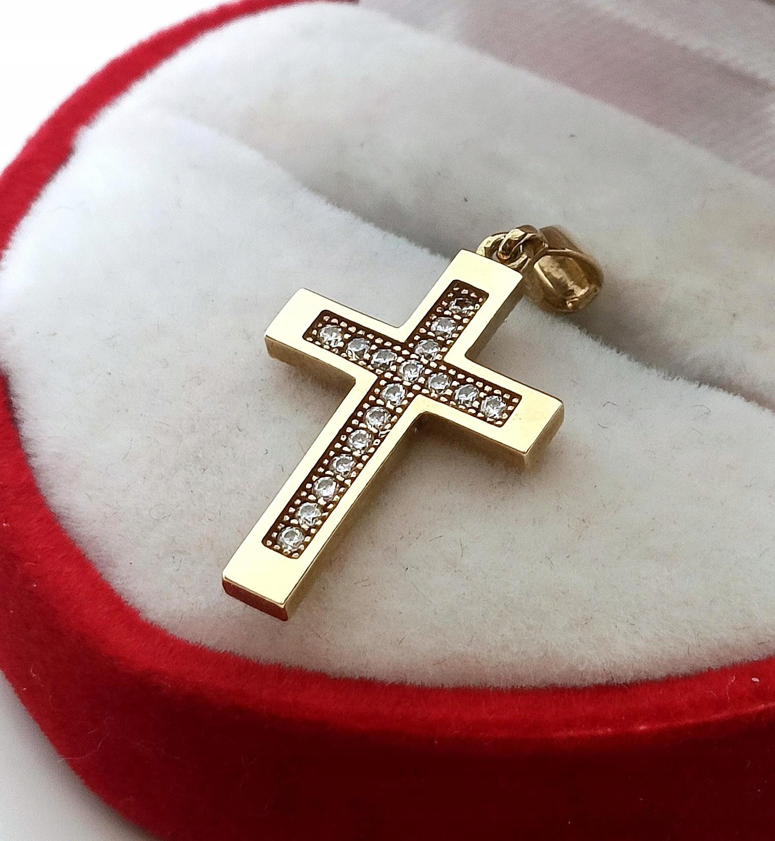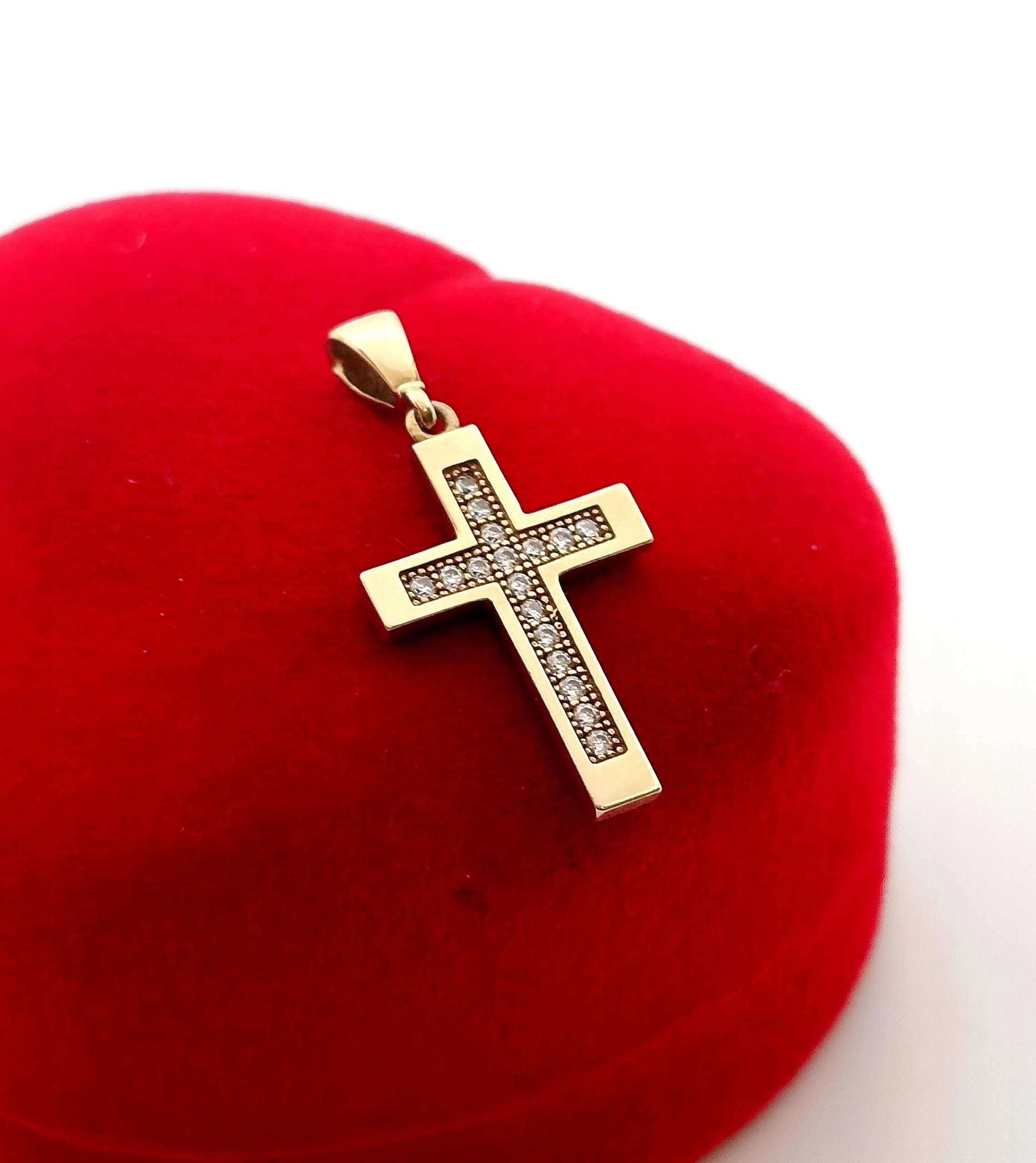 Oferujemy na sprzedaż piękny, złoty krzyżyk ozdobiony cyrkoniami.