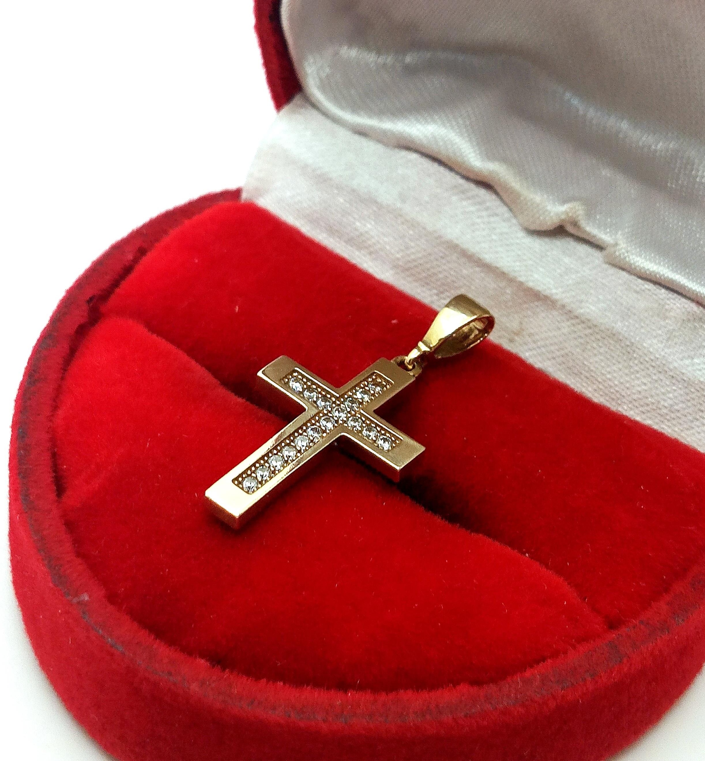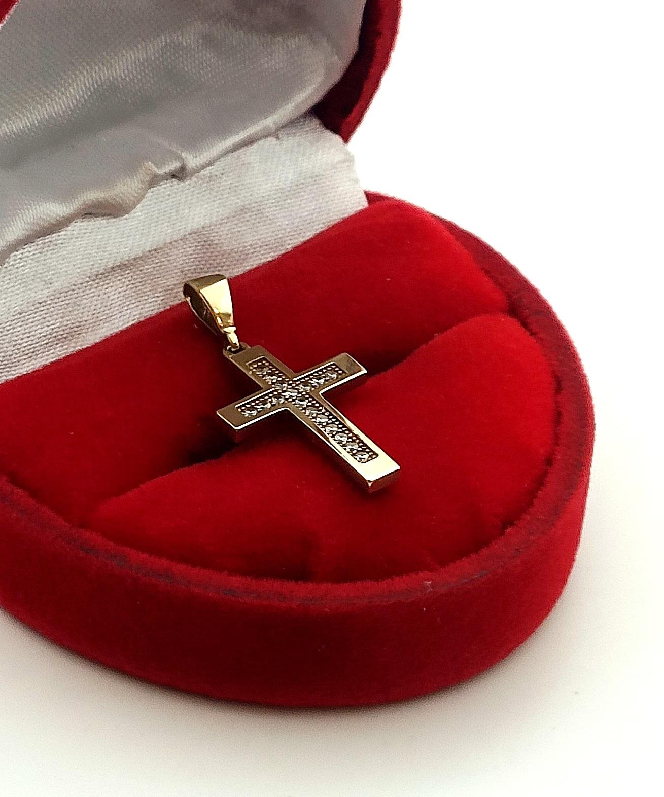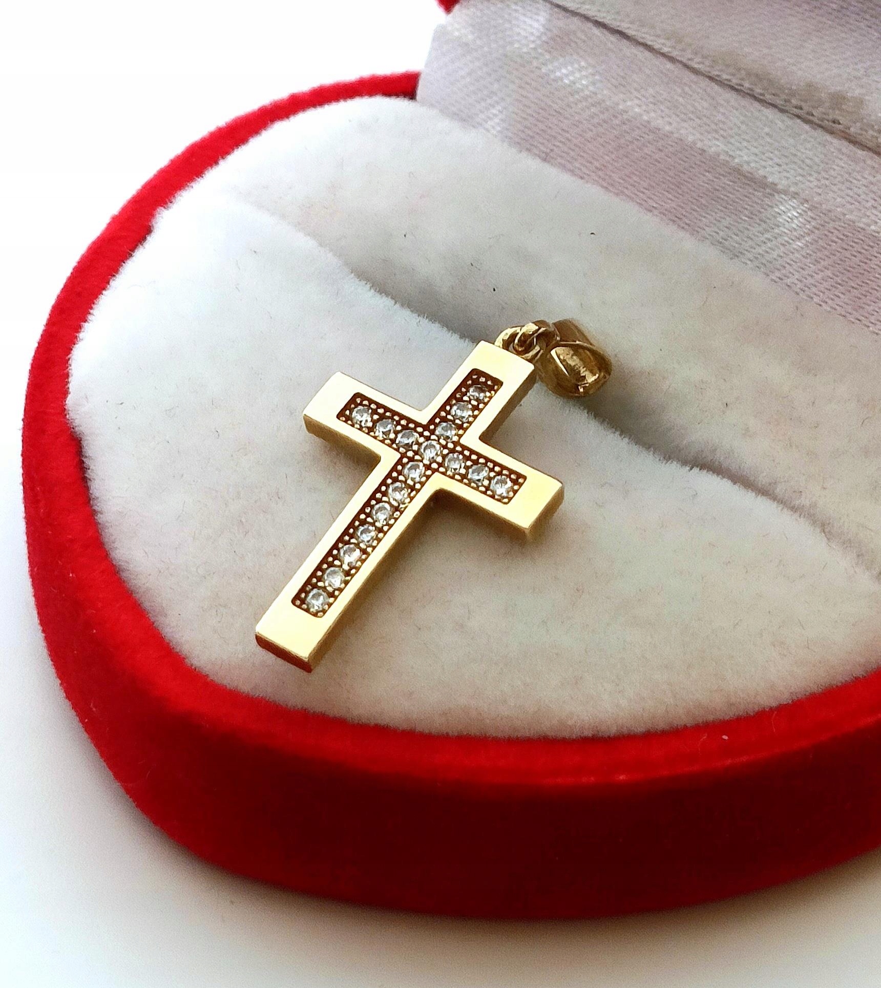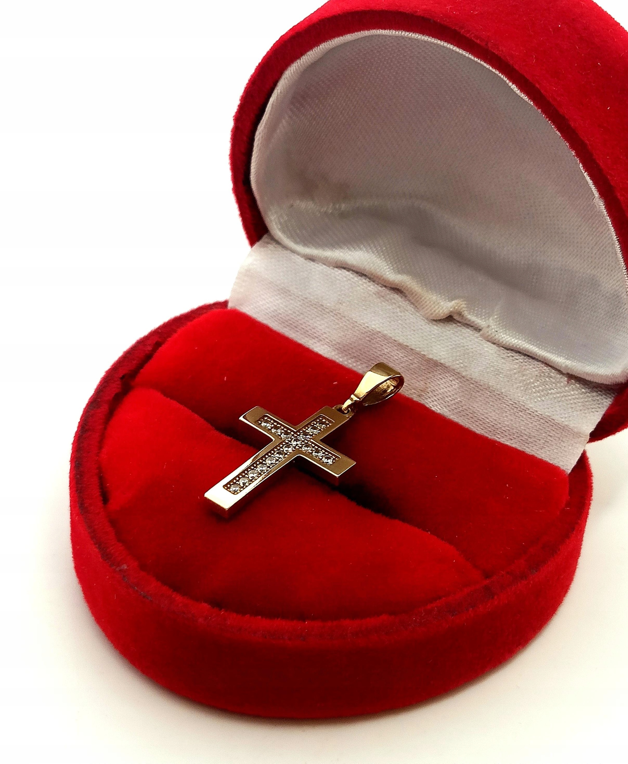 Oferujemy na sprzedaż piękny, złoty krzyżyk ozdobiony cyrkoniami.