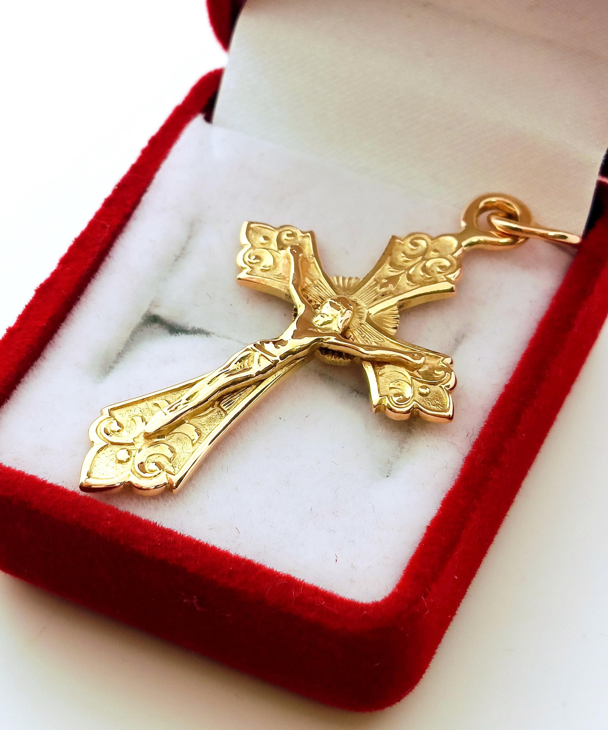 W ofercie na sprzedaż mamy dla Państwa piękny, złoty krzyżyk z wizerunkiem ukrzyżowanego Chrystusa.