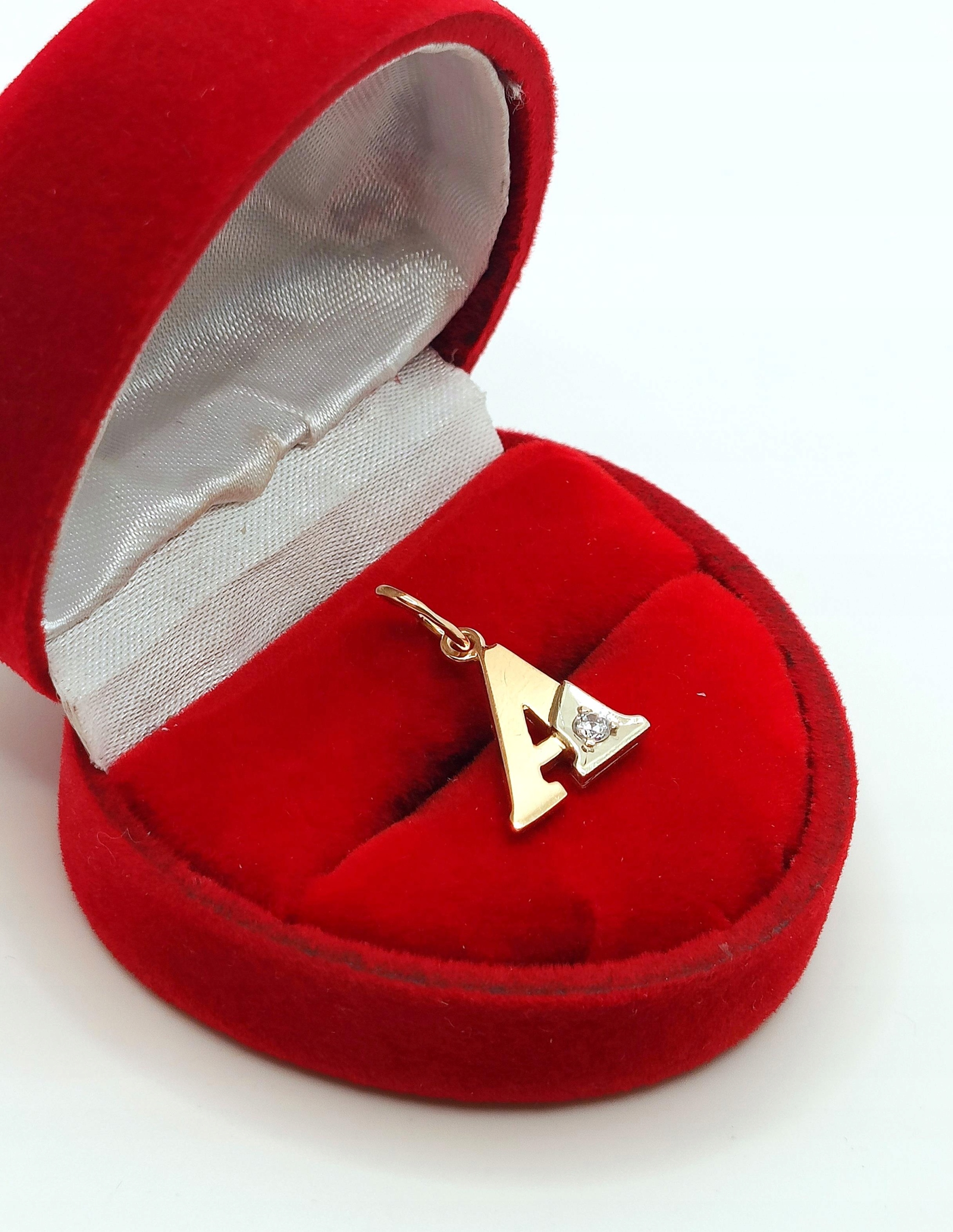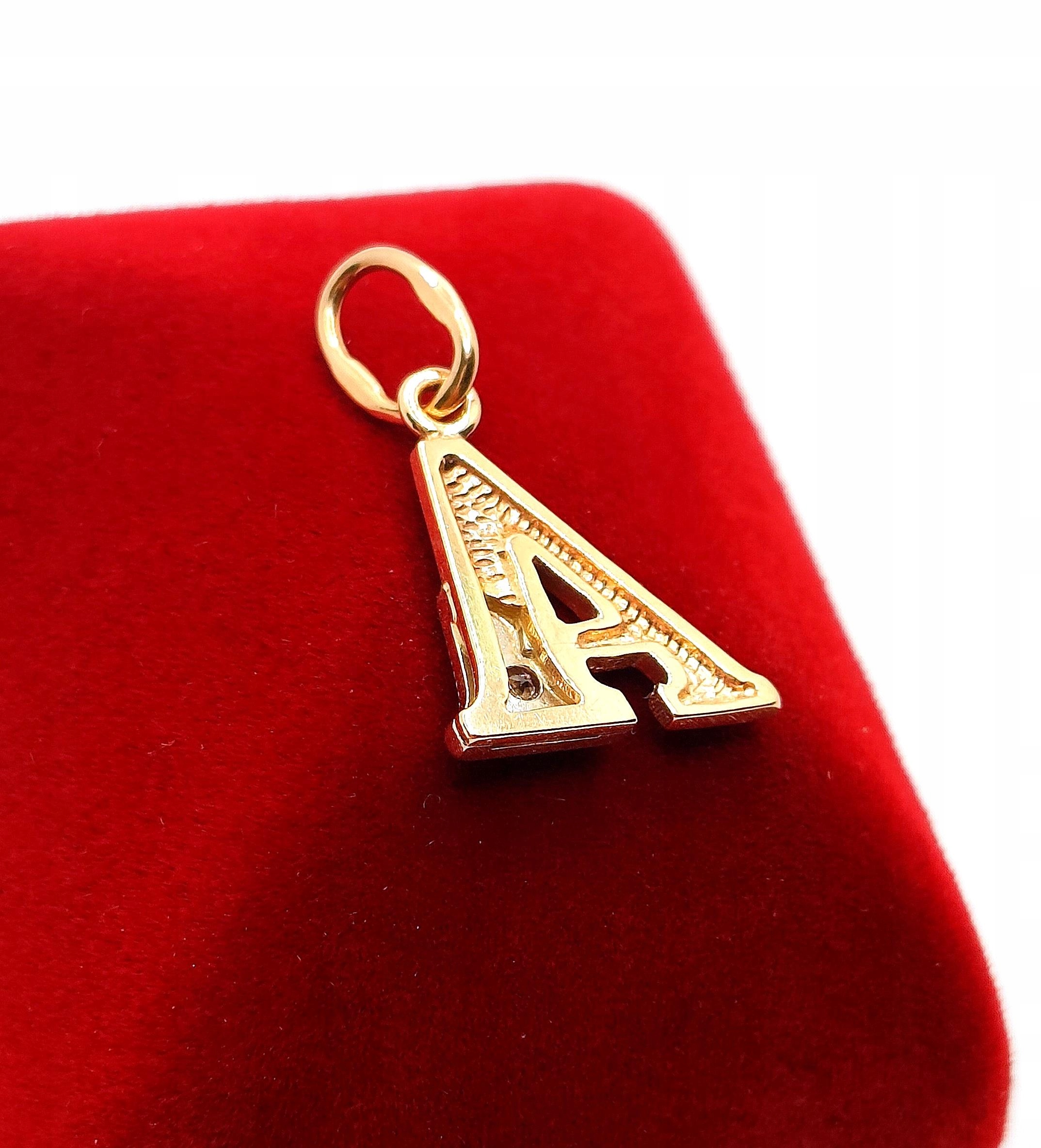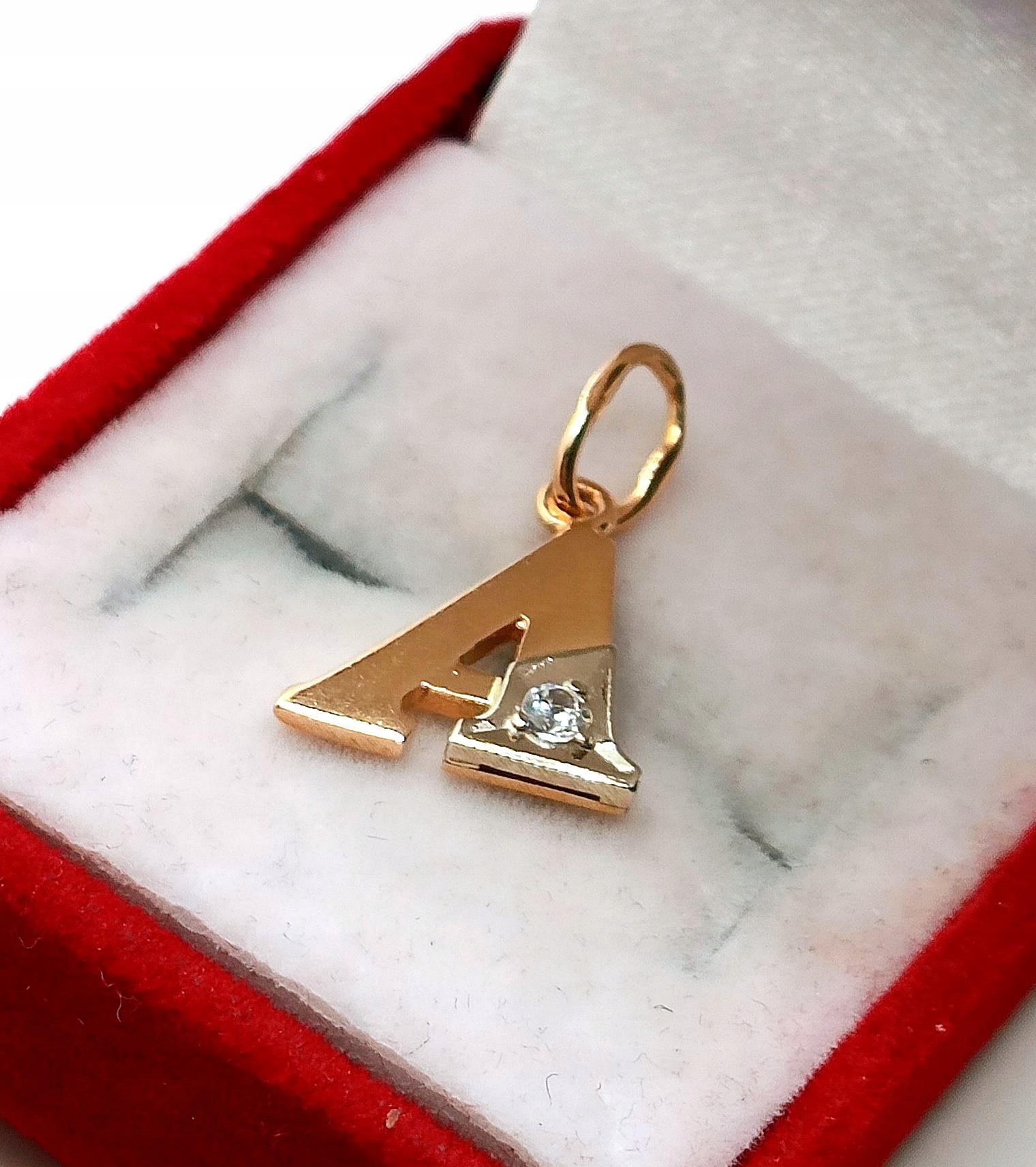 W ofercie na sprzedaż mamy dla państwa złotą zawieszkę, literę A ozdobioną cyrkonią .