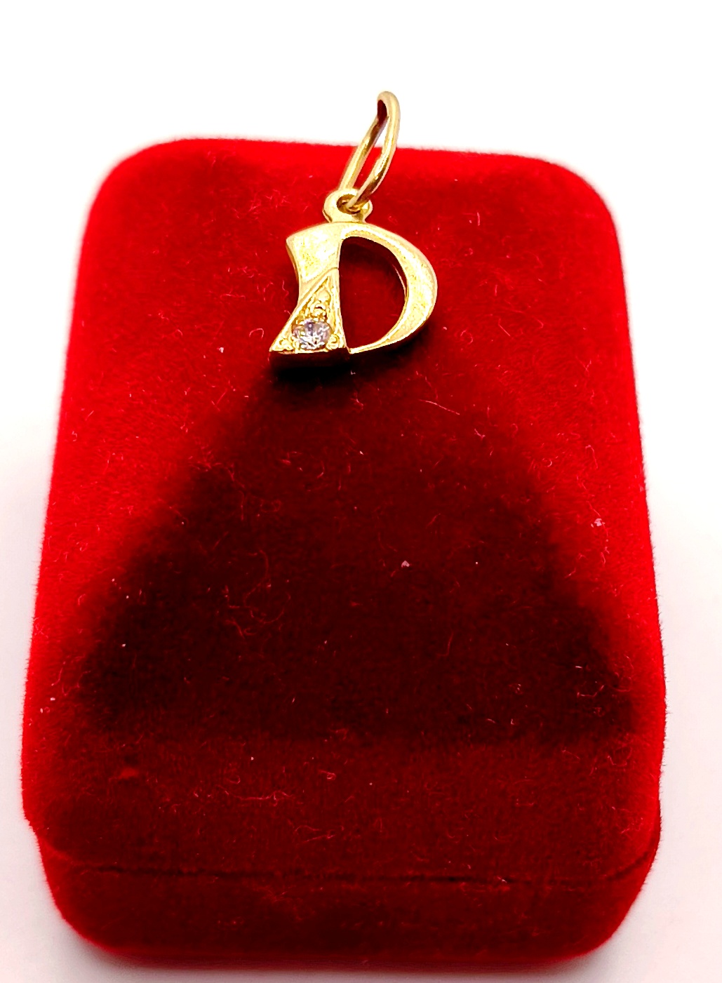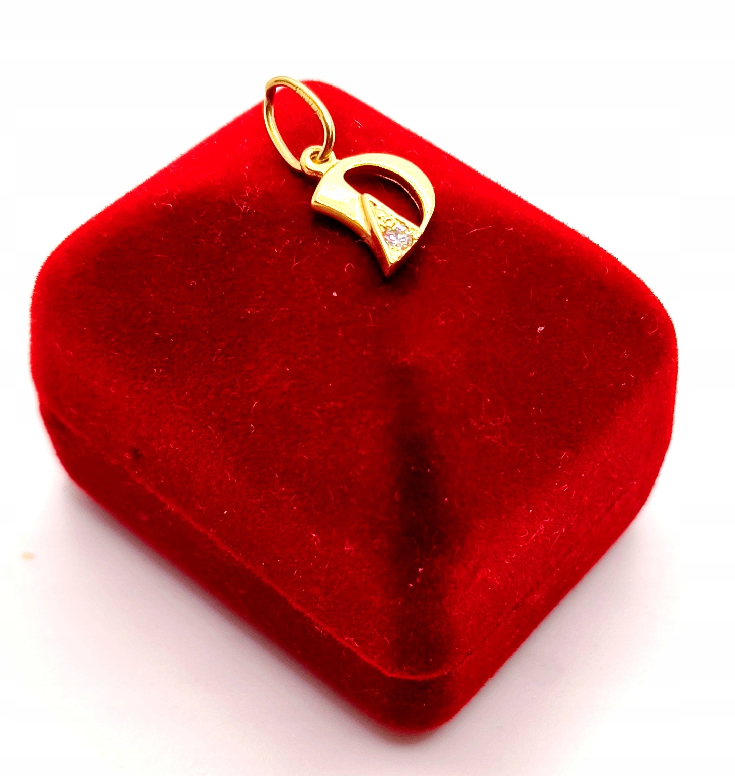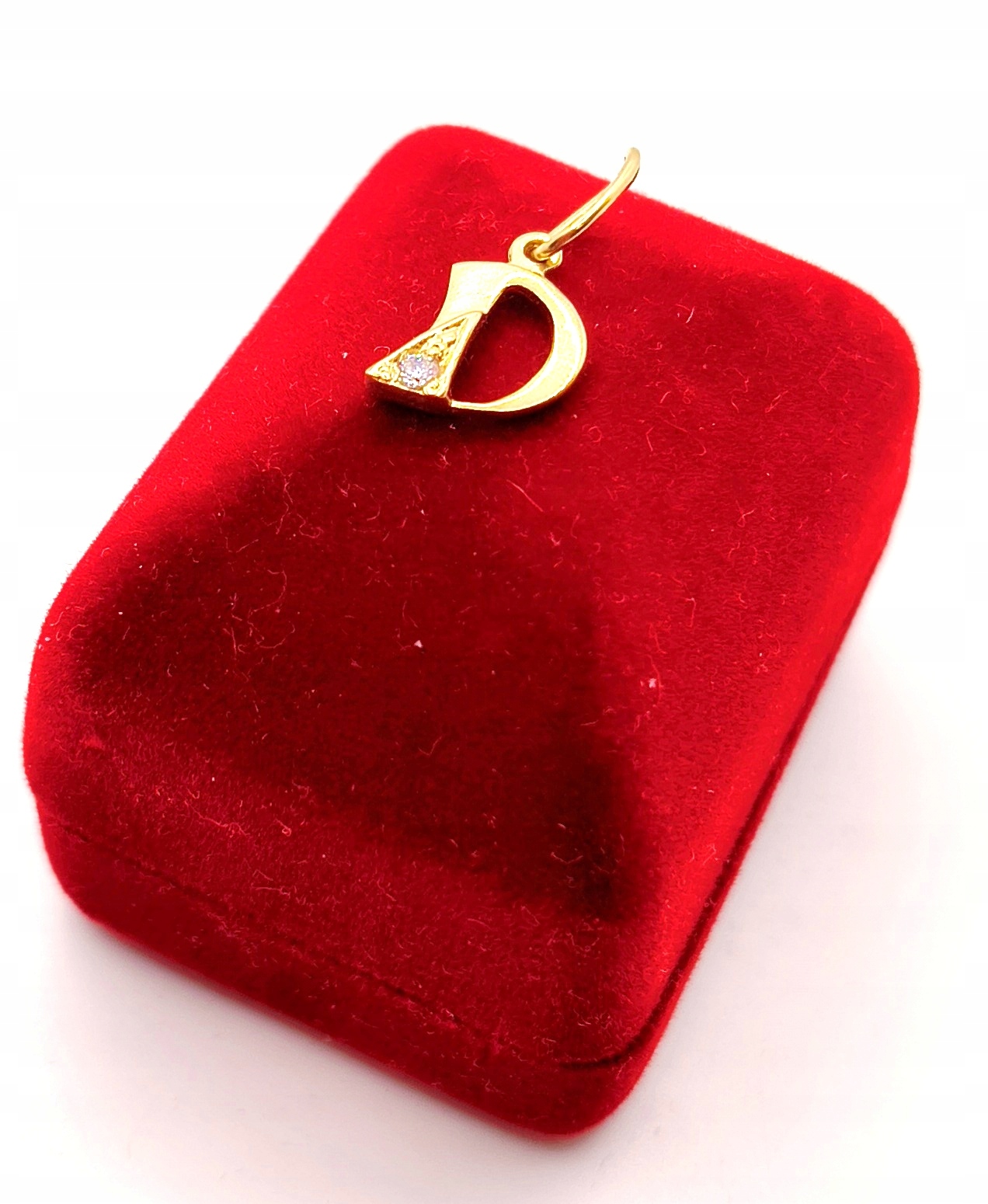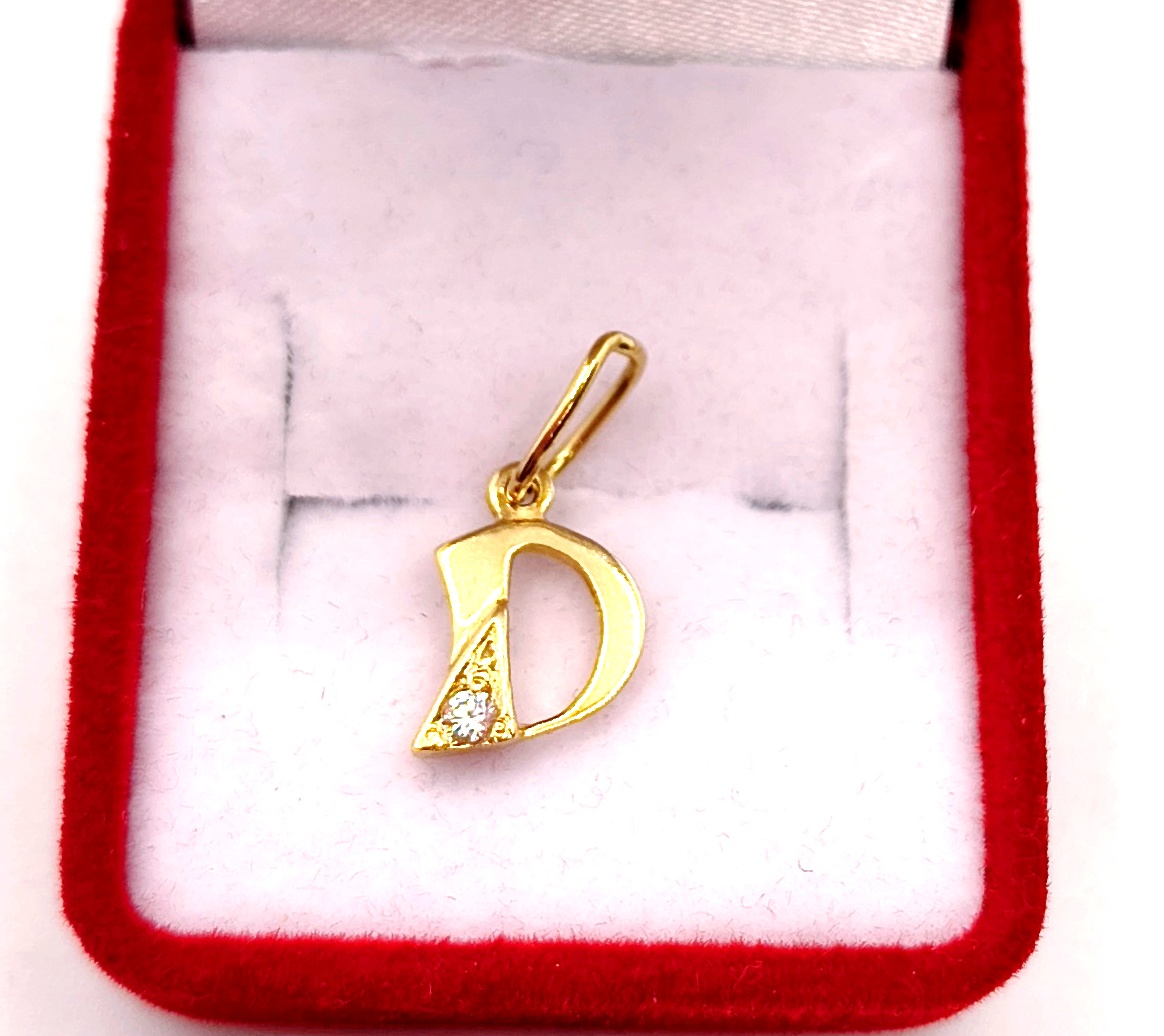W ofercie na sprzedaż mamy dla Państwa piękną, złotą zawieszkę w kształcie litery D ozdobioną cyrkonią.