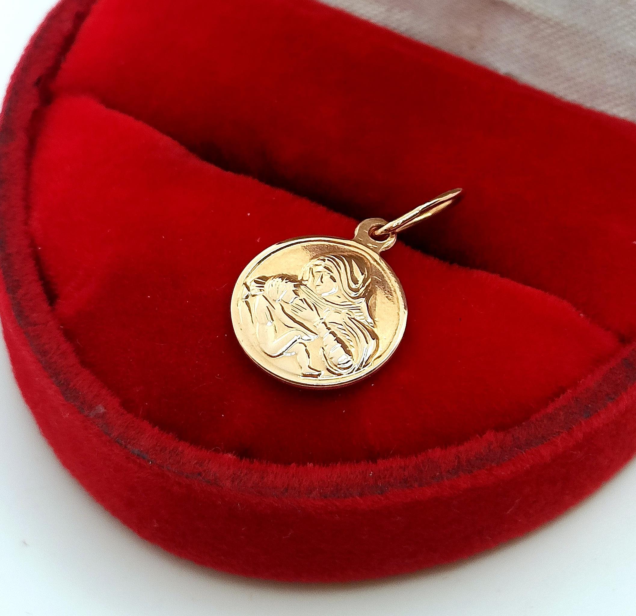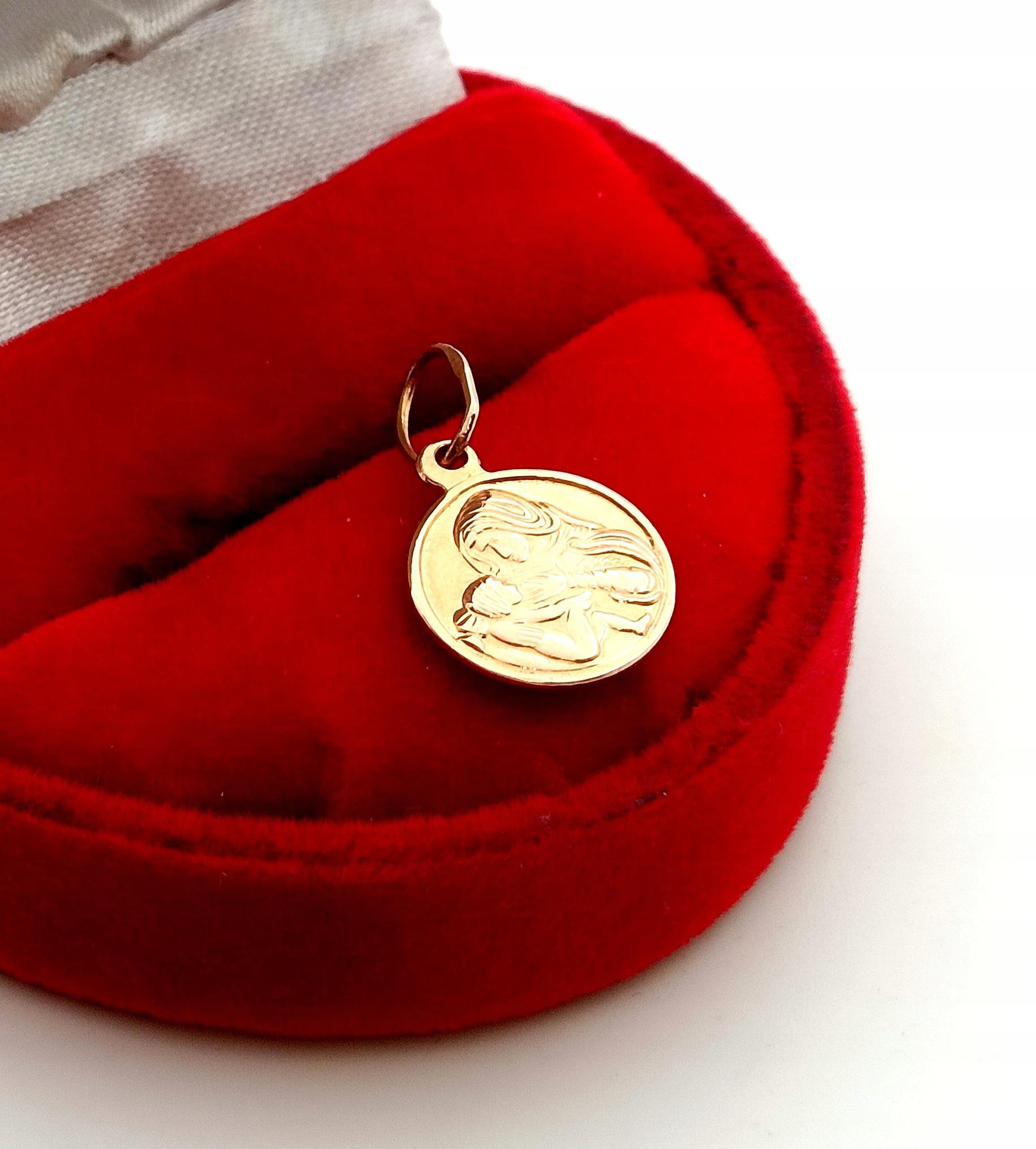 W ofercie na sprzedaż mamy dla Państwa złotą zawieszkę, medalik z wizerunkiem Matki Boskiej Karmiącej.