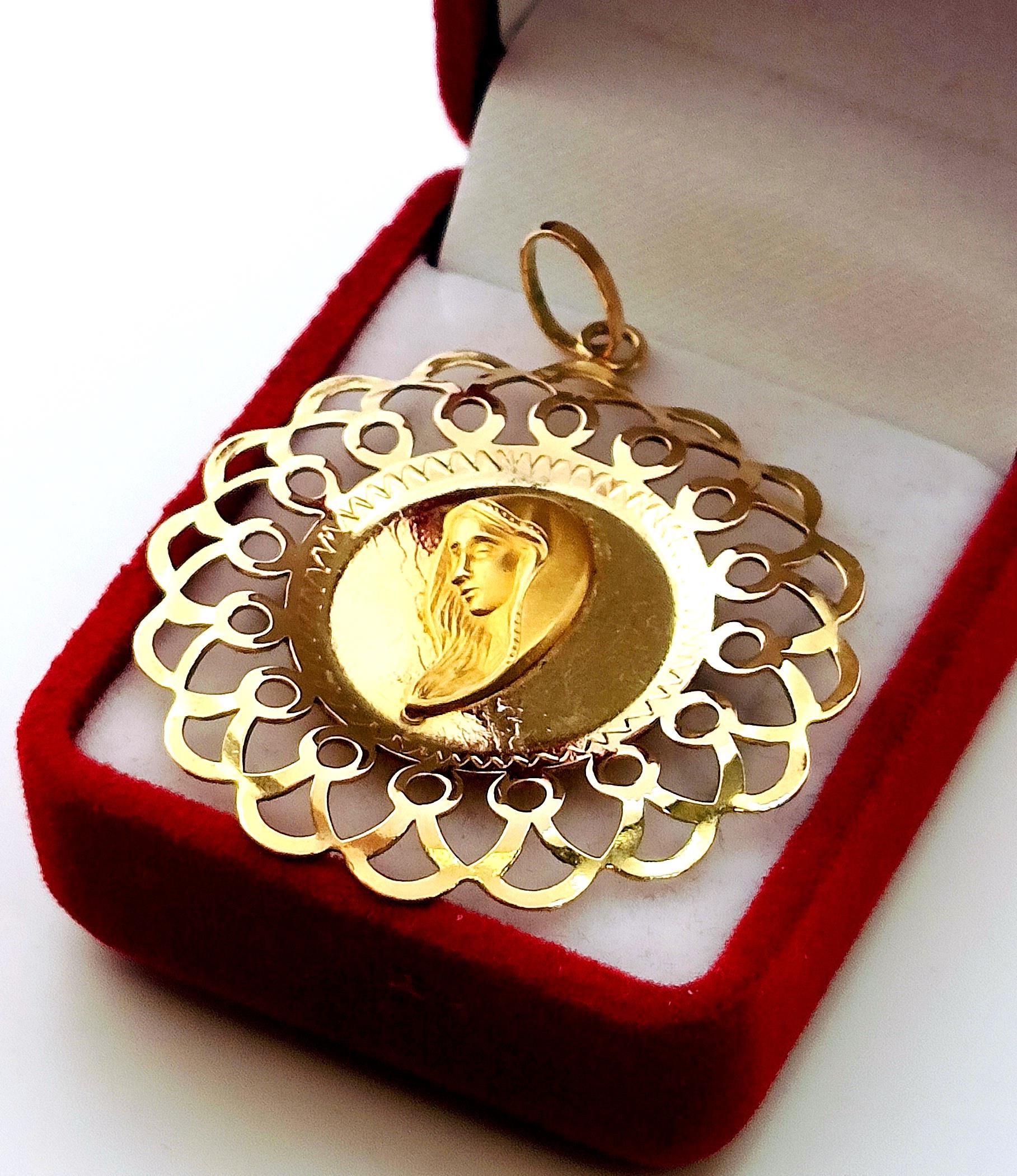 Złoty medalik duży z Matką Boską Pr.585 W:3,62gr