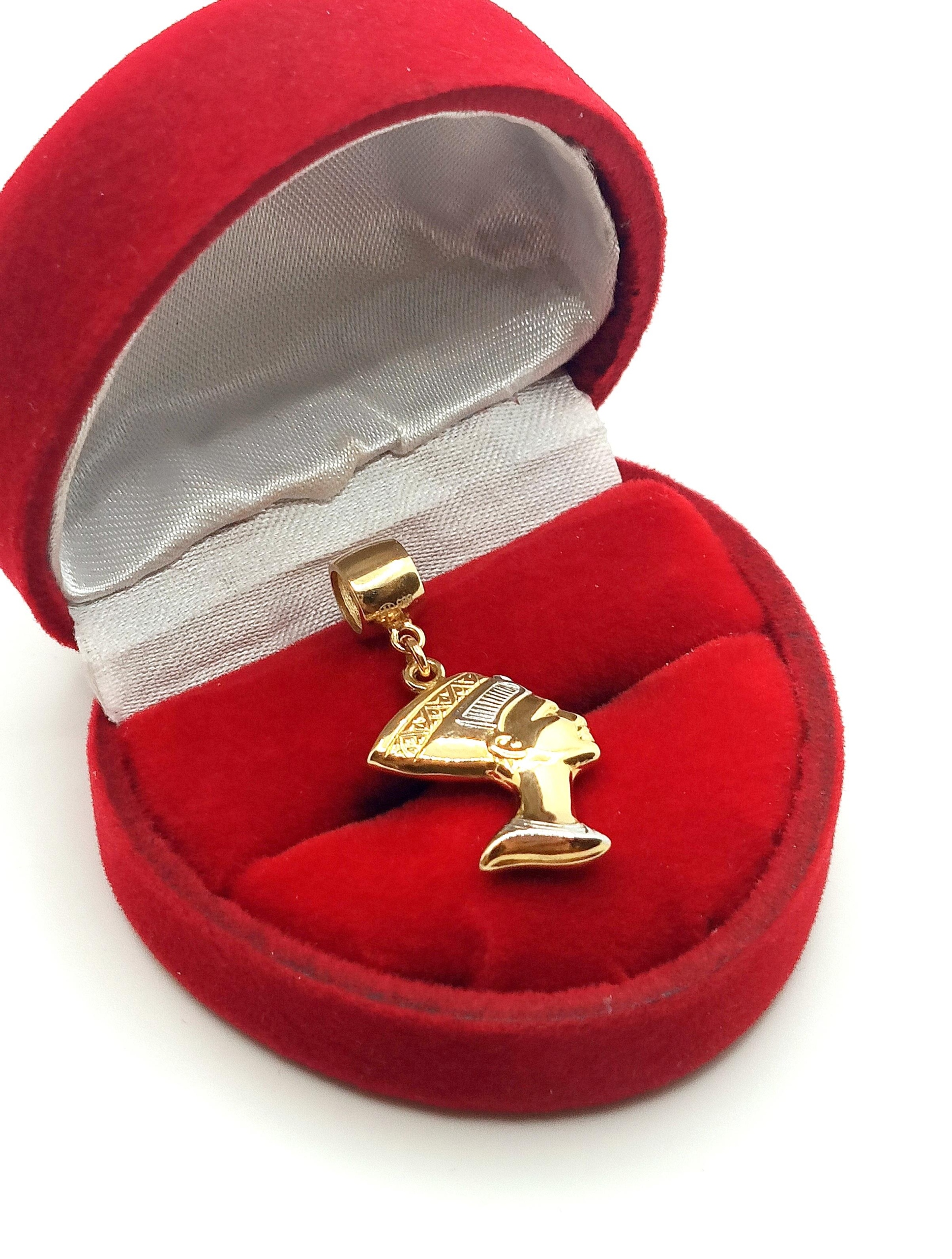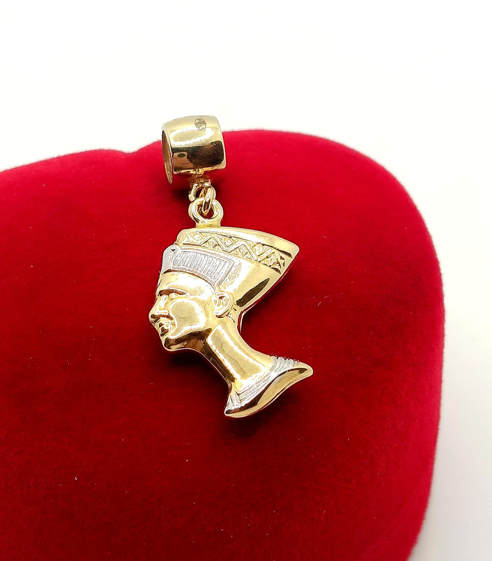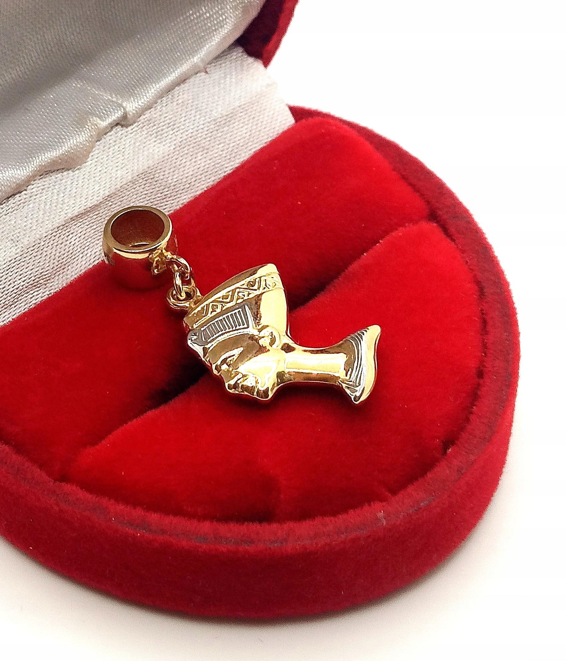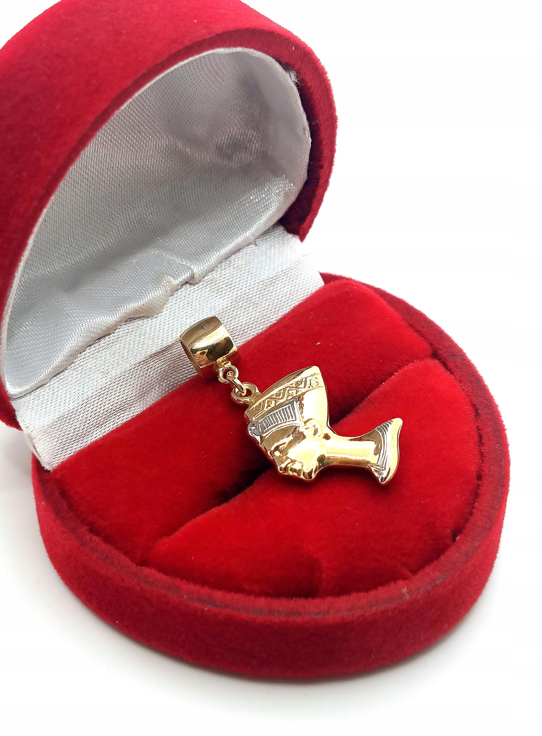 W ofercie na sprzedaż mamy dla Państwa złotą zawieszkę z wizerunkiem Nefretete. zawieszka jest dwustronna, pusta w środku.