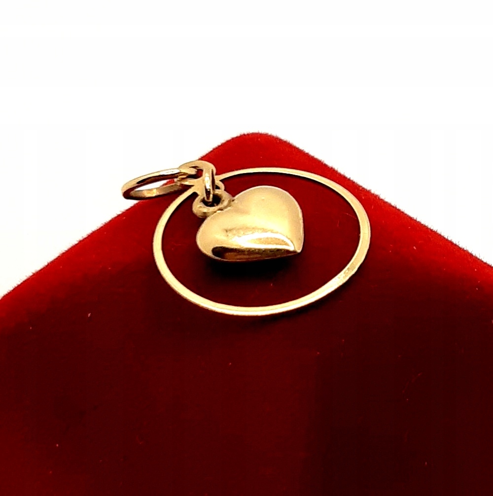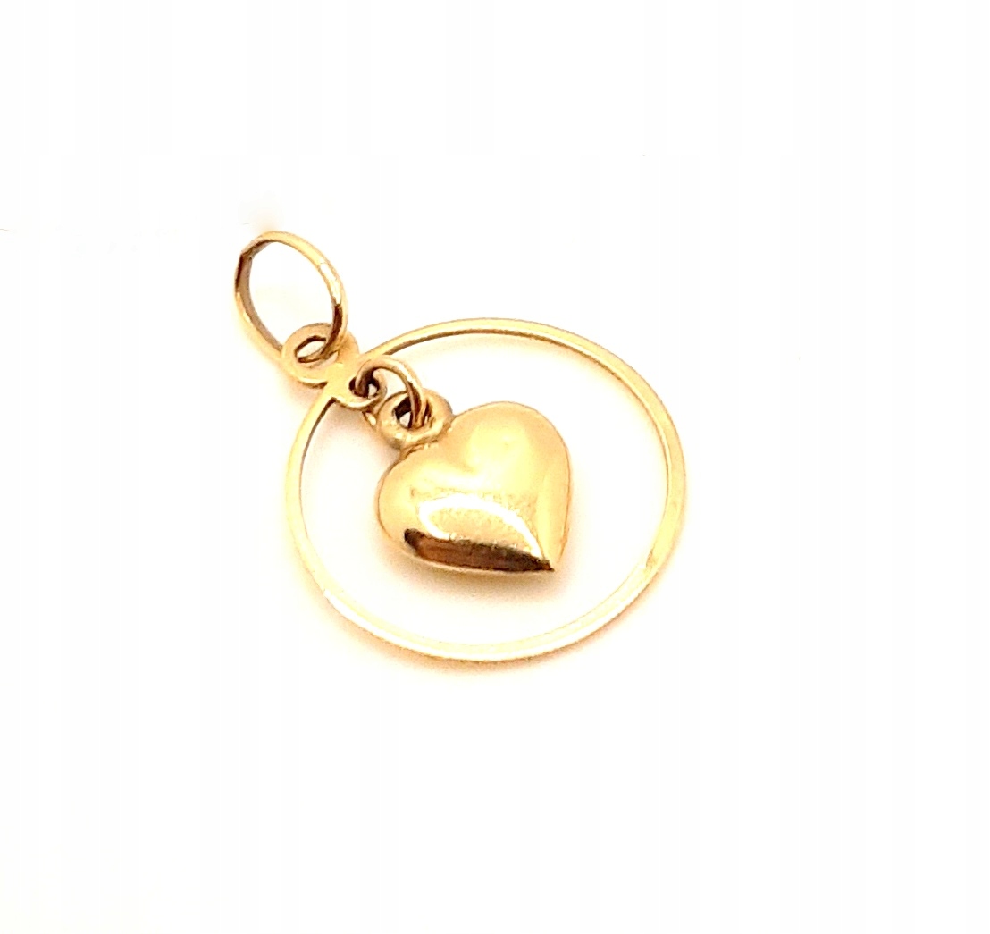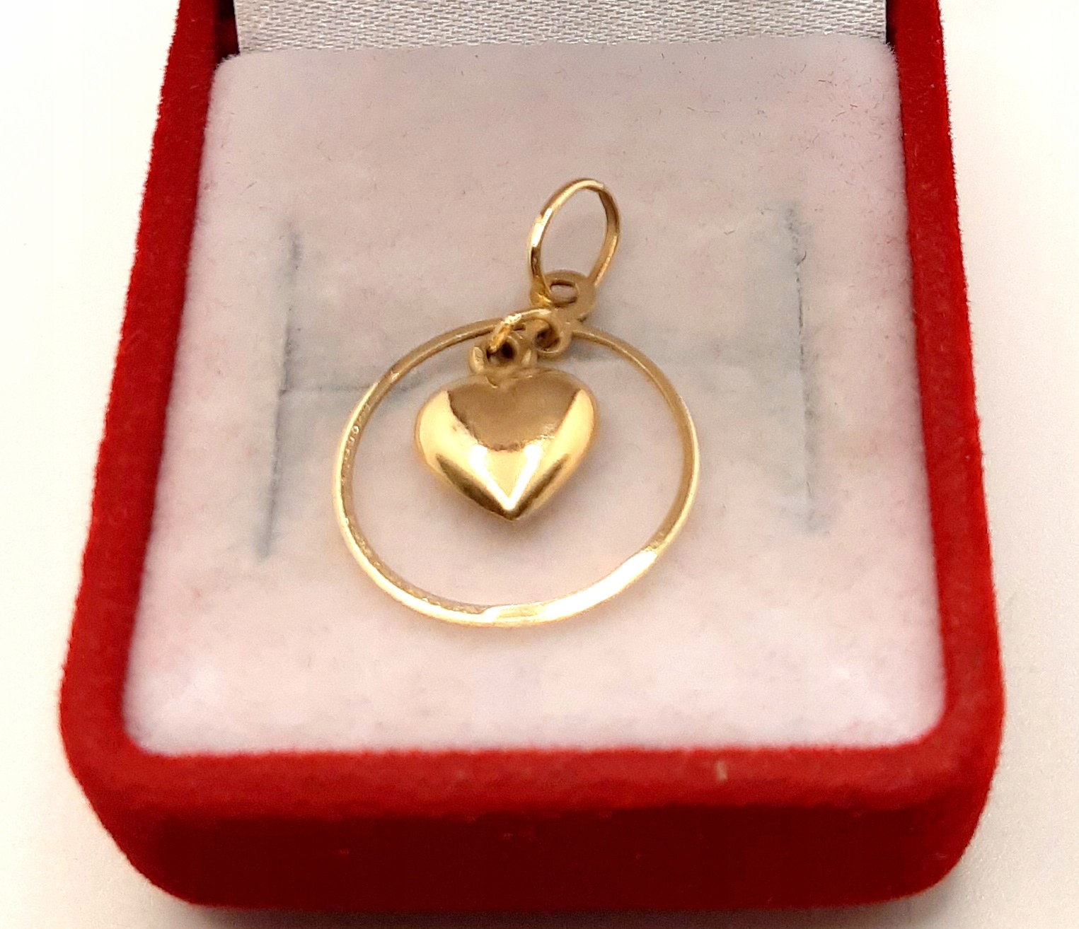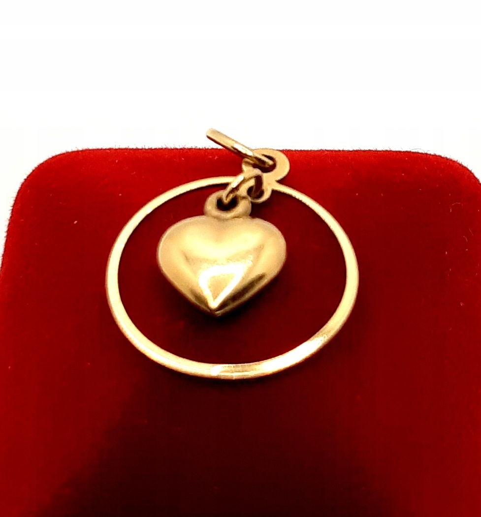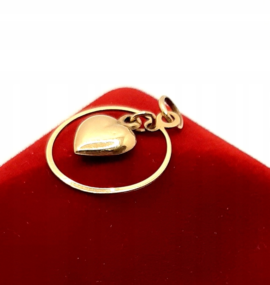 W ofercie na sprzedaż mamy dla Państwa piękną, złotą zawieszkę w kształcie serca zawieszonego w ruchomym kółku.