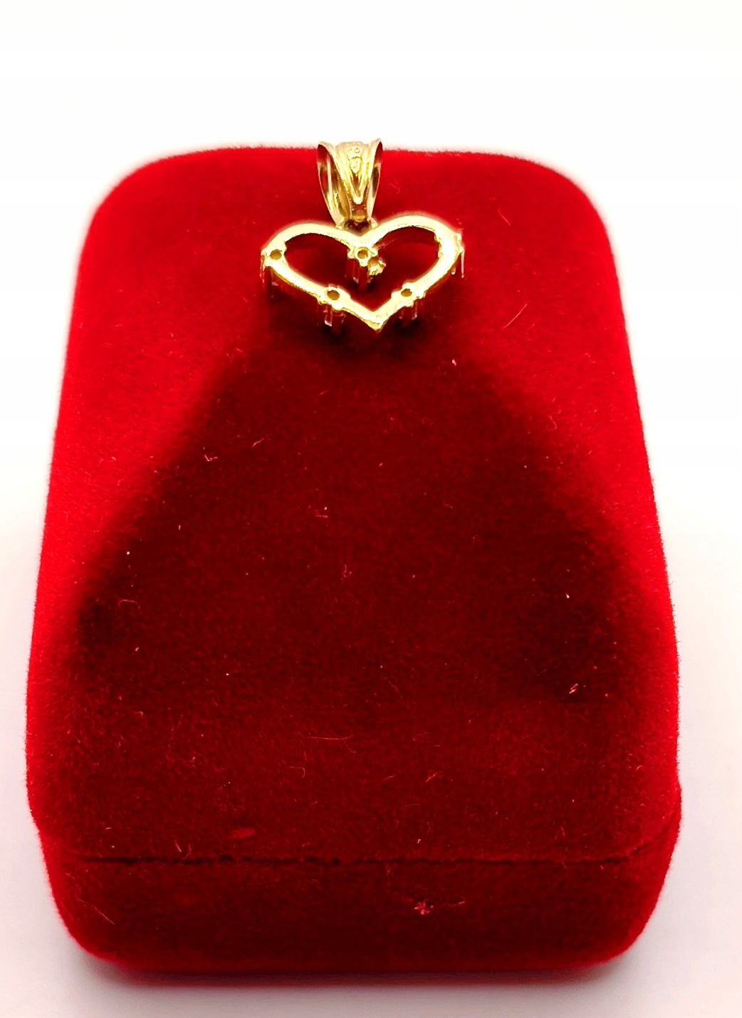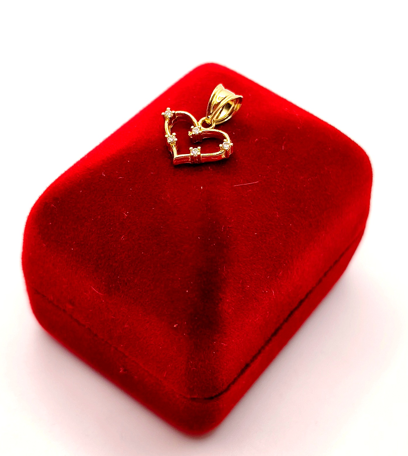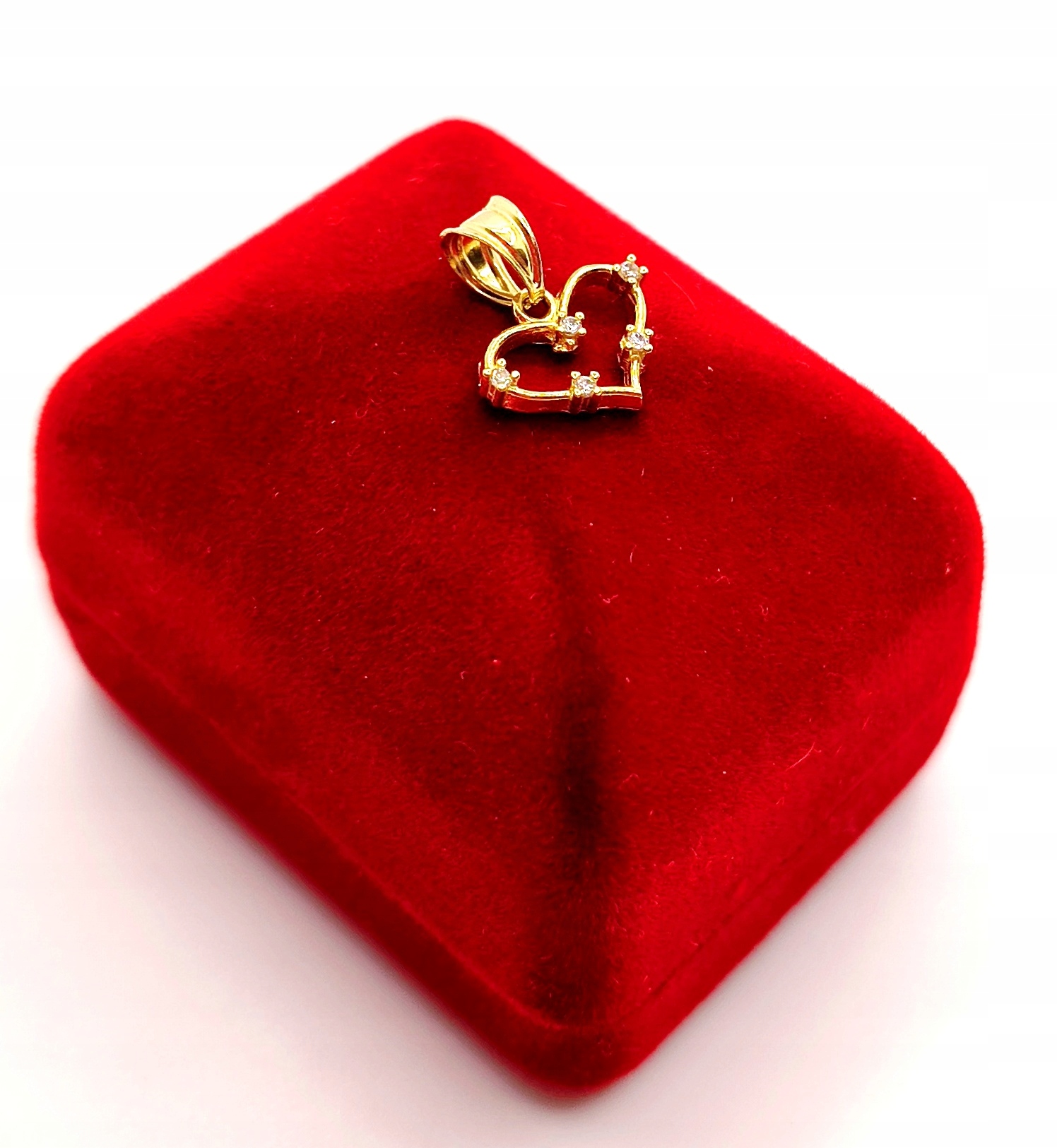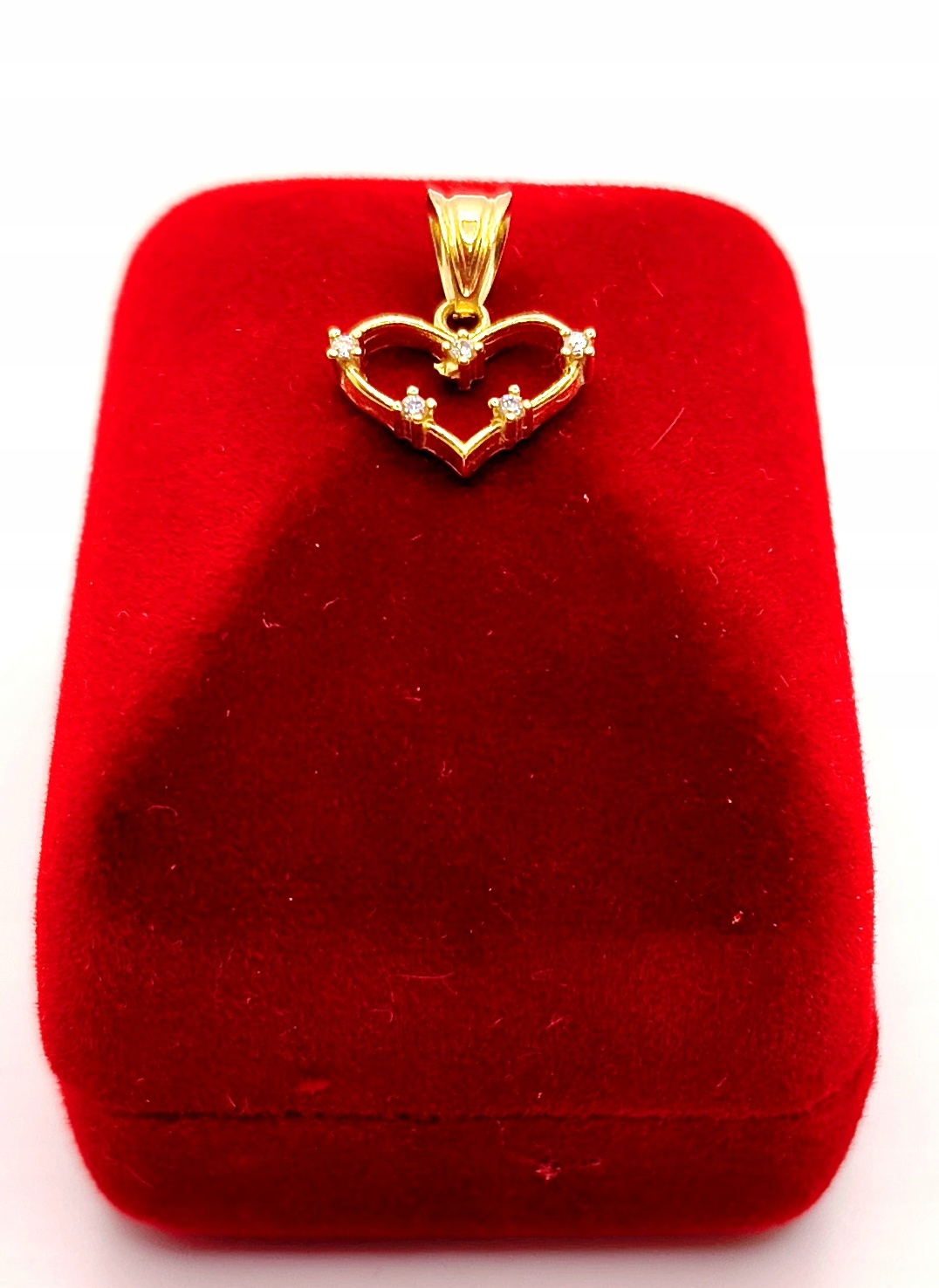 Oferujemy na sprzedaż piękną, złotą zawieszkę w kształcie serca ozdobionego cyrkoniami.