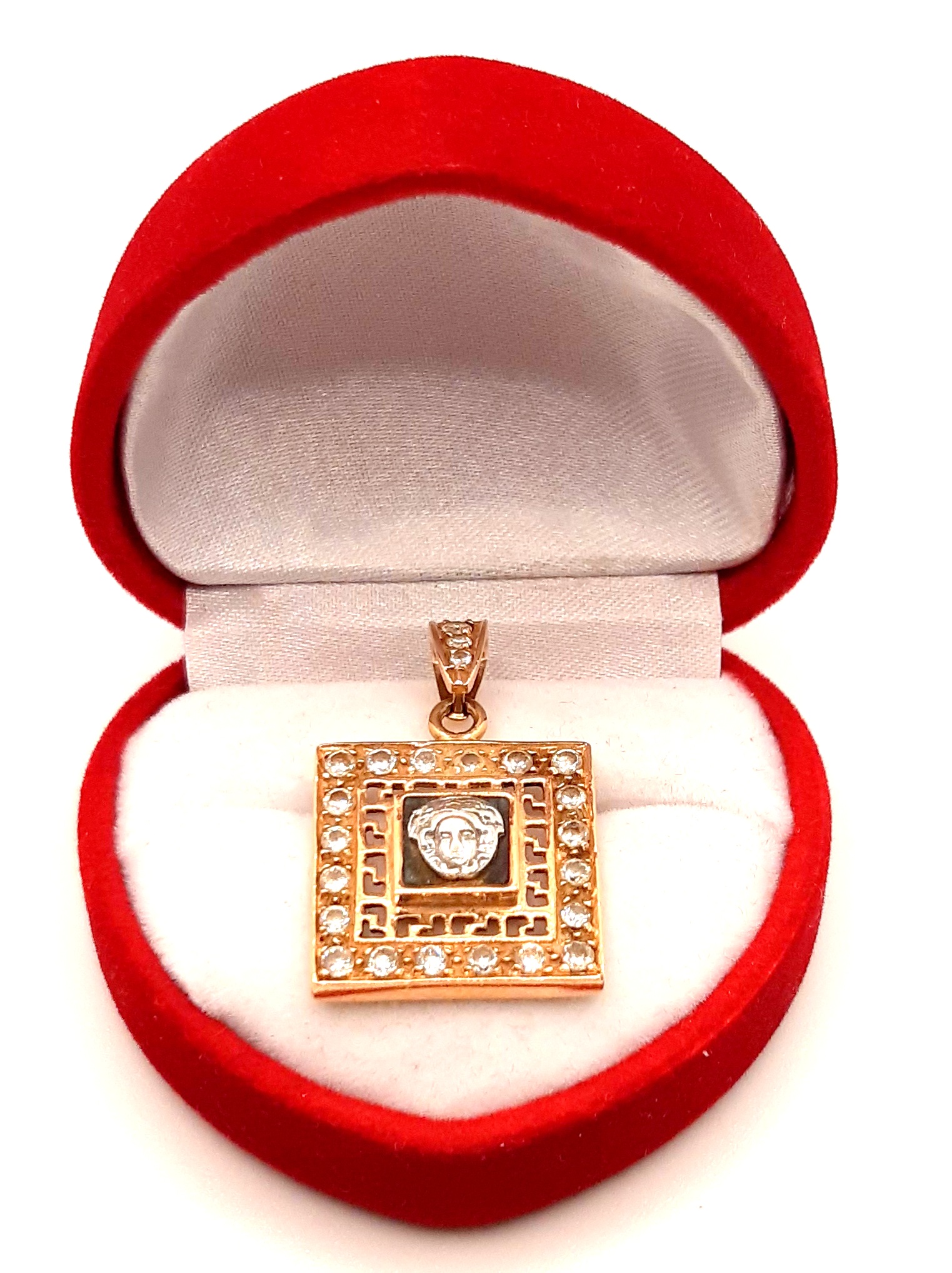 W ofercie na sprzedaż mamy dla Państwa piękną, złotą zawieszkę ze znakiem Versace, ozdobioną cyrkoniami.