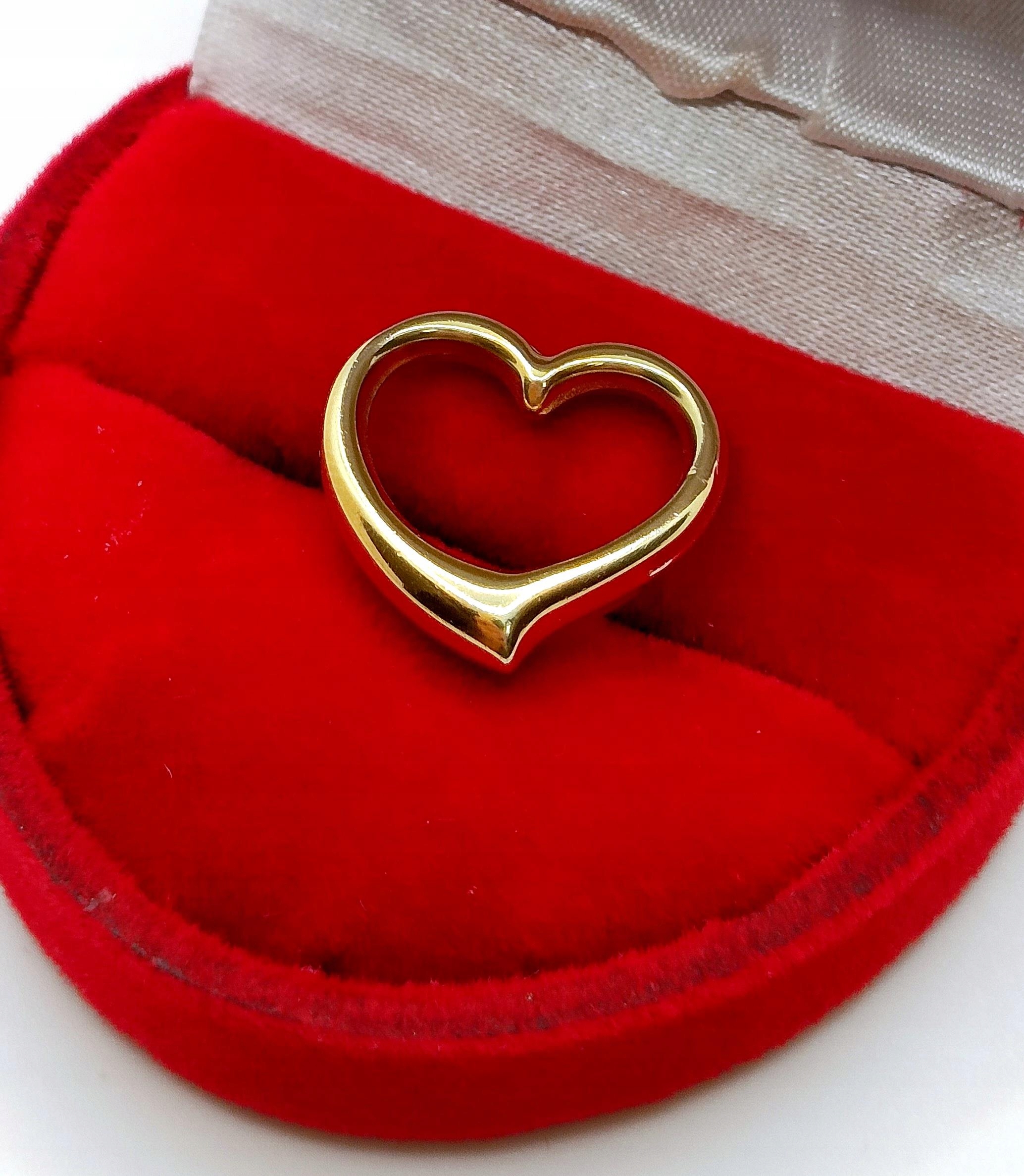 Serce puste w środku, bez ucha na łańcuszek. można je przełożyć przez łańcuszek o każdej grubości