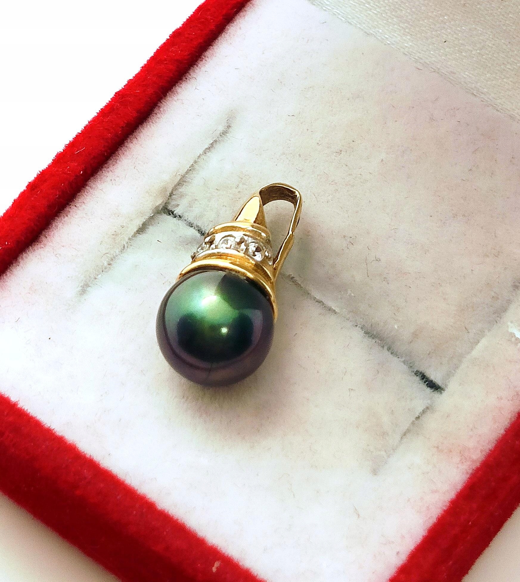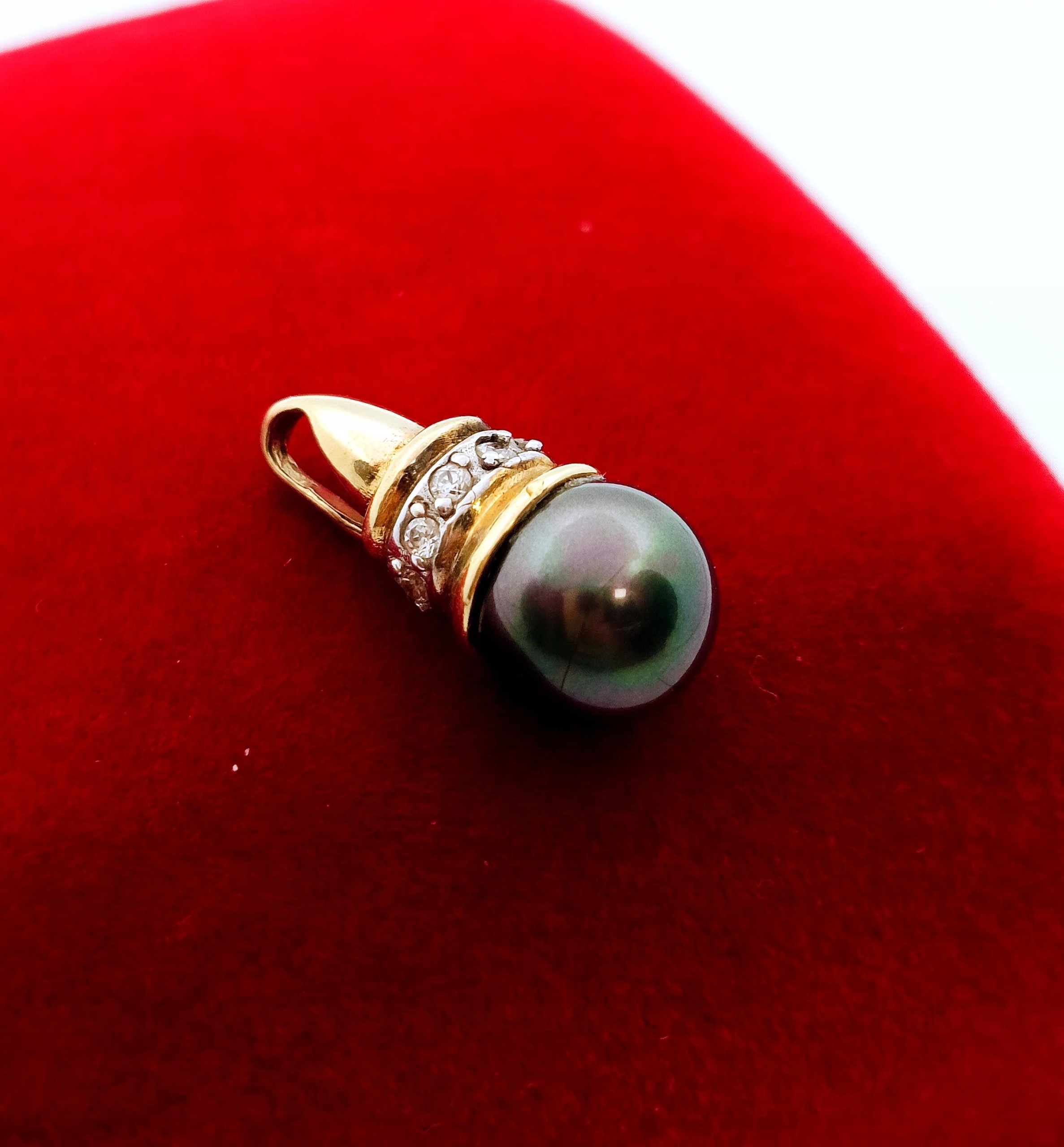 Złota zawieszka z czarną Perłą Tahitian PR.585 W:1,47gr