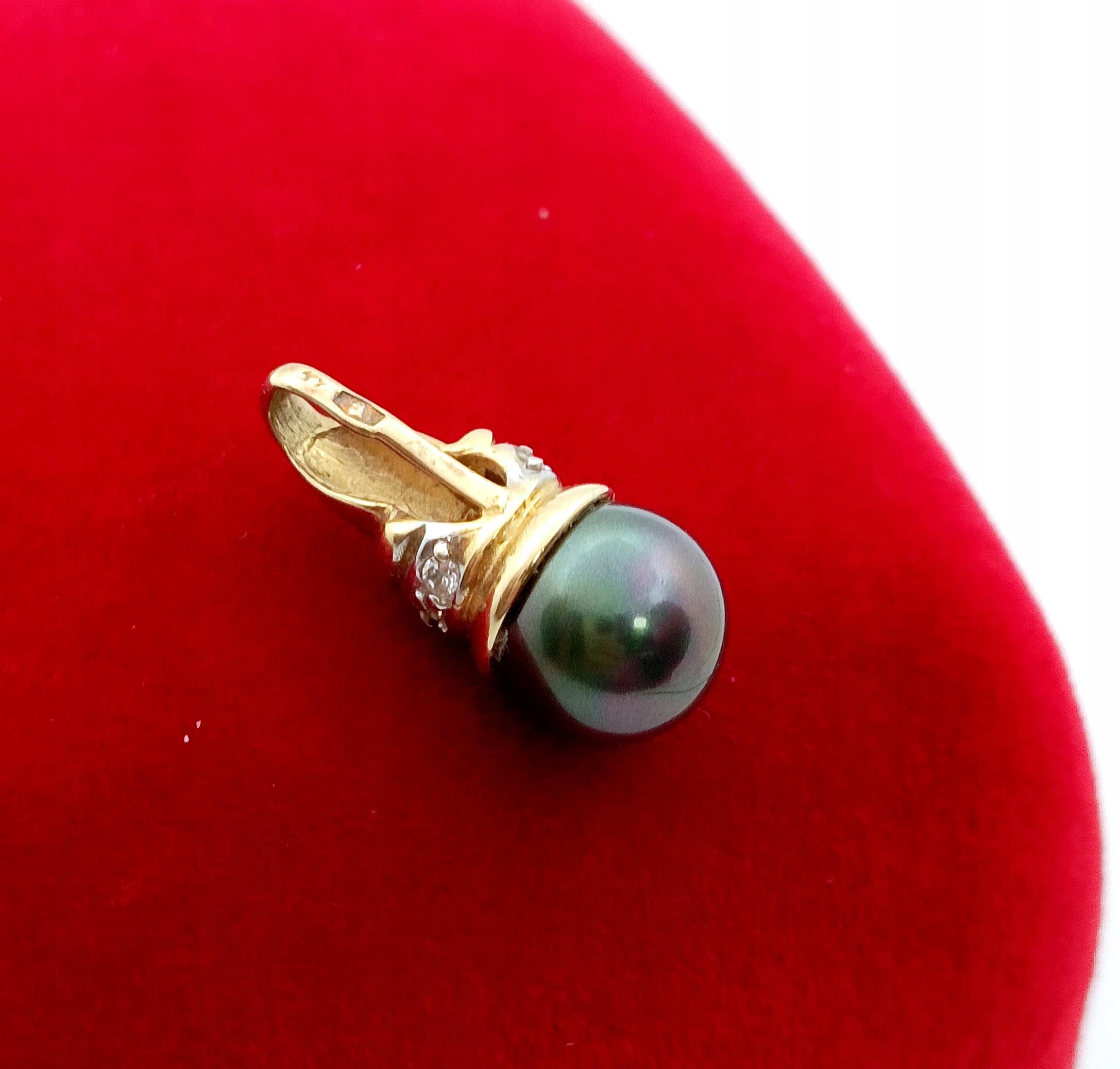 W ofercie na sprzedaż mamy dla państwa złotą zawieszkę ozdobioną czarną perłą Tahitian. Perła hodowana wyłącznie w lagunie Polinezji Francuskiej.