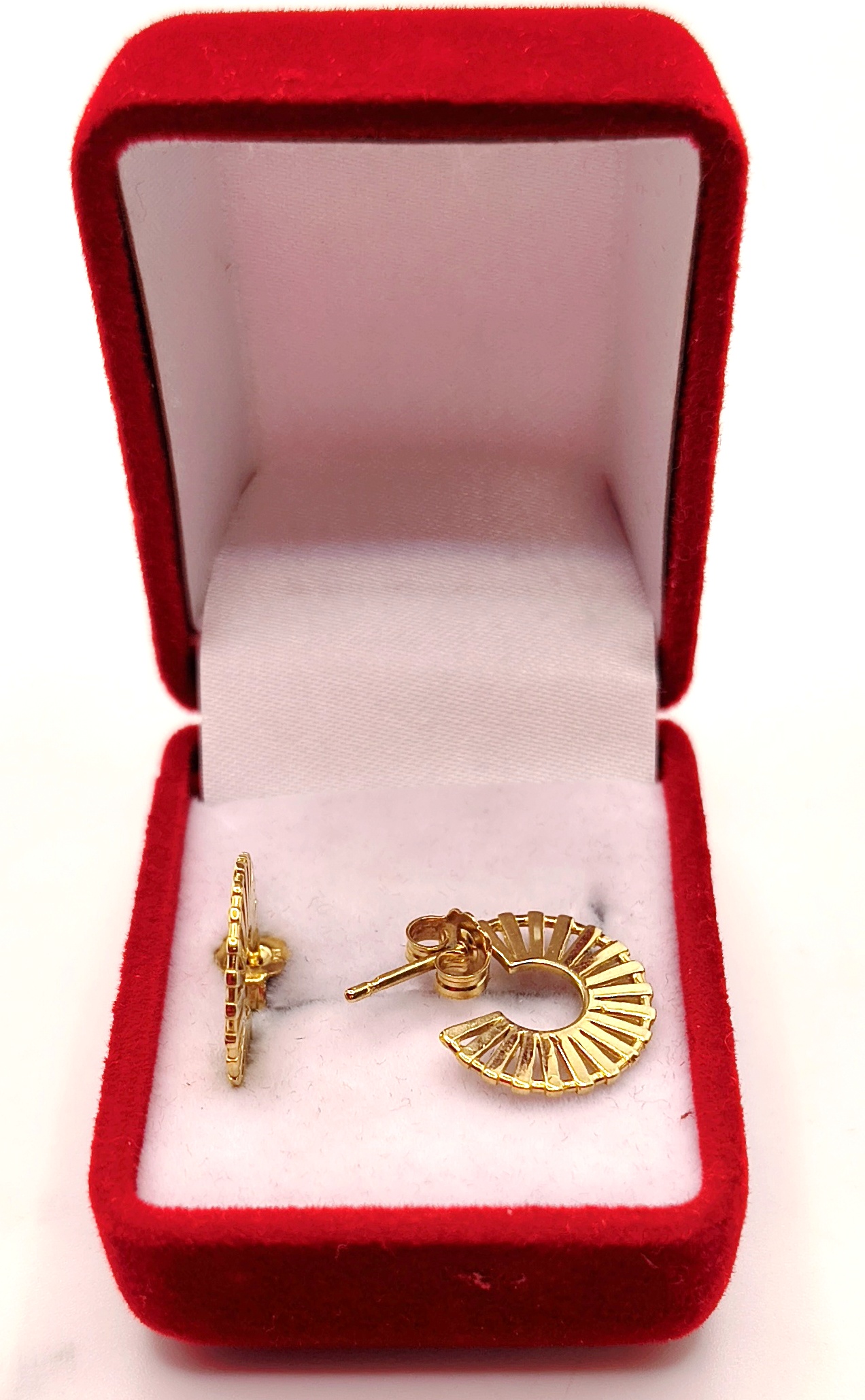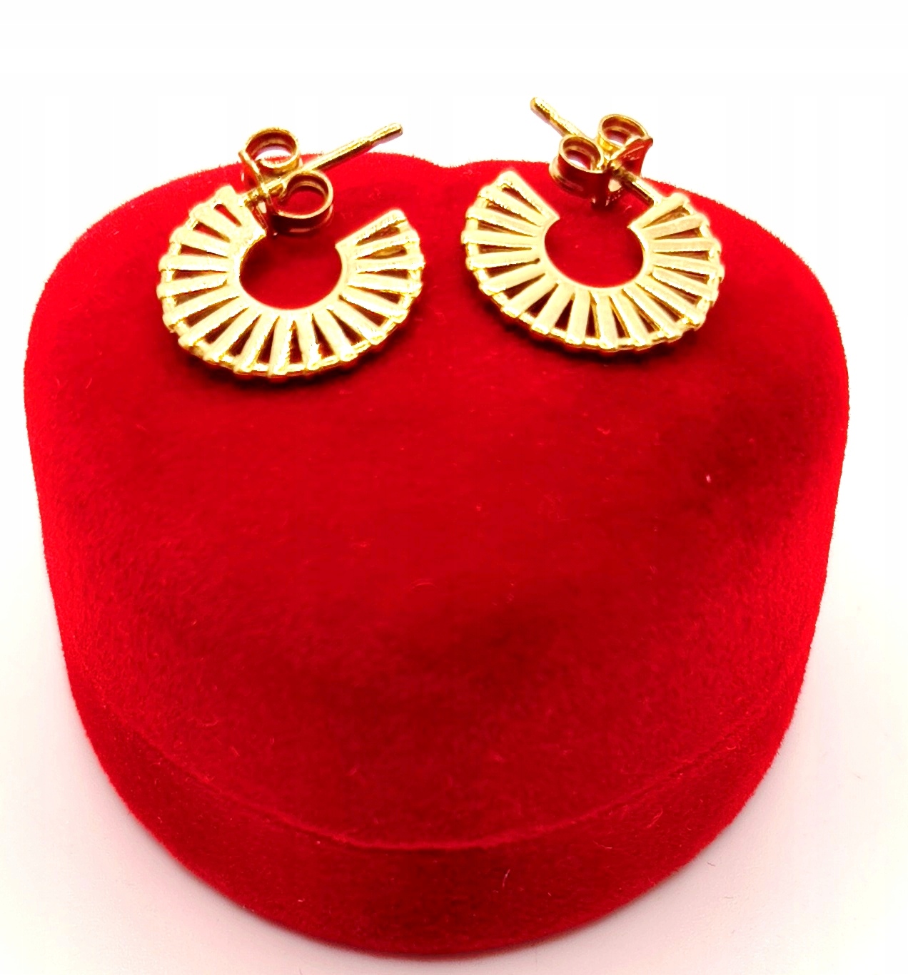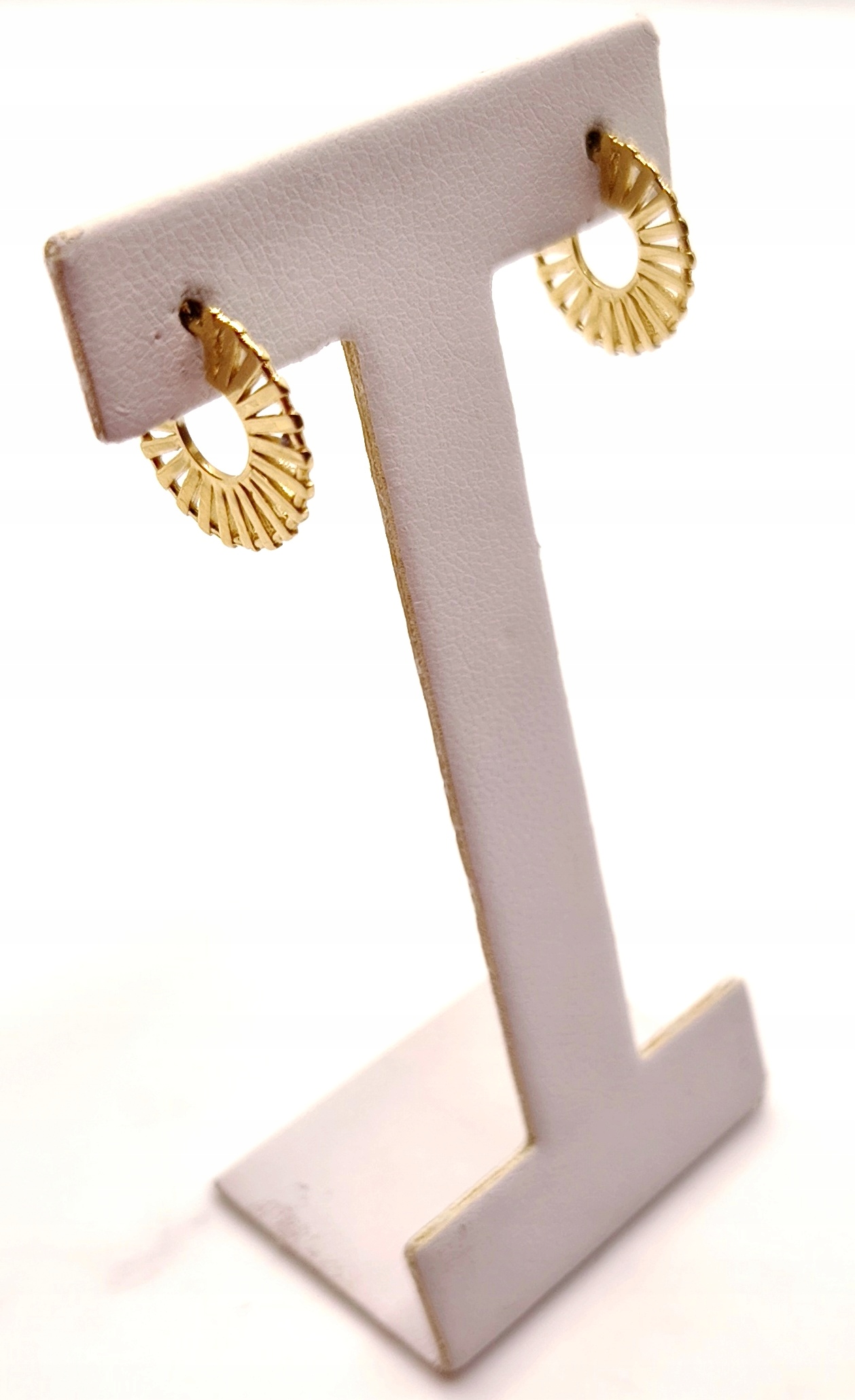 W ofercie na sprzedaż mamy dla państwa złote, ażurowe kolczyki w kształcie kółek.