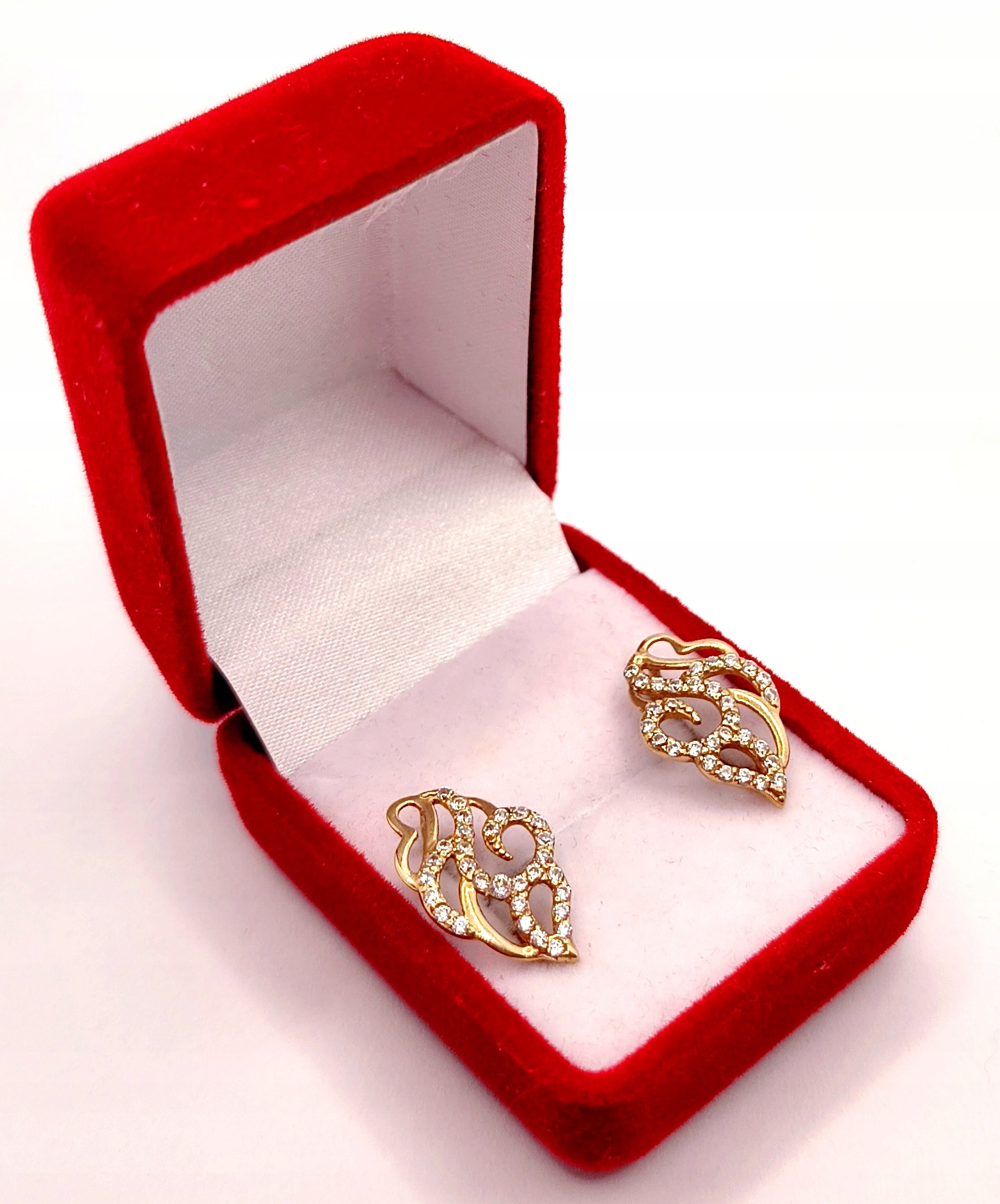 W ofercie na sprzedaż mamy dla Państwa złote, ażurowe kolczyki ozdobione cyrkoniami.
