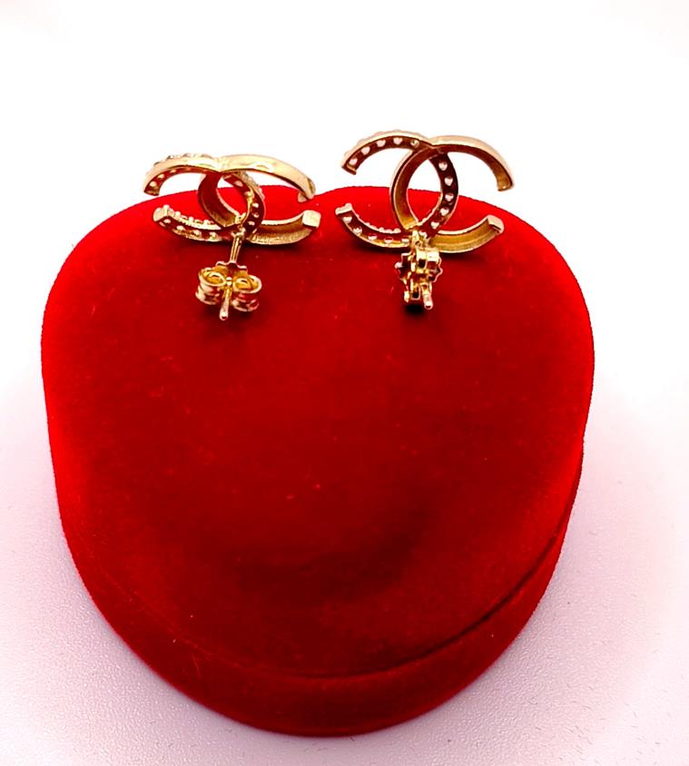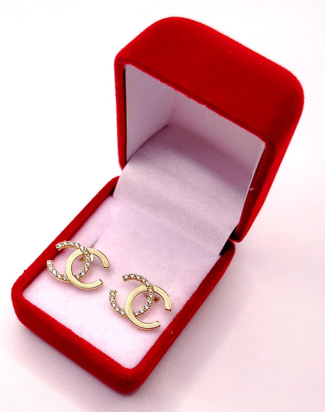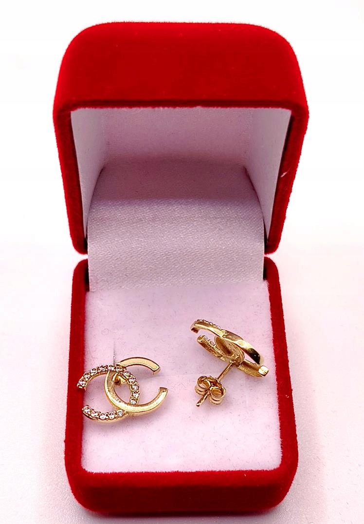 W ofercie sprzedaży posiadamy piękne, złote kolczyki CC ozdobione cyrkoniami.