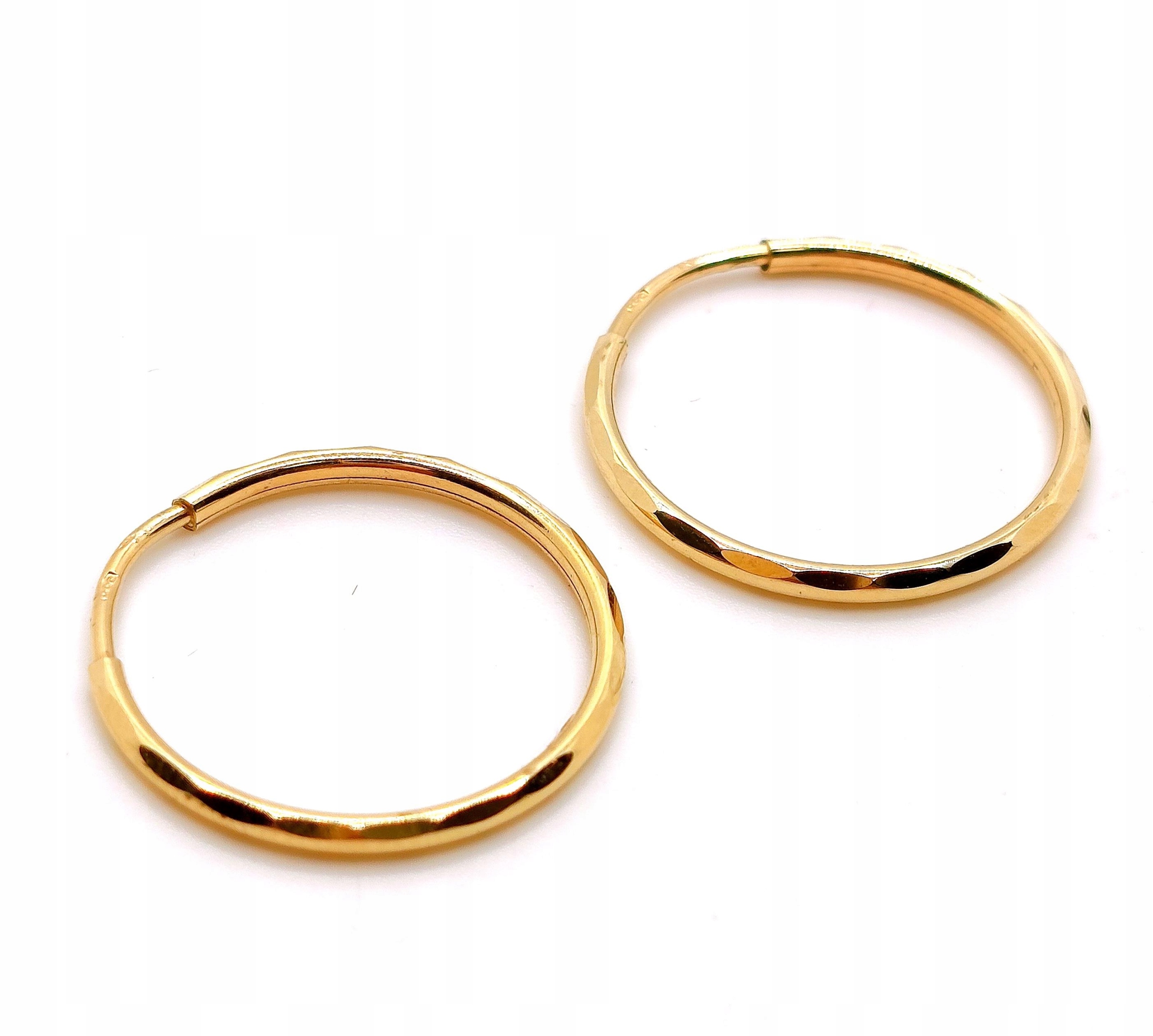 W ofercie na sprzedaż mamy dla Państwa złote kolczyki w kształcie kółek ozdobionych lekko kanciastym wykończeniem, odbijającym światło.