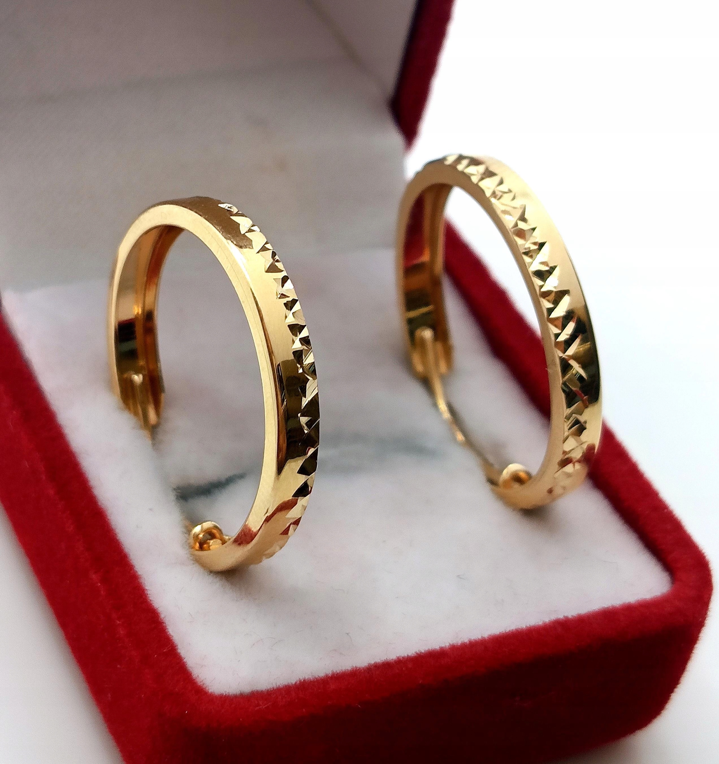 Złote kolczyki Koła zdobione PR.585 W:2,38gr średnica: 2cm