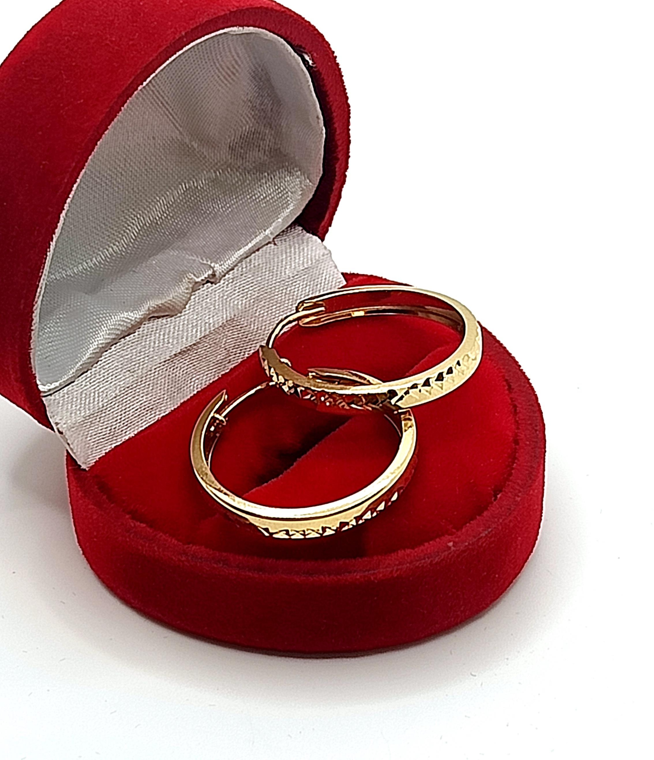 W ofercie na sprzedaż mamy dla Państwa , złote kolczyki w kształcie zdobionych kółek.