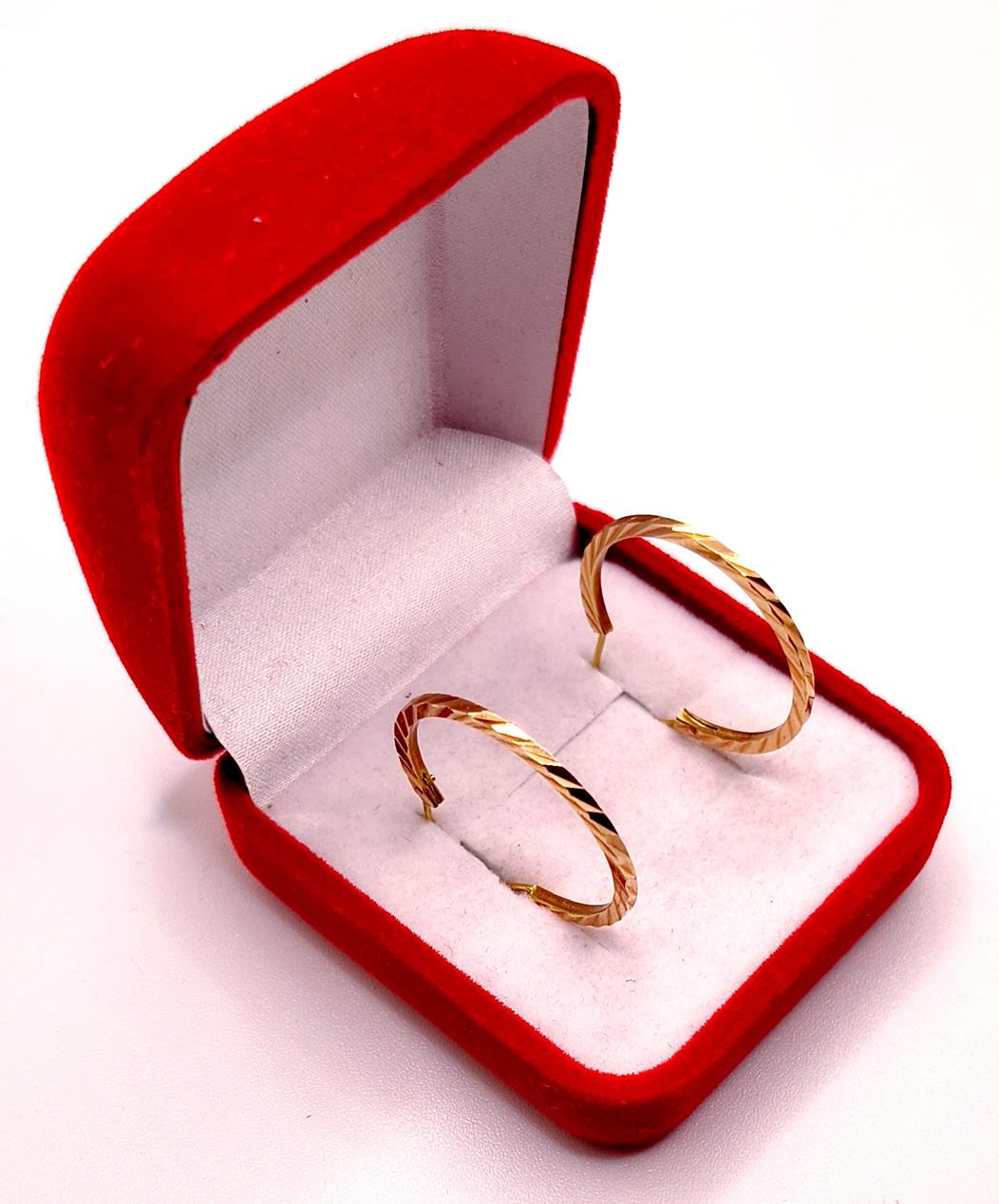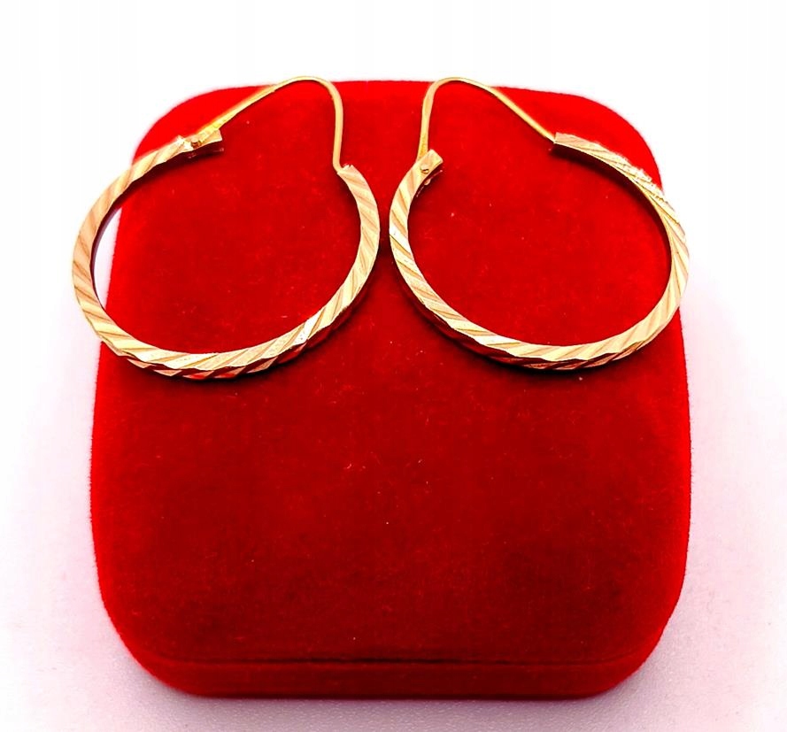 W ofercie sprzedaży posiadamy złote, zdobione kolczyki w kształcie kółek.