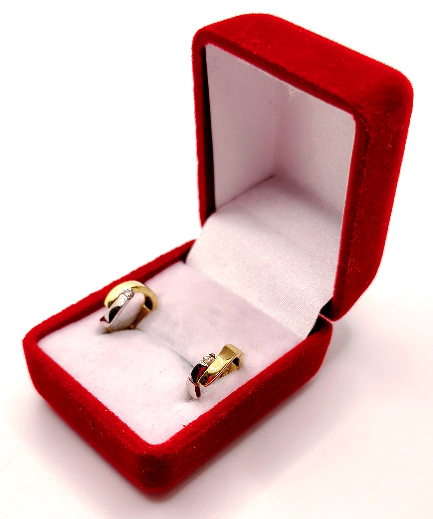 Wykonane z żółtego i białego złota próby 585.
