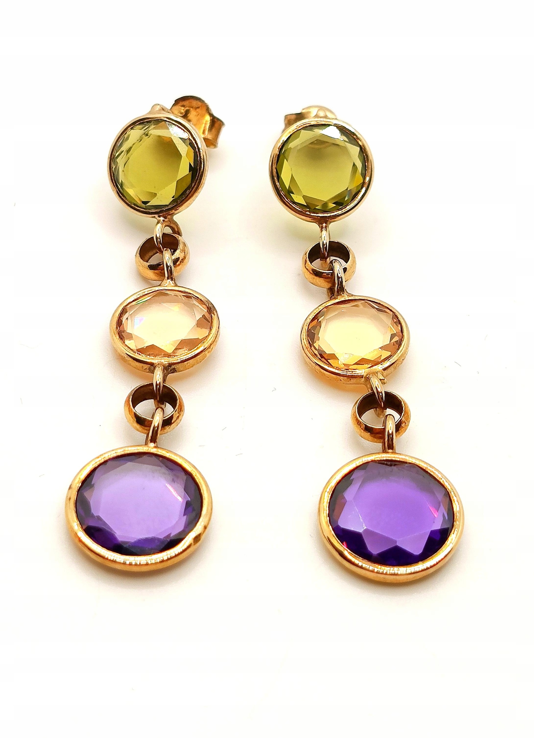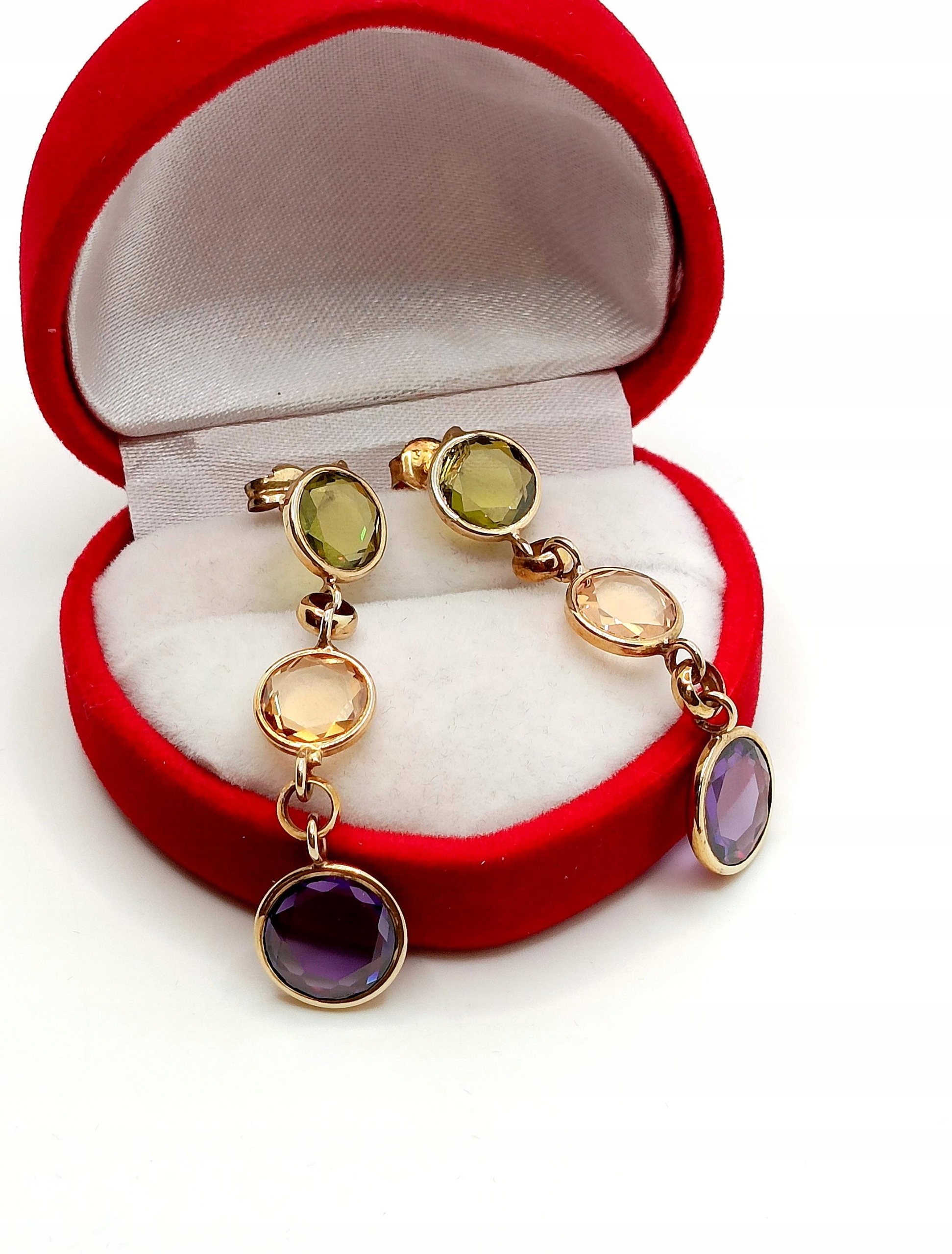Złote kolczyki długie z kamieniami sztyft Pr.375 W:5,46gr W.KRUK