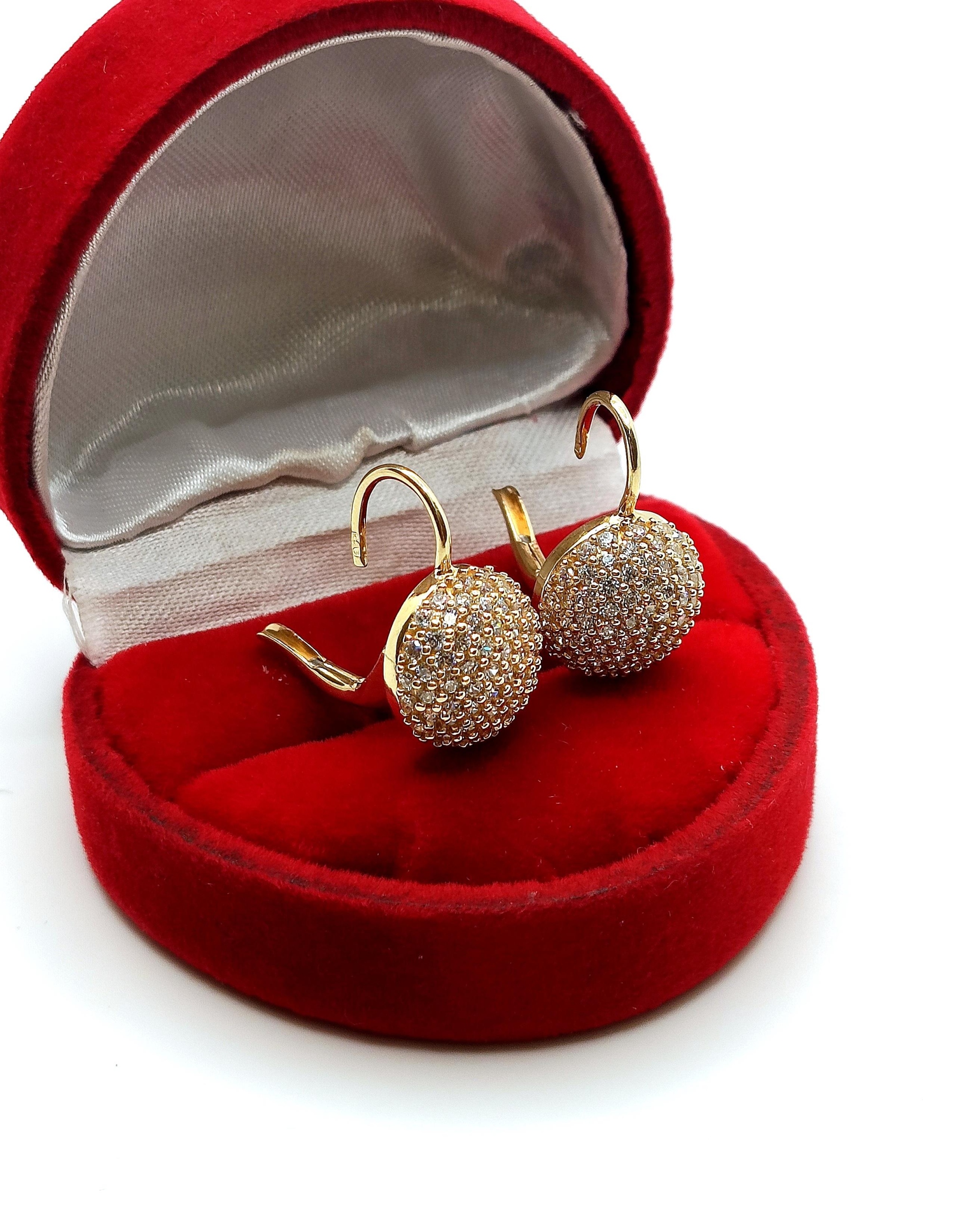 W ofercie na sprzedaż mamy dla Państwa eleganckie, złote kolczyki kopułki wysadzane cyrkoniami.