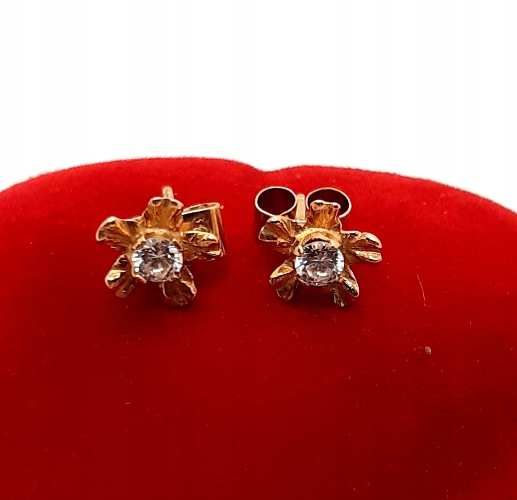 Złote kolczyki Kwiatki z cyrkoniami sztyft PR.585 W:1,02 gr