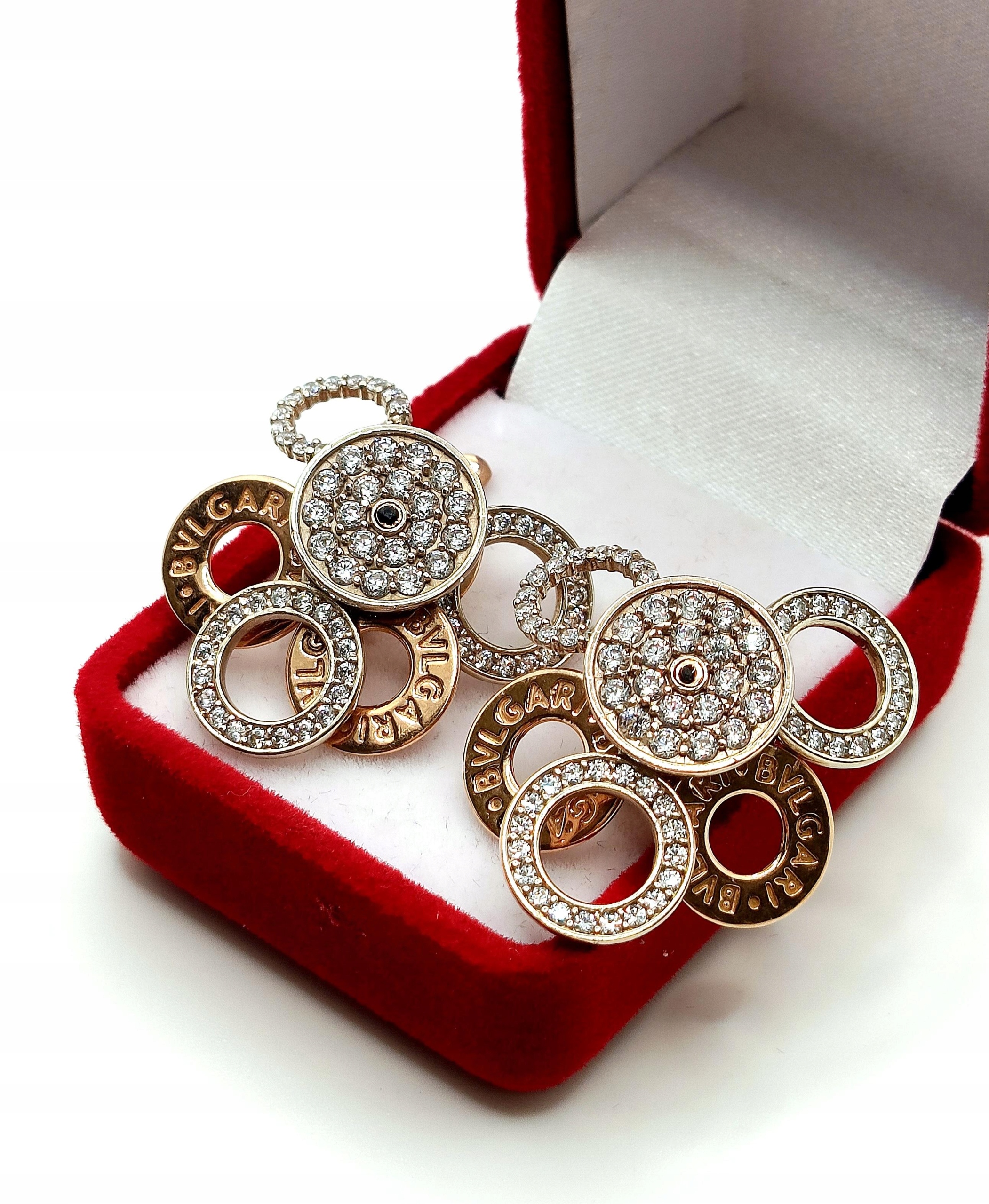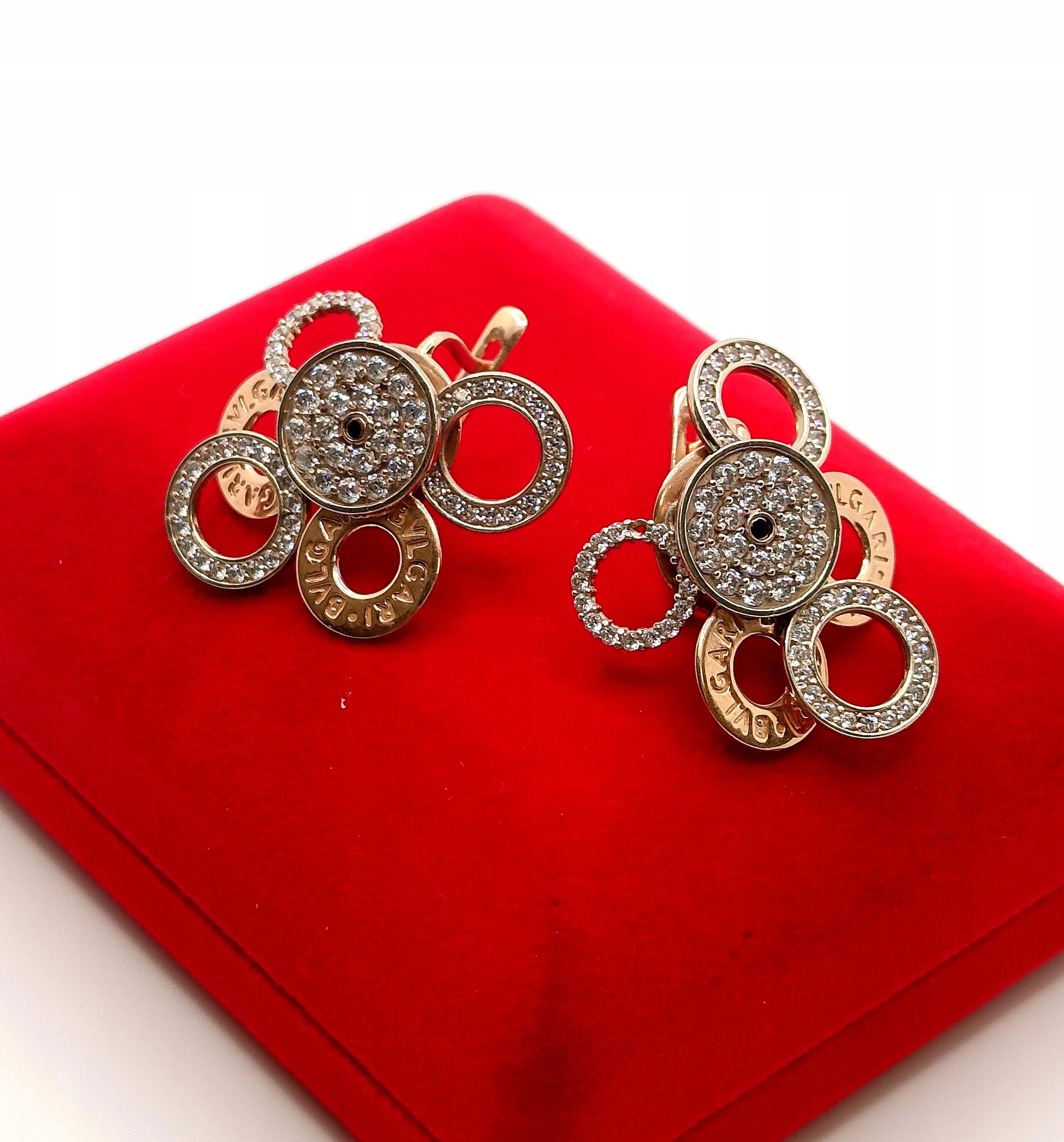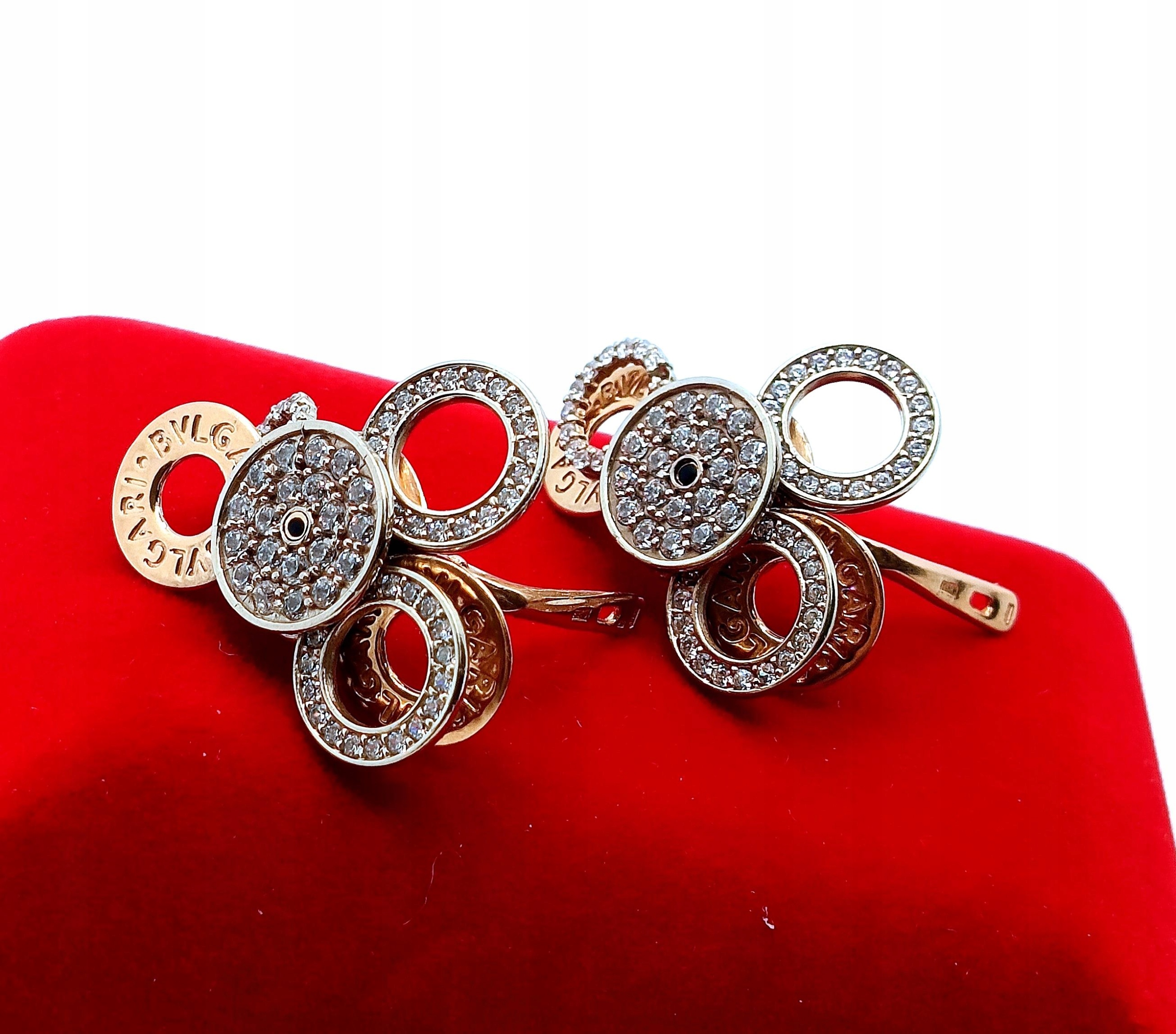 Oferujemy na sprzedaż piękne, złote kolczyki w kształcie kwiatka z ruchomymi płatkami, ozdobionymi cyrkoniami. Kolczyki robione na wzór marki Bvlgari.