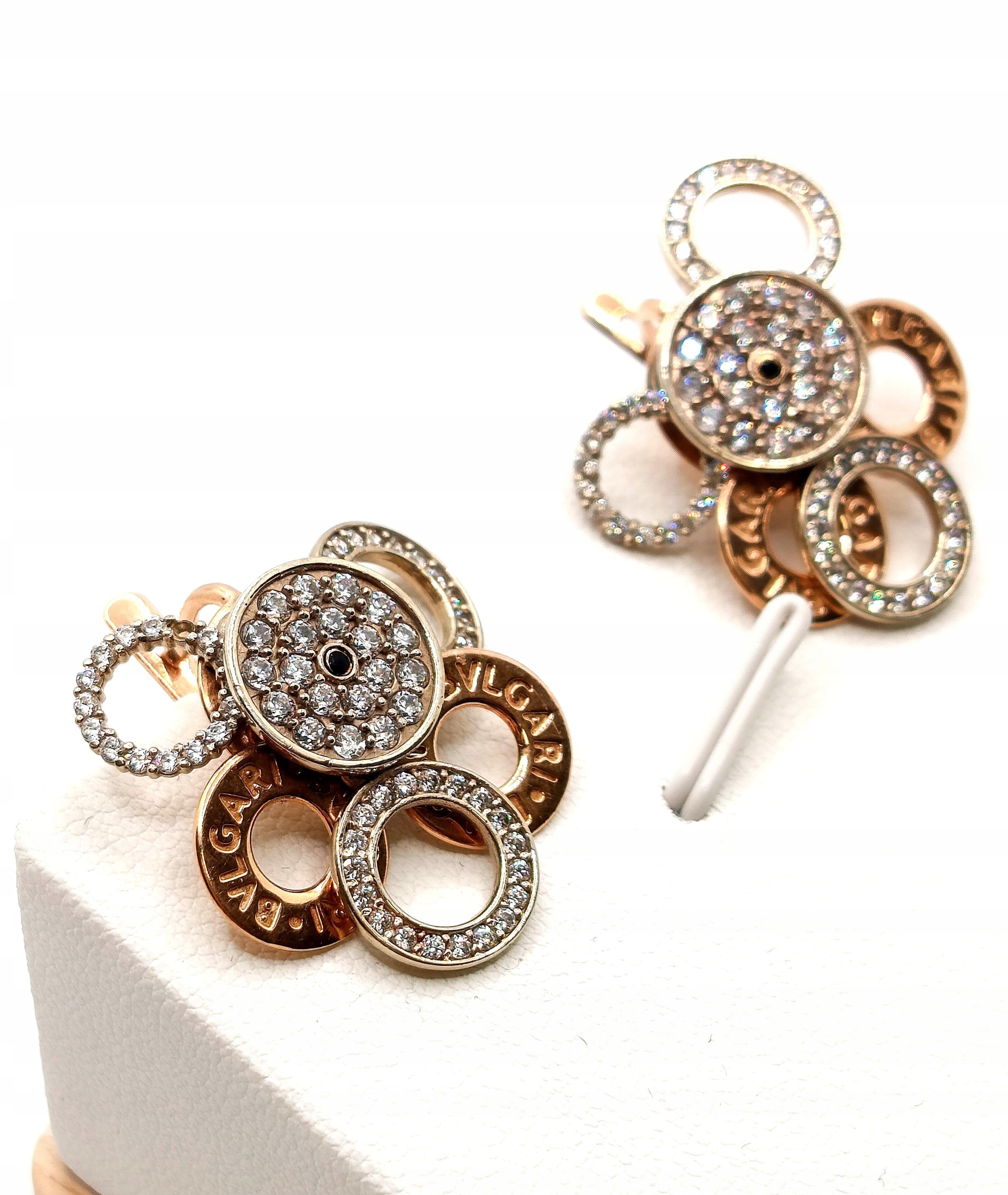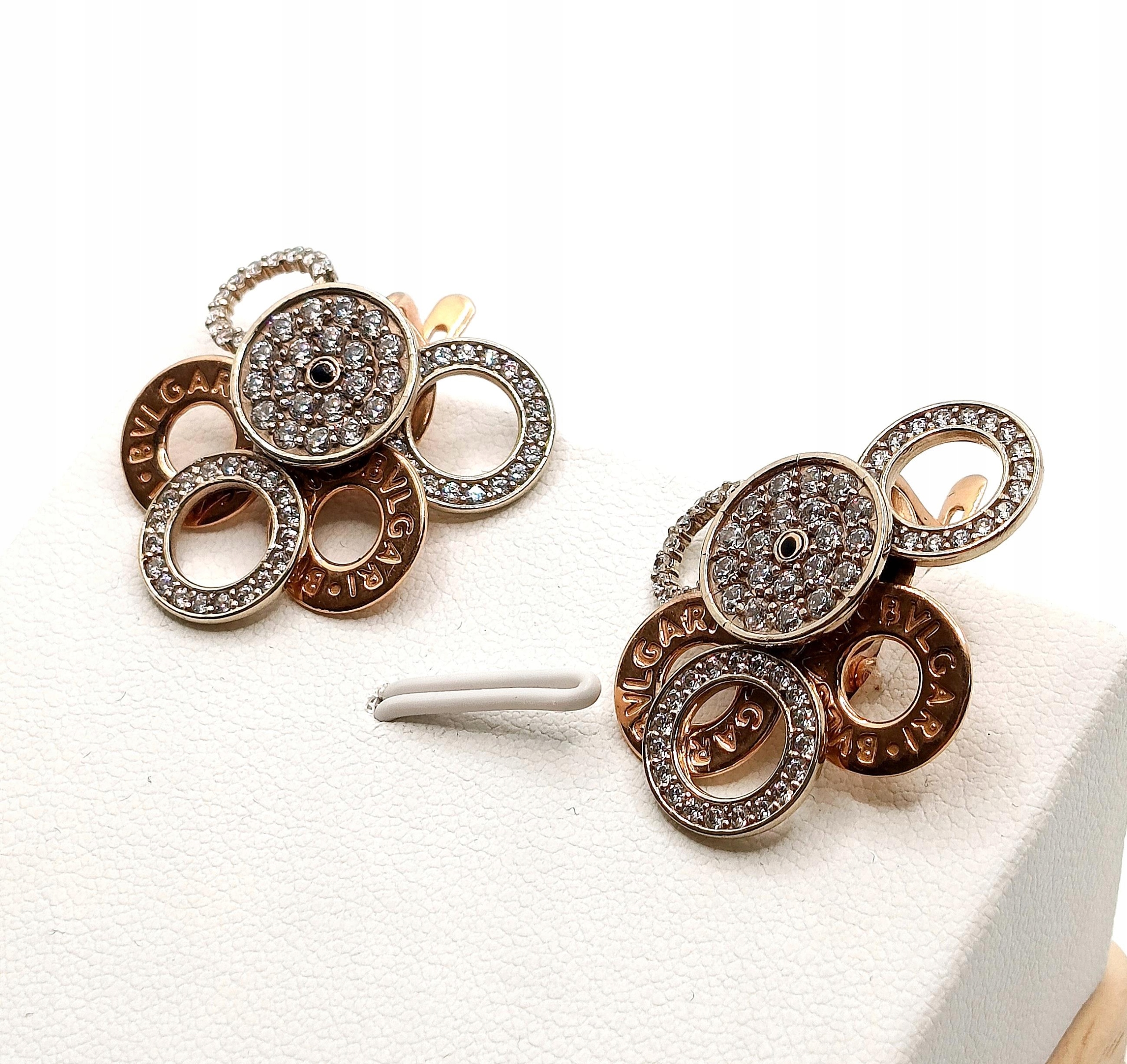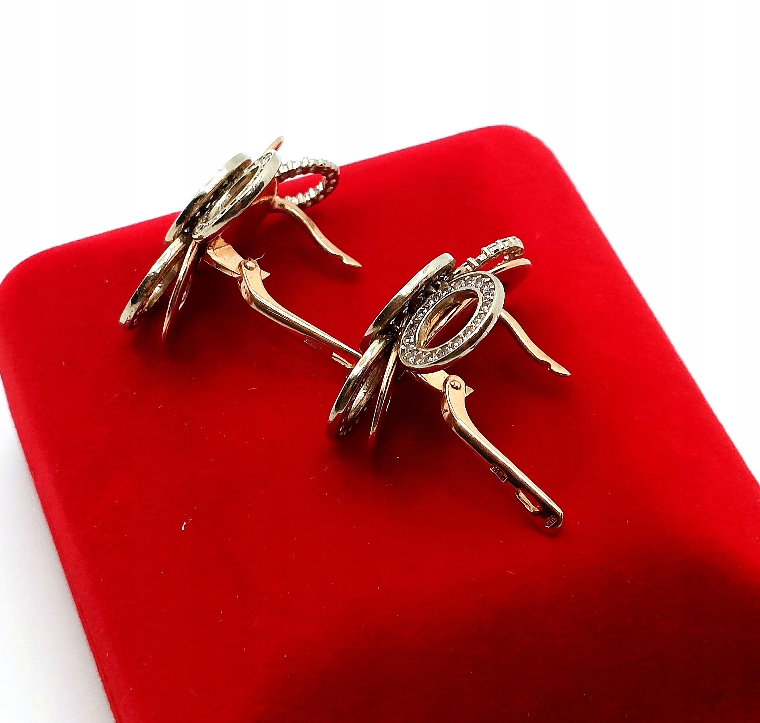 Oferujemy na sprzedaż piękne, złote kolczyki w kształcie kwiatka z ruchomymi płatkami, ozdobionymi cyrkoniami. Kolczyki robione na wzór marki Bvlgari.