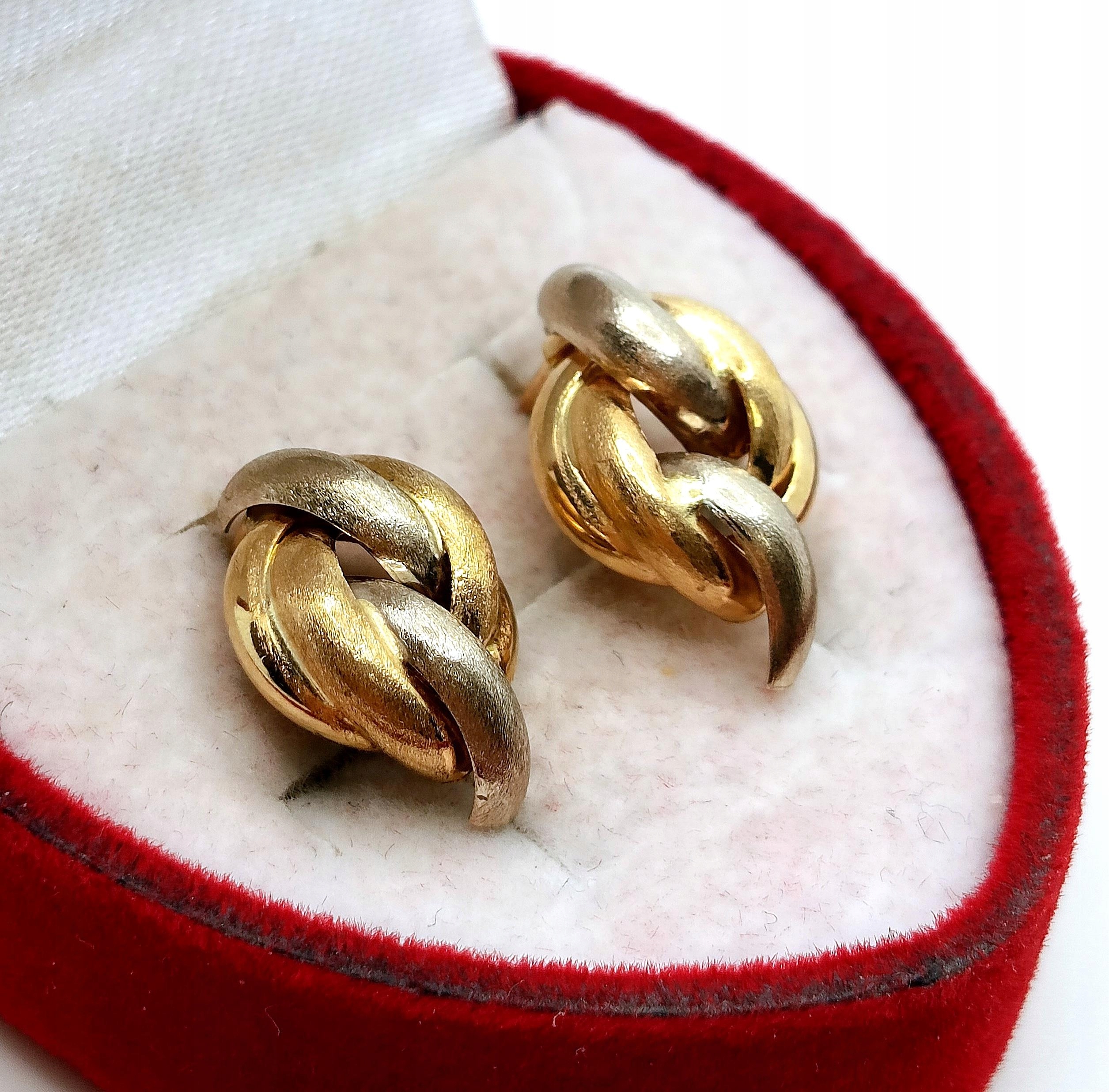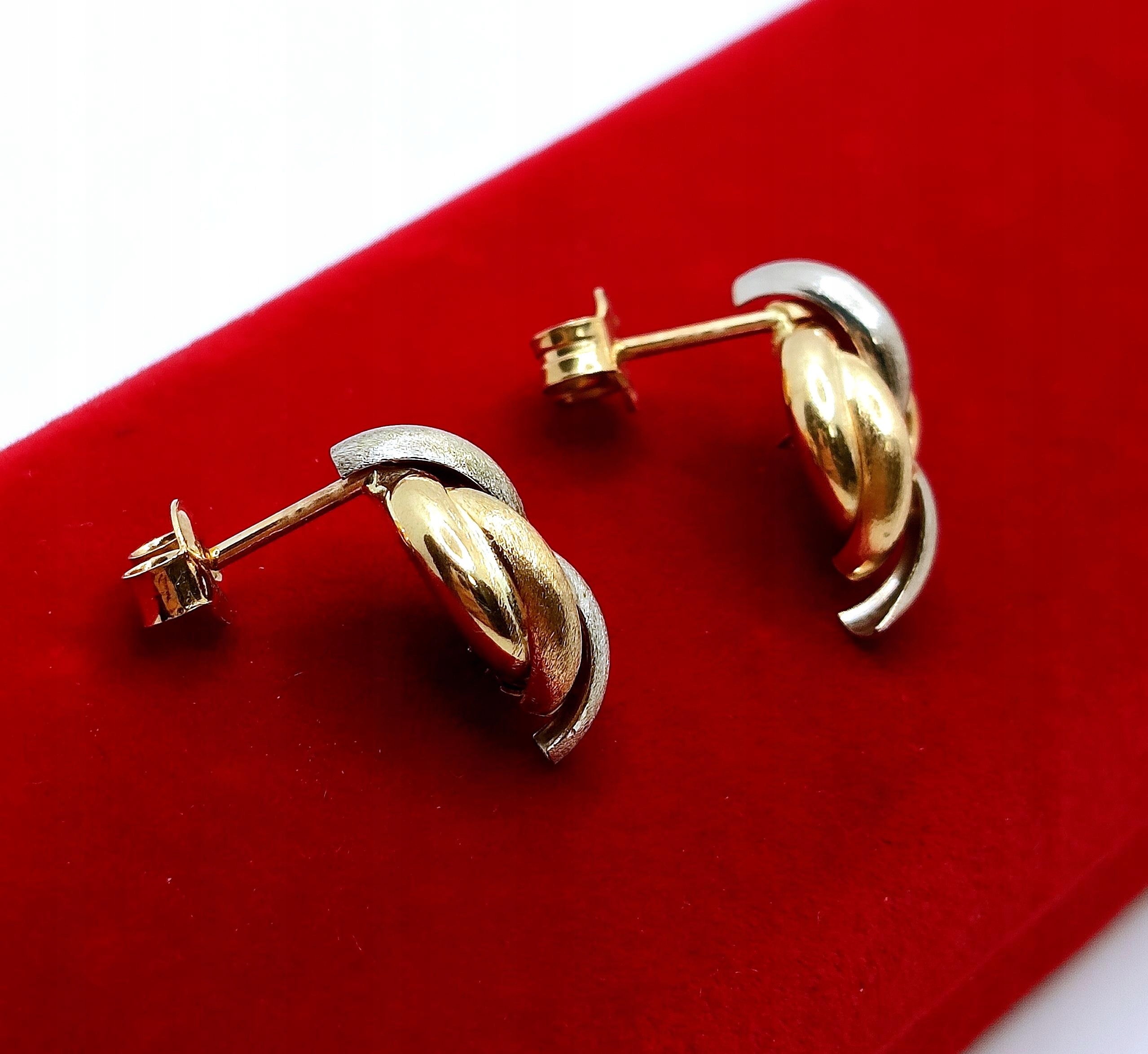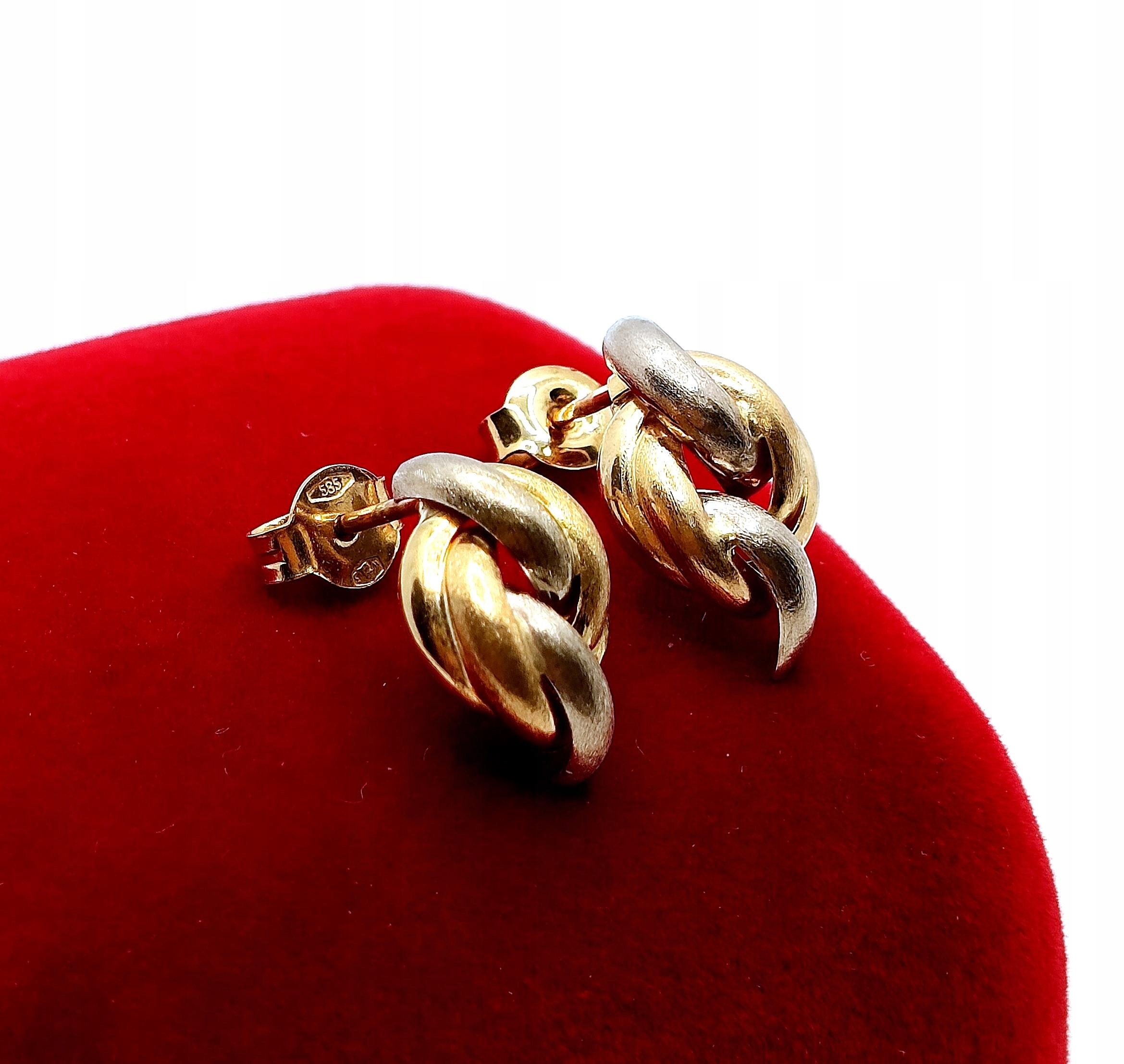 Złote kolczyki plecionki na sztyft Pr.585 W:1,70gr