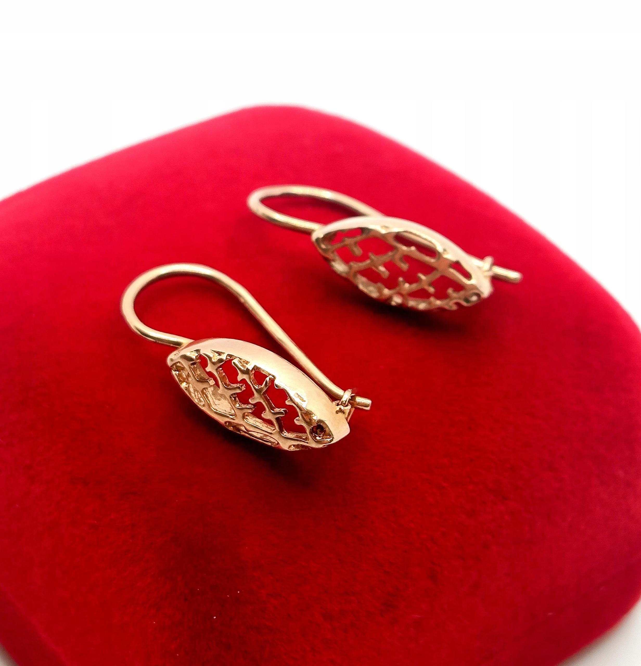 Złote kolczyki wiszące ażurowe Pr.583 W:2,12gr Dł: 2cm angielskie zapięcie