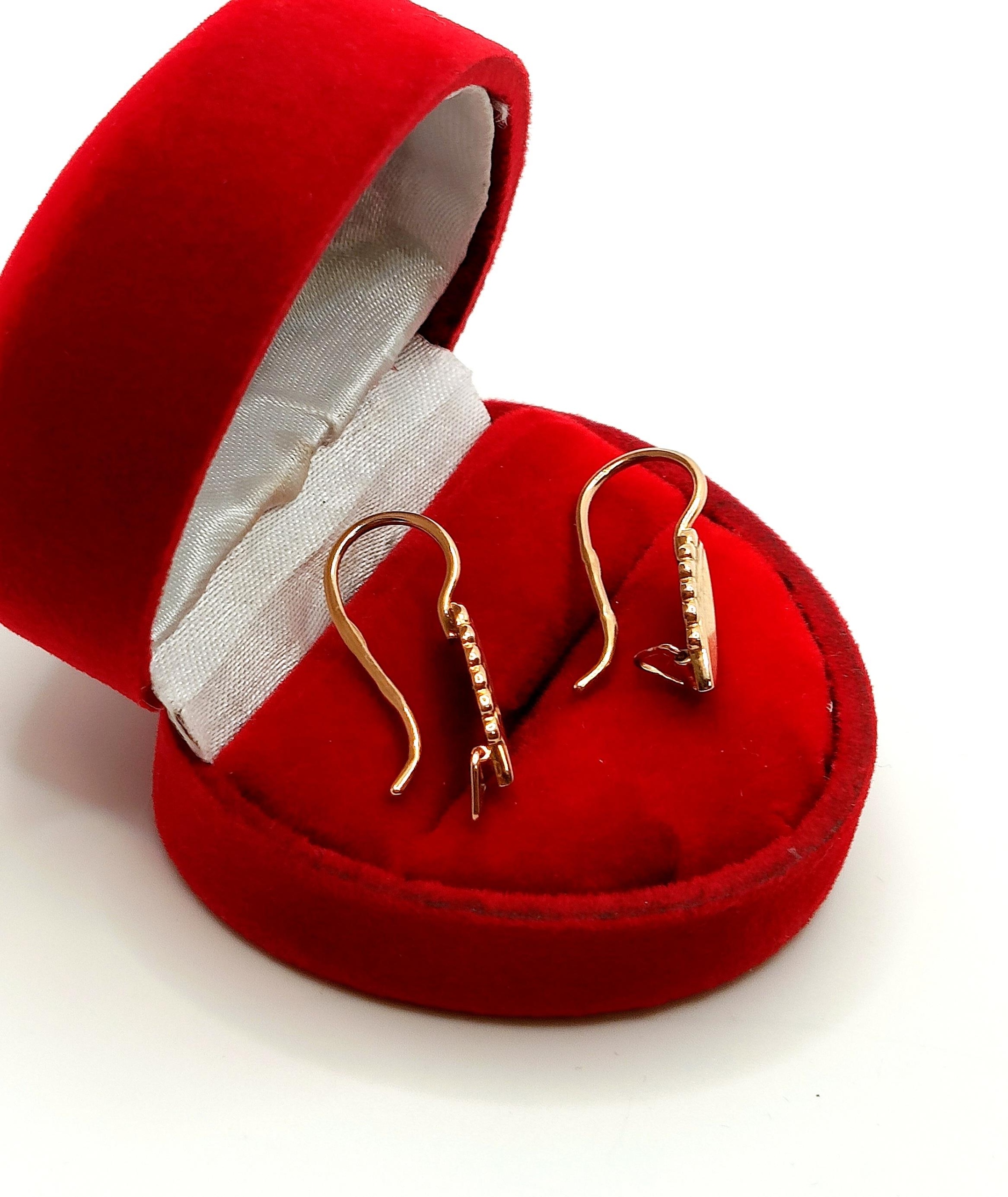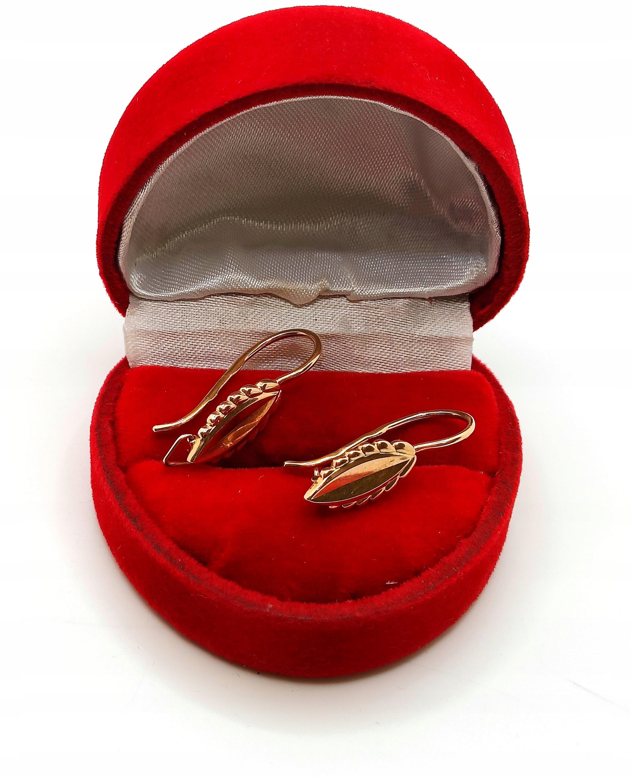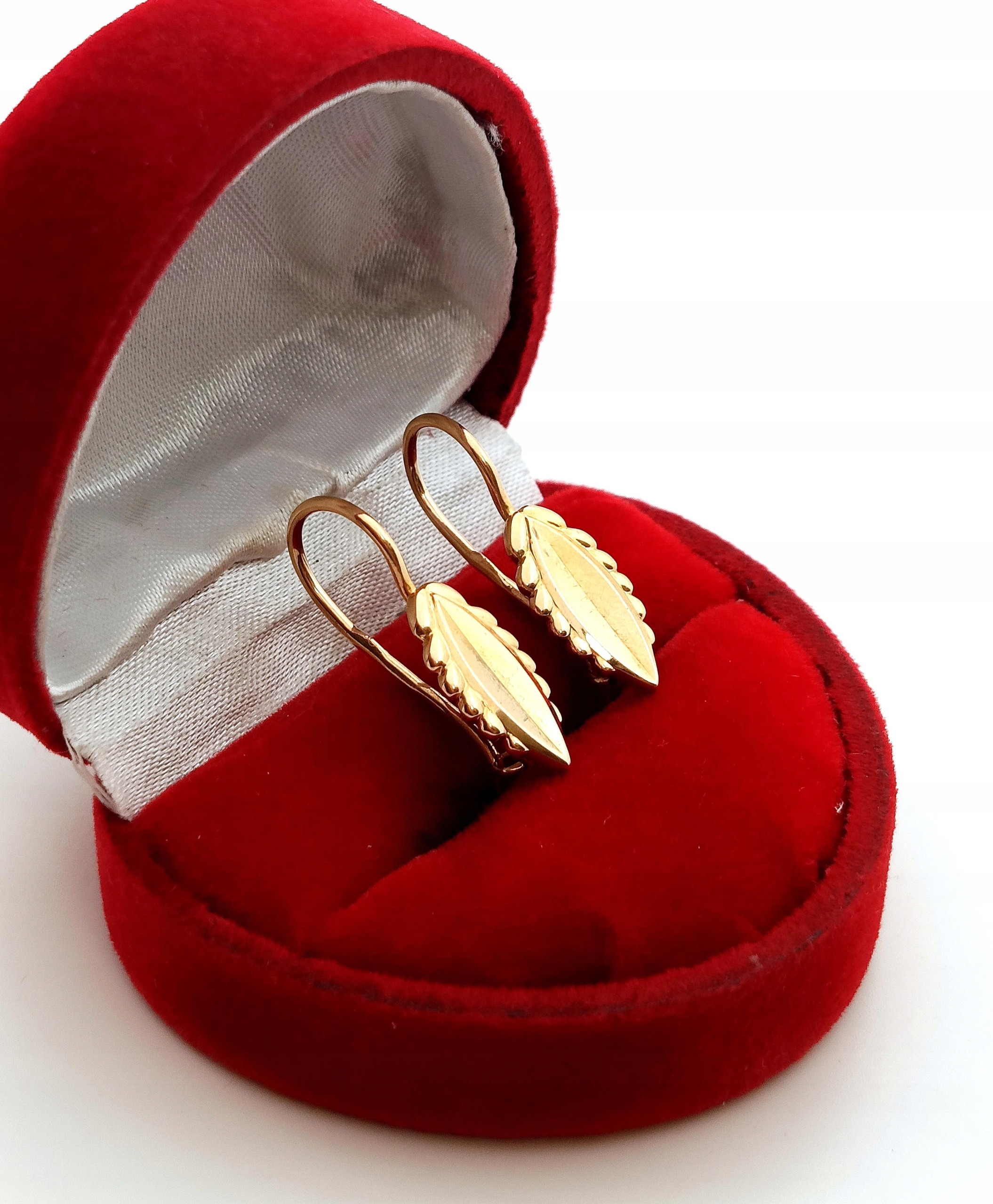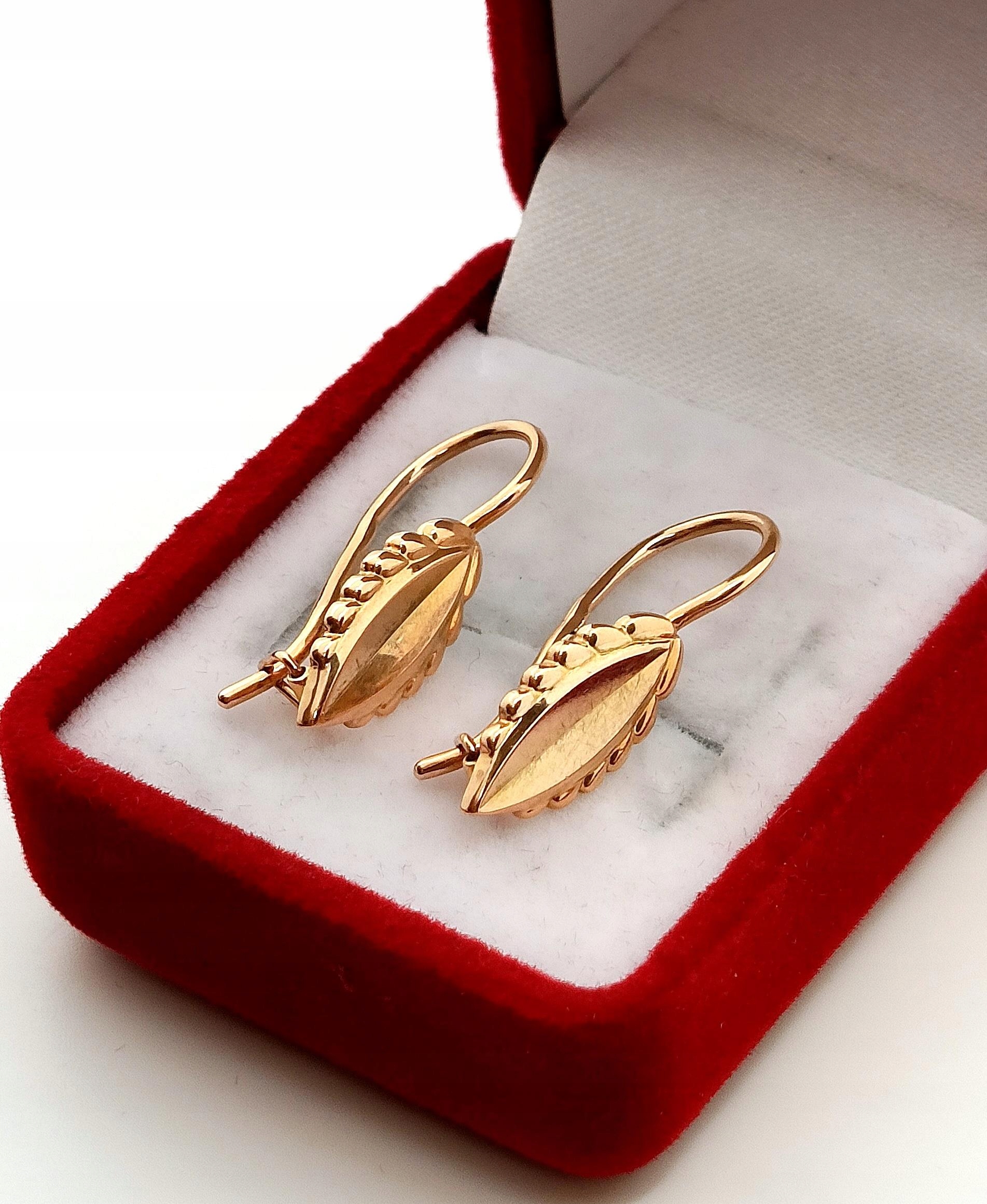 W ofercie na sprzedaż mamy dla Państwa złote kolczyki z angielskim zapięciem. Zdobienie rustykalne, przypominające liście.