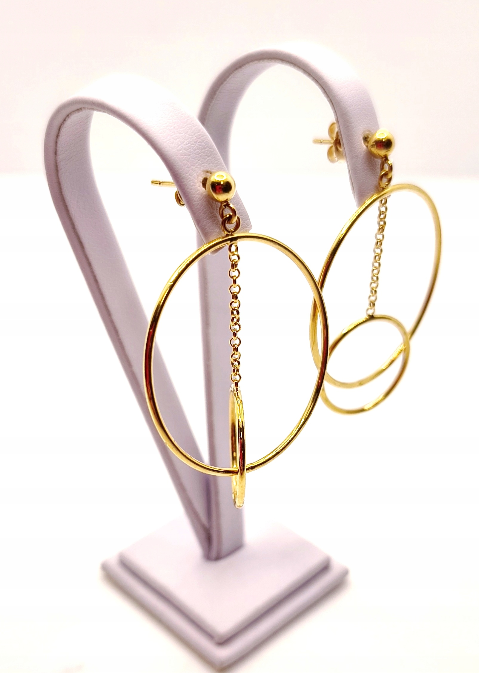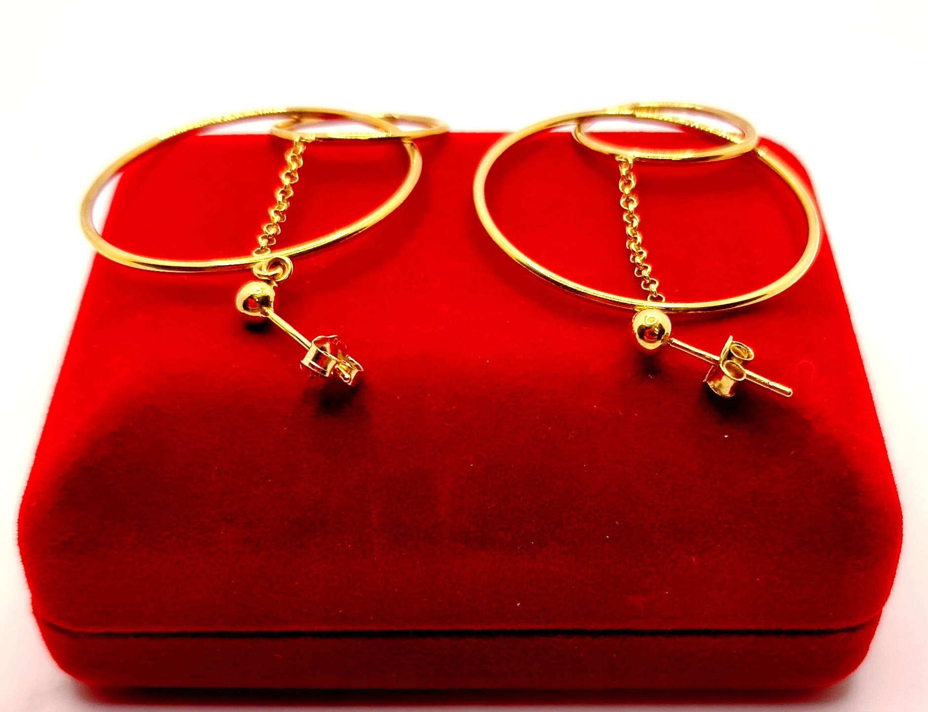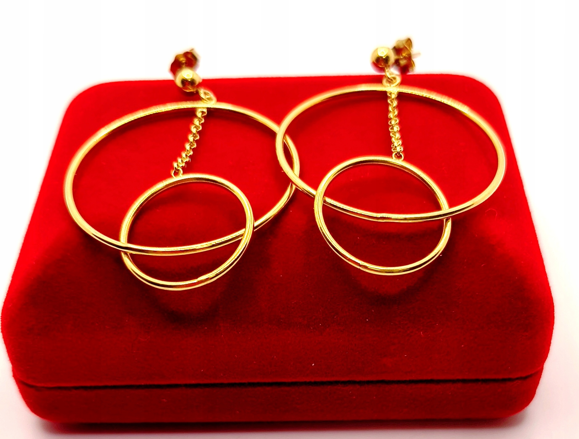 Złote kolczyki wiszące dwa kółka PR.375 W:3,01 gr