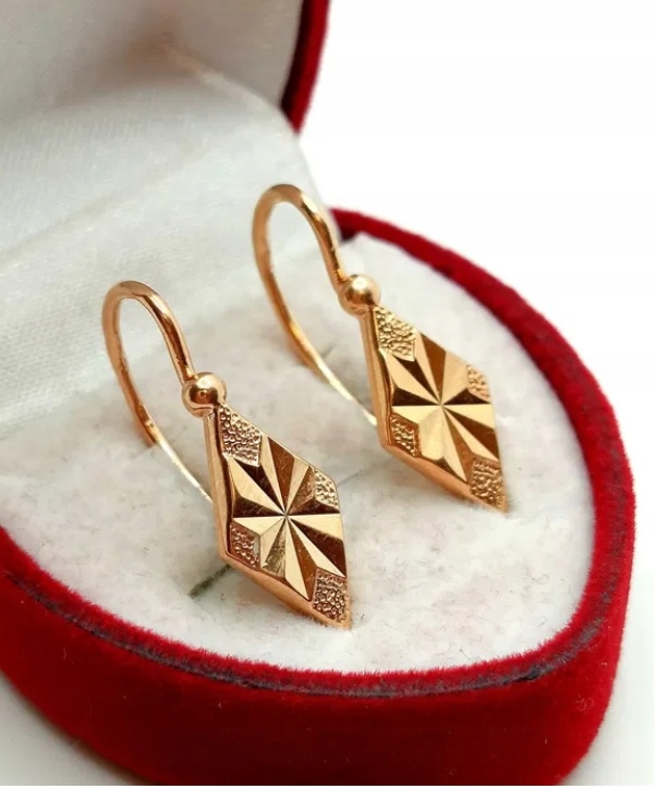W ofercie na sprzedaż mamy dla Państwa złote kolczyki - wiszące romby zdobione żłobieniami.