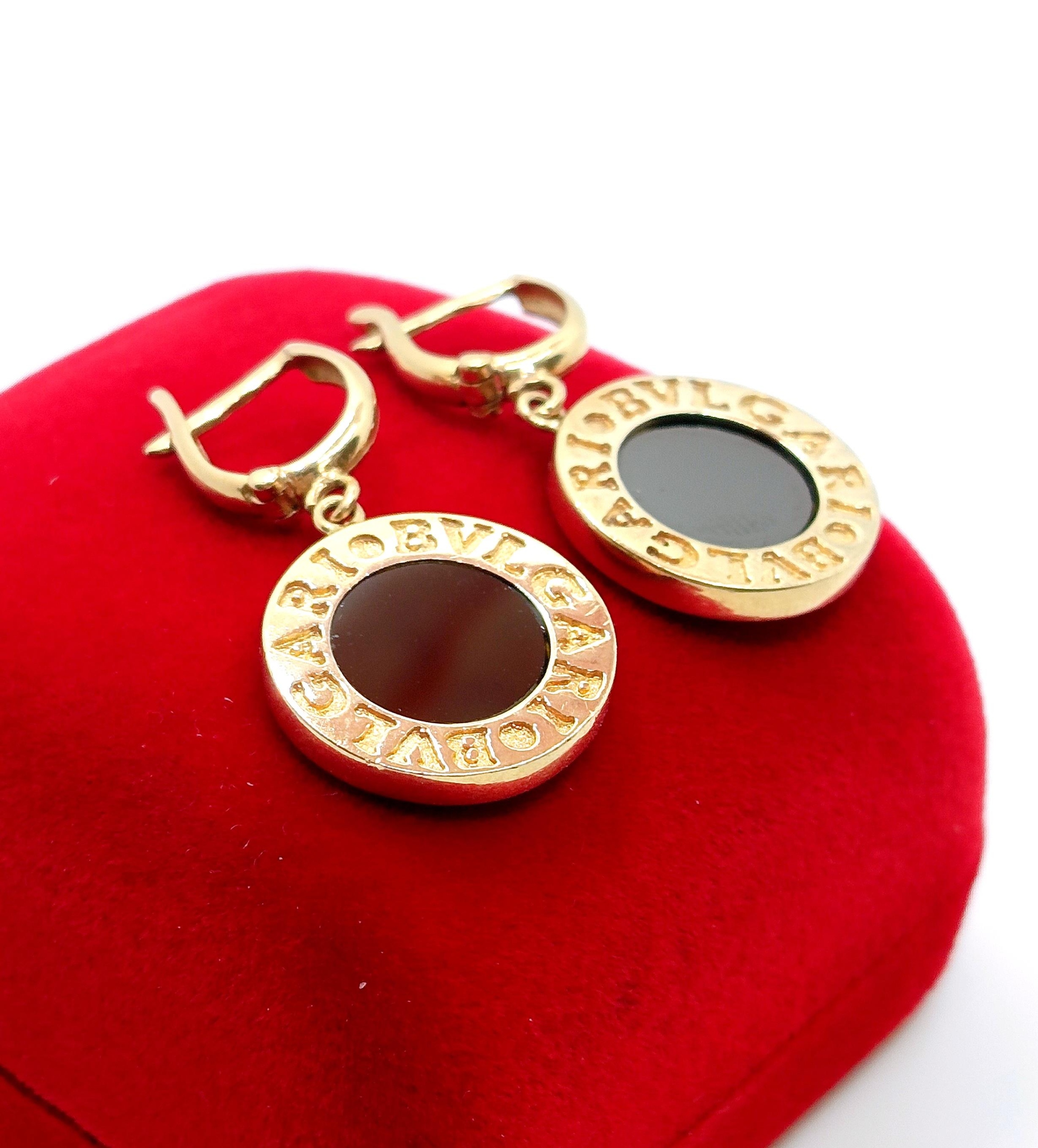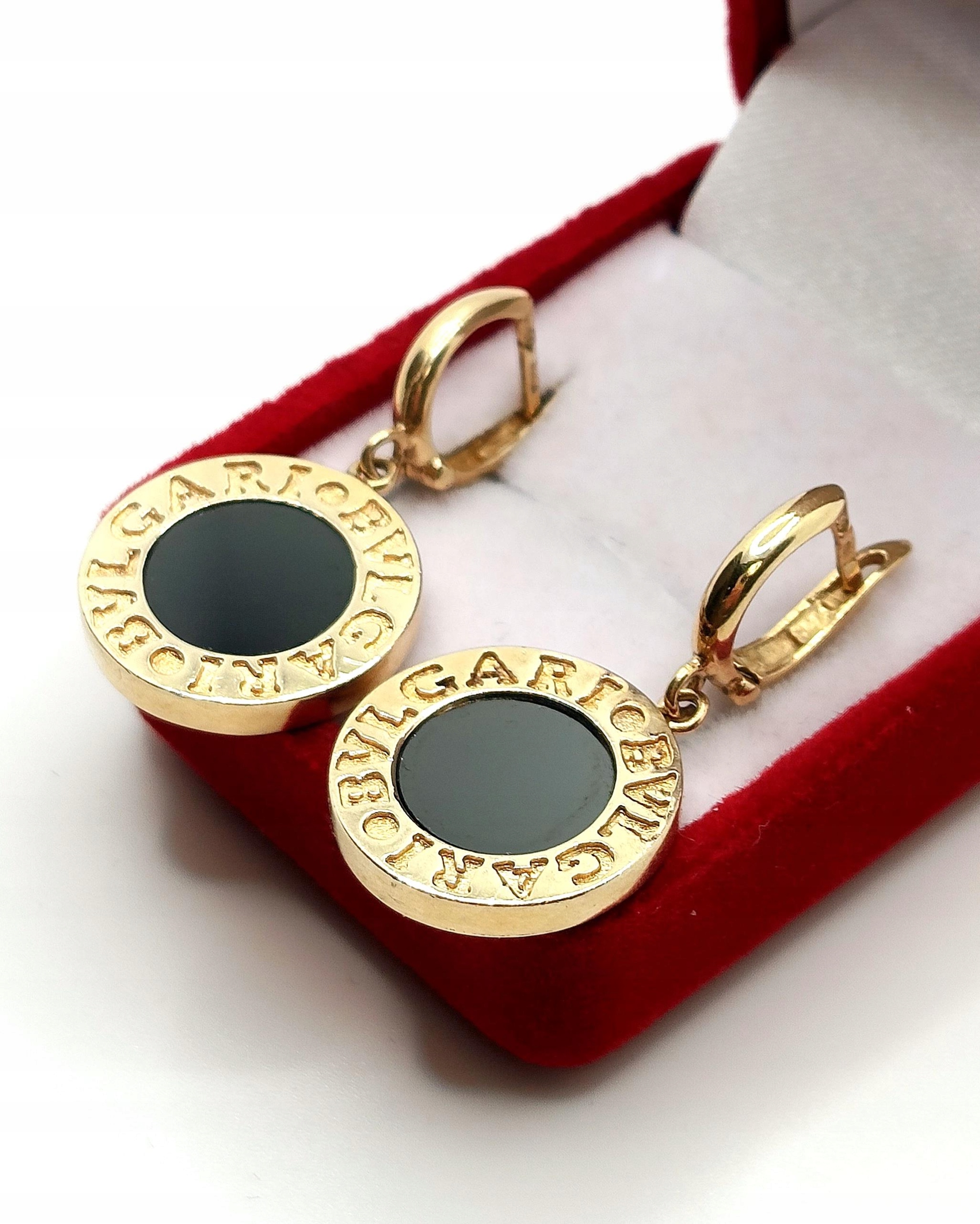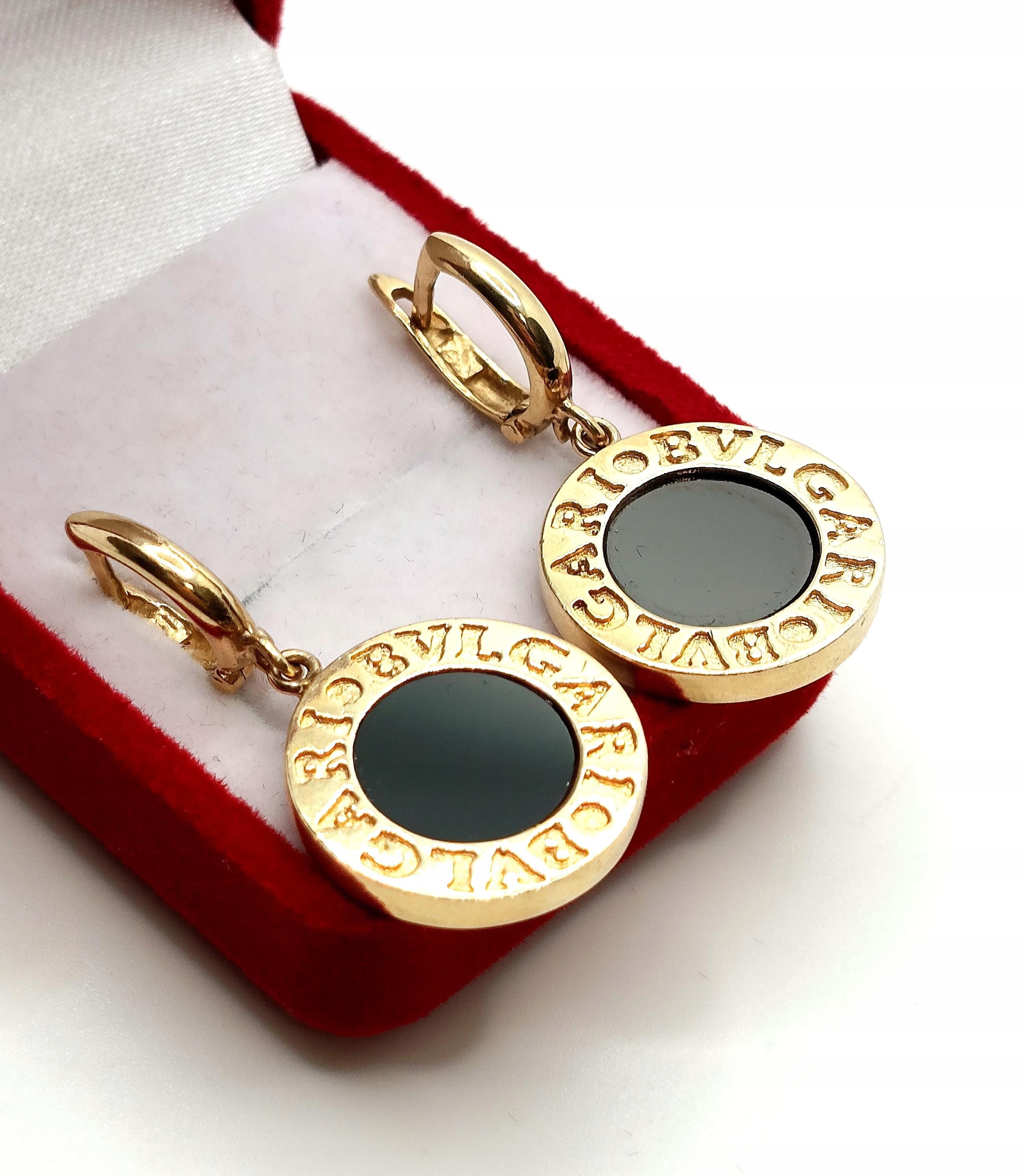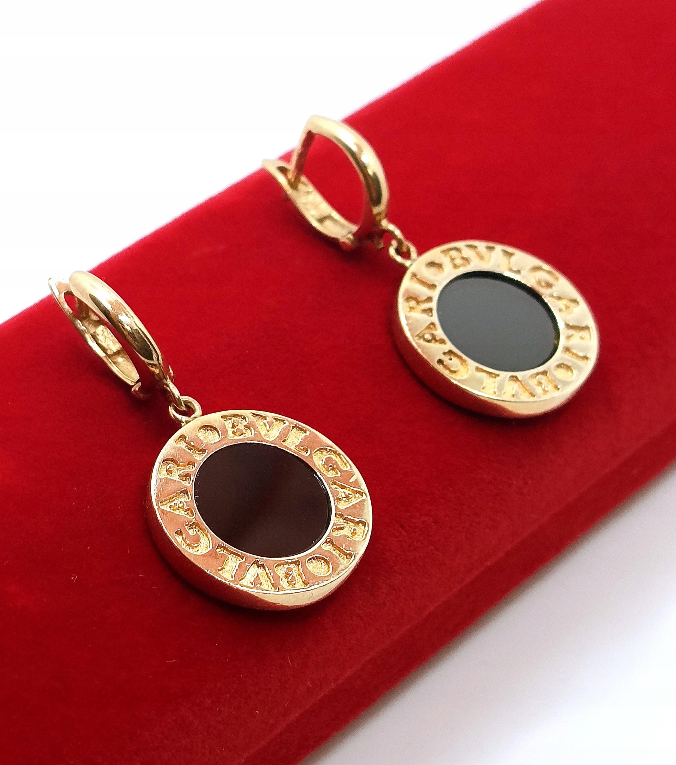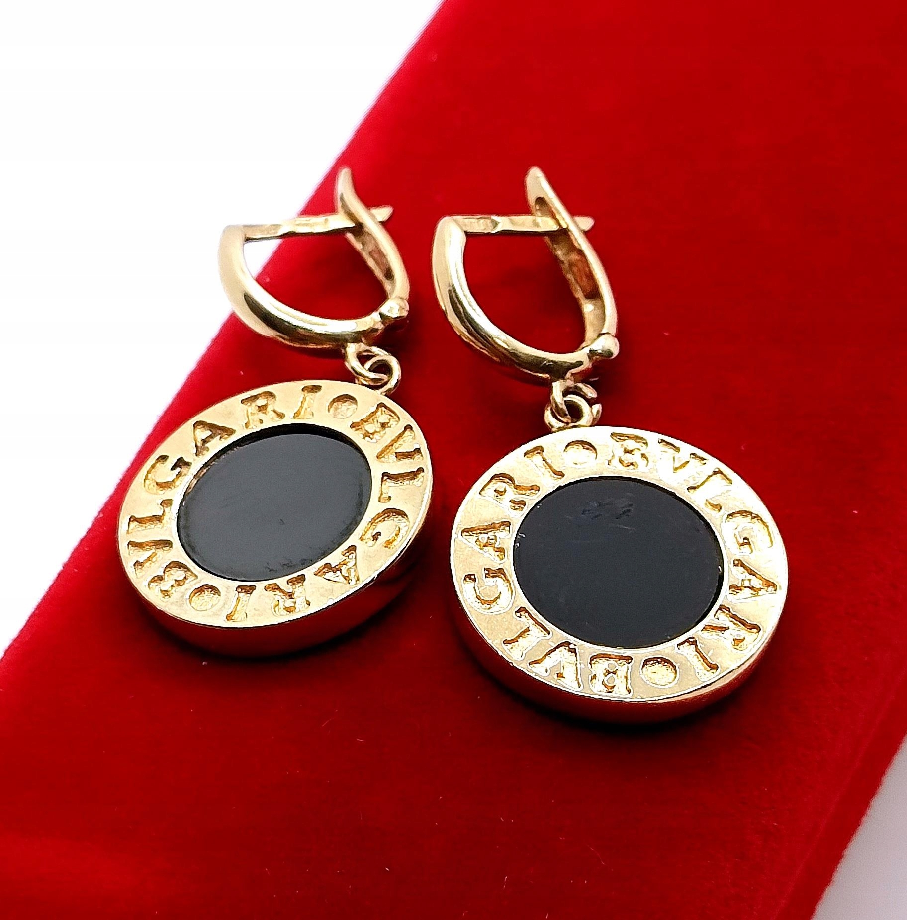 Złote kolczyki wiszące z onyksem Bvlgari PR.585 W:7,88 gr